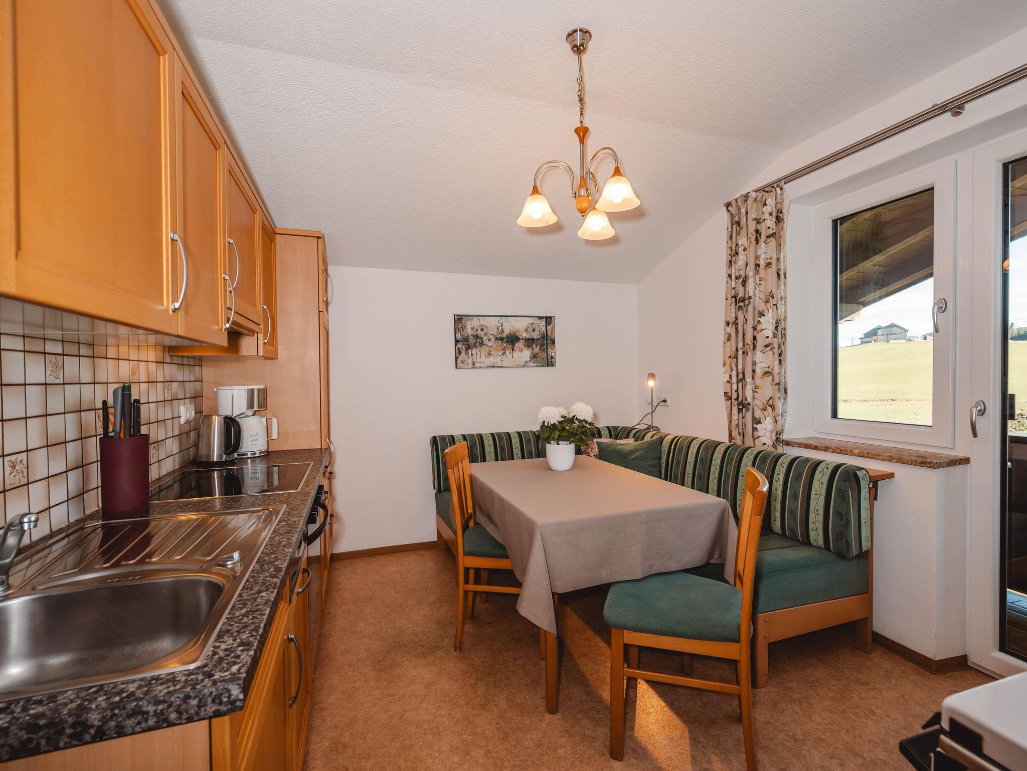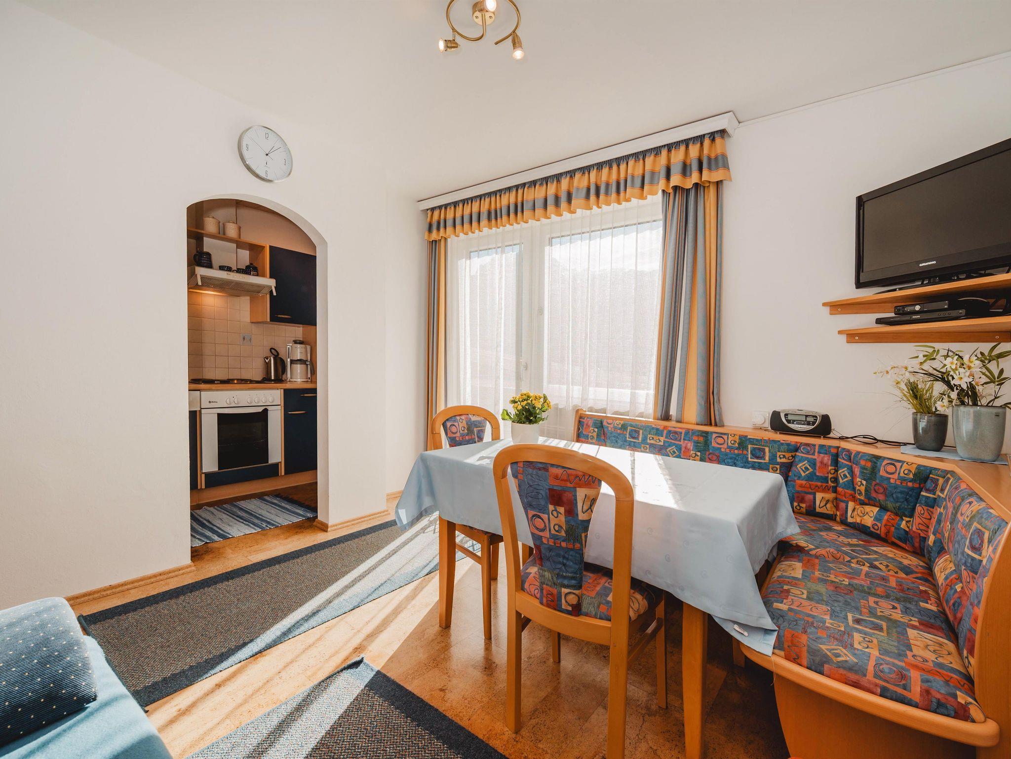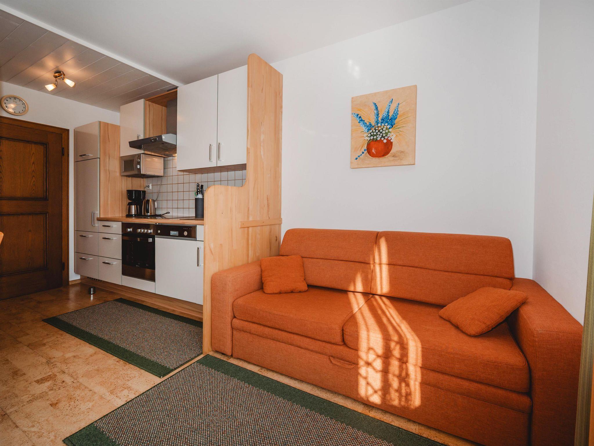• Wohn-Küche mit Essecke, Couch ( ausziehbar )sowie Flatscreen-TV und Radio