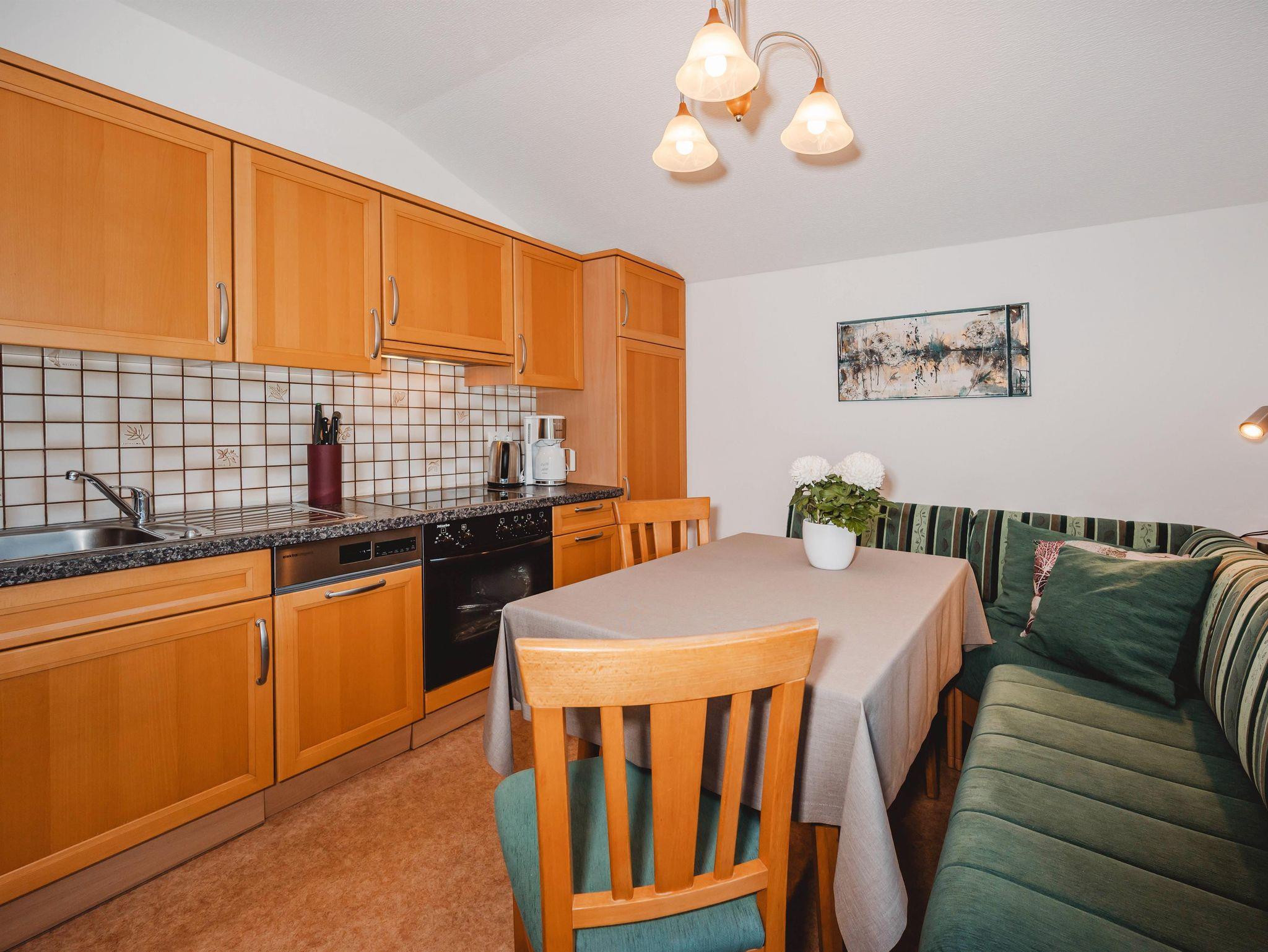 • Wohnküche mit gemütlicher Sitzecke, Flatscreen-TV und Radio