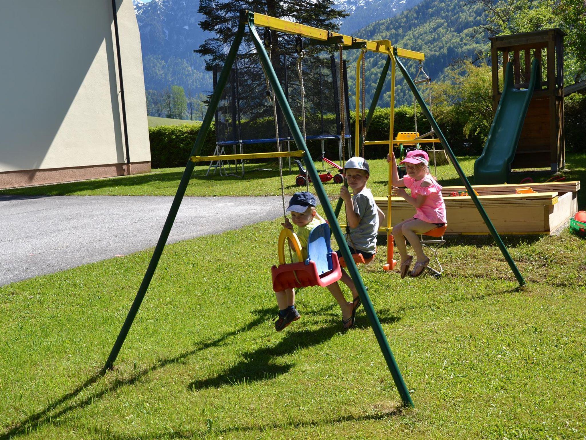 Spielmöglichkeiten für Ihre Kinder: Trampolin, Rutsche, Schaukel, Sandkasten,Tischtennis und Tischfußball sowie ein Kindertraktor und Go-Kart.