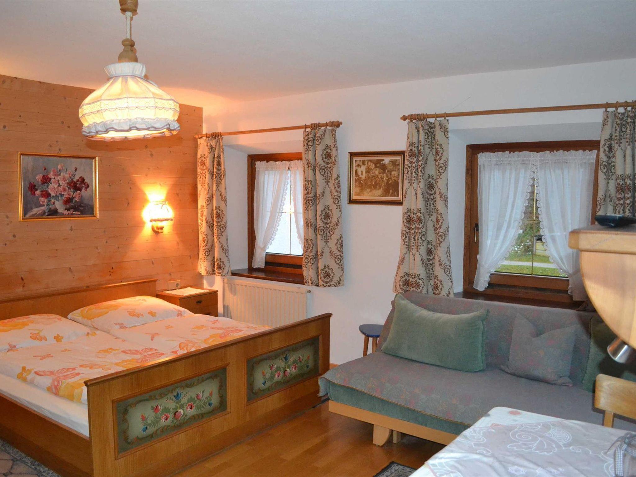 Großzügiges Gästezimmer für bis zu 4 Personen, ca. 20 m². Im Zimmer befindet sich ein Doppelbett sowie eine Schlafcouch, Gitterbett möglich. Sat-TV vorhanden. Badezimmer mit Dusche und WC.
