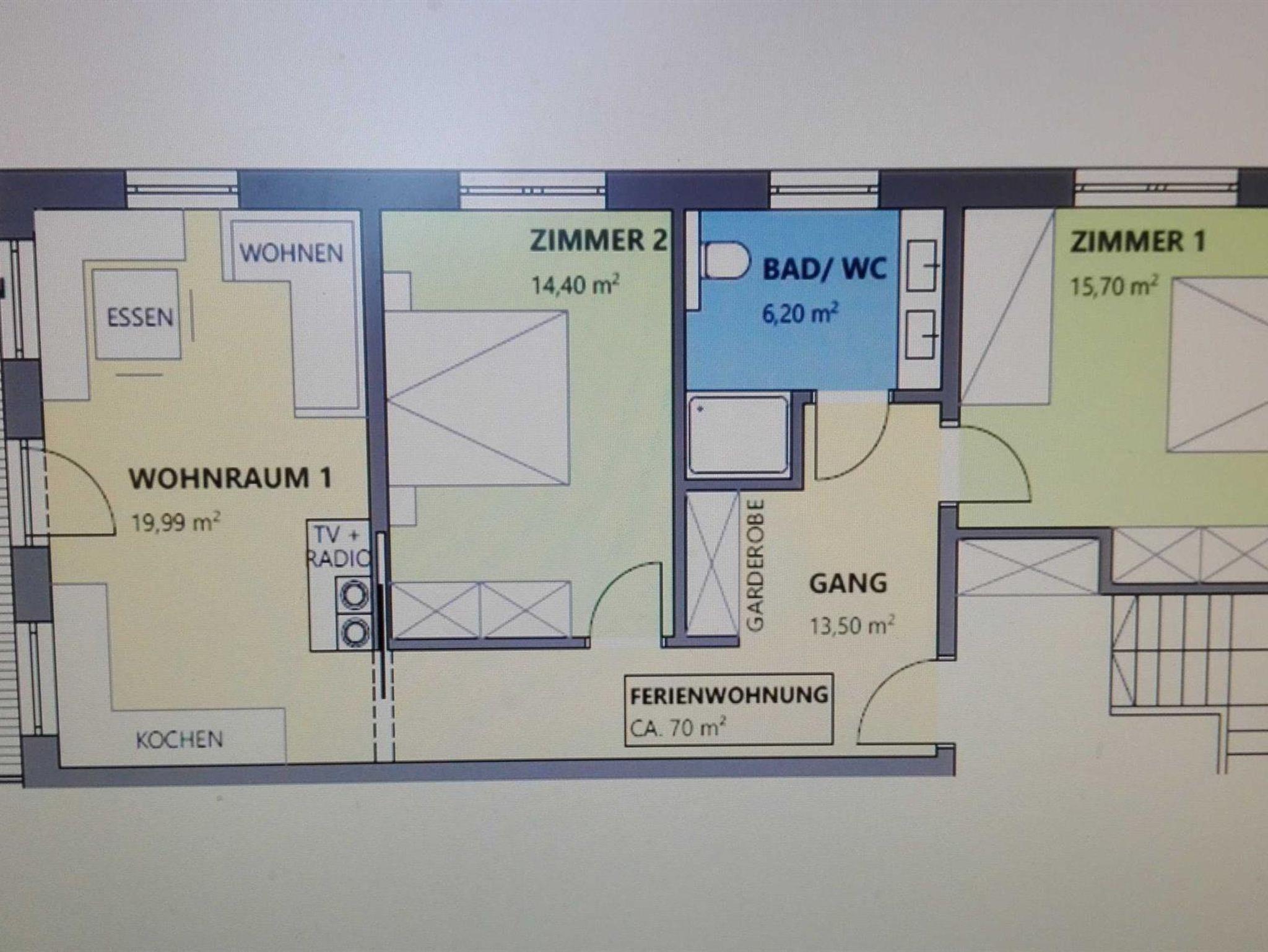 Die Räume in unserer neuen Ferienwohnung sind gut ausgedacht und bieten genügend Platz für Groß und Klein. Ein Zimmer mit Doppelbett, ein Dreibettzimmer mit Doppel- und Einzelbett, ein Bad mit Dusche und WC, eine großzügige Garderobe mit Spiegel und eine wohlig eingerichtete Wohnküche, alles gebaut aus Holz, lässt an Gemütlichkeit keine Wünsche offen. Auf Wunsch können wir Ihnen ein Zusatzzimmer mit Doppelbett und eigenem Bad mit Dusche und WC anbieten.