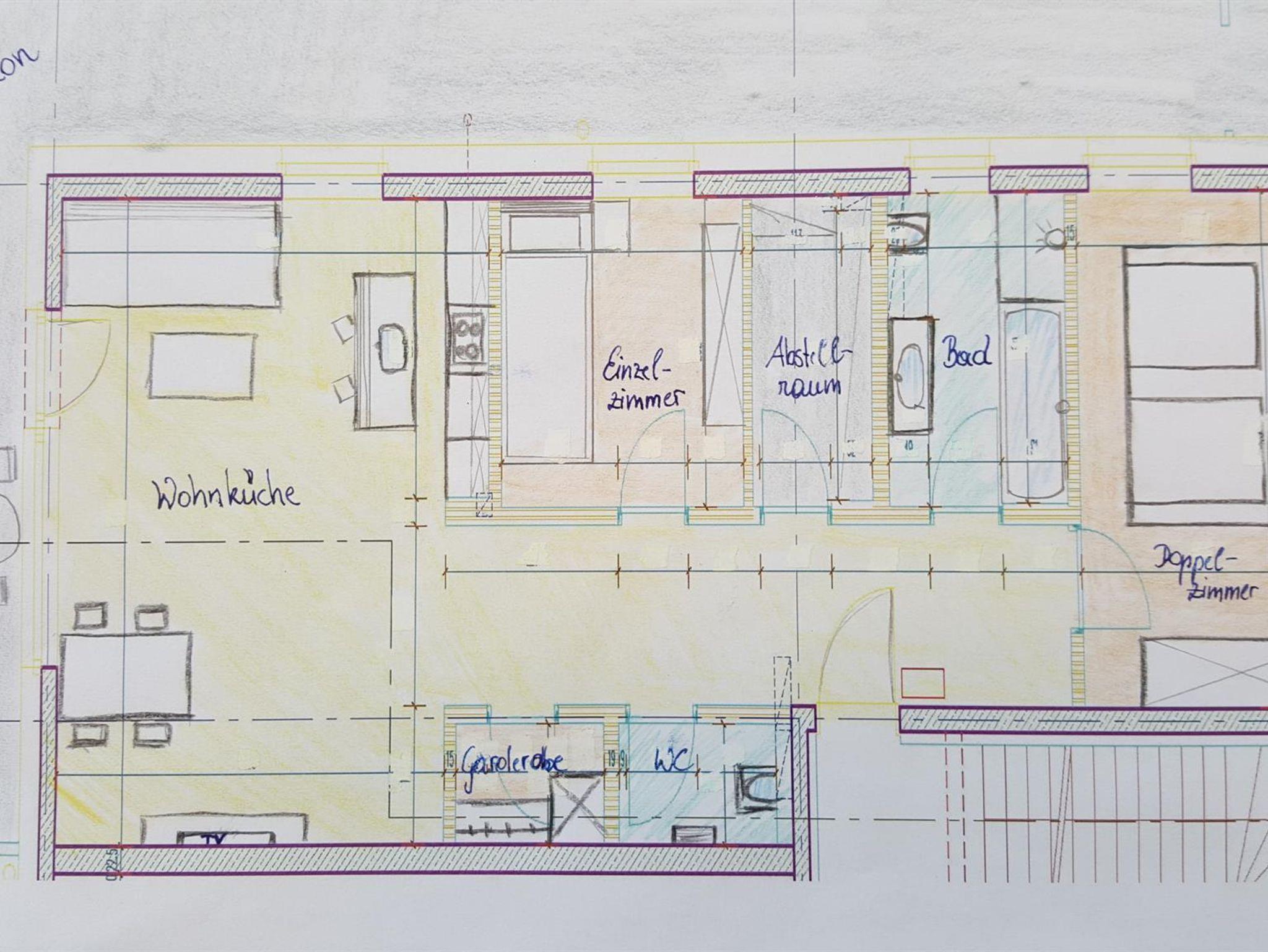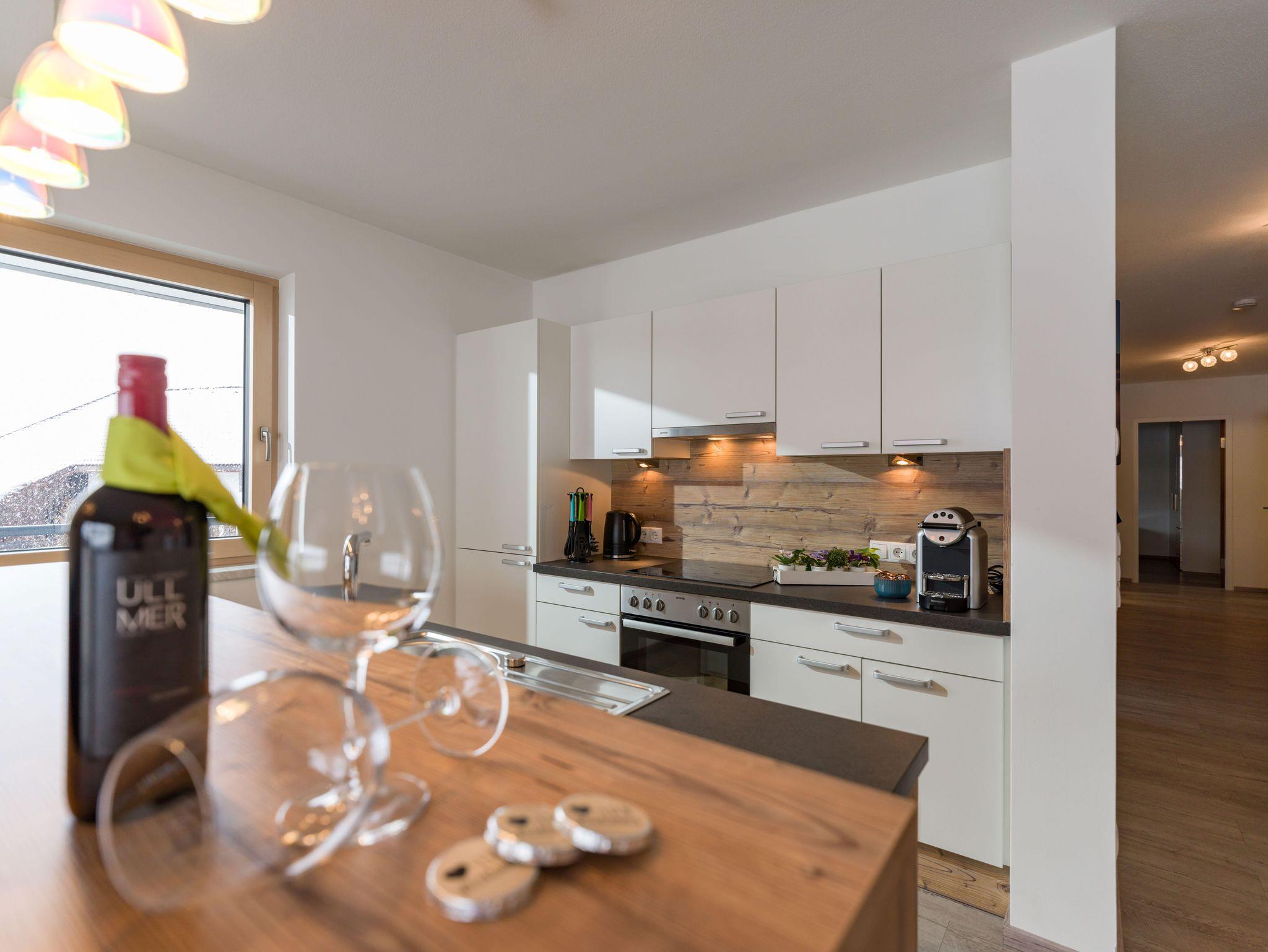 Ferienwohnung mit 1 Doppelzimmer, 1 Einzelzimmer, Badezimmer mit Dusche, Badewanne und WC. Separates WC, Abstellraum, Garderobe und voll ausgestattete Wohnküche mit Smart-SAT-TV, WLAN und Nespresso-Kaffeemaschine, Esstisch für 4 Personen, Couch (Schlafmöglichkeit für 1 Person) und großem Balkon (Nord-West-Ausrichtung) mit herrlichem Ausblick!