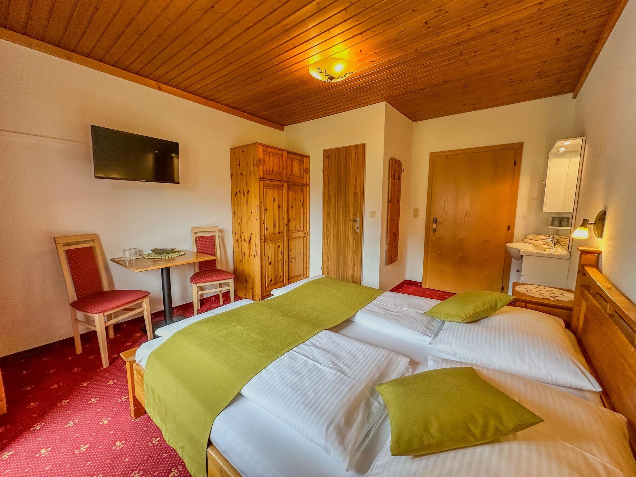 Gemütliches Doppelzimmer für 2 Personen (16m²) mit Bergblick, Flachbild-TV, kleinem WC/Duschbereich, kostenfreien W-LAN sowie einem eigenen Balkon.