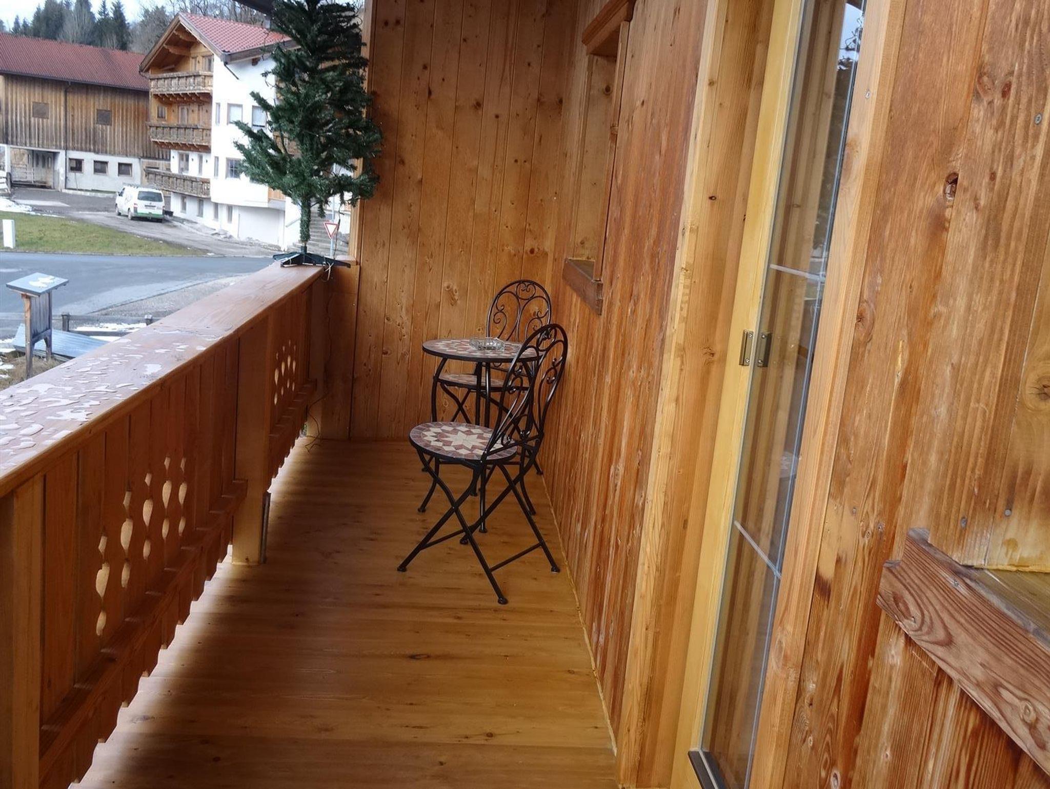 Das Doppelzimmer Karwendel ist ausgestattet mit Dusche- WC; Sat-TV, einer kleinen kompletten Teeküche und einem schönen sonnigen Balkon.