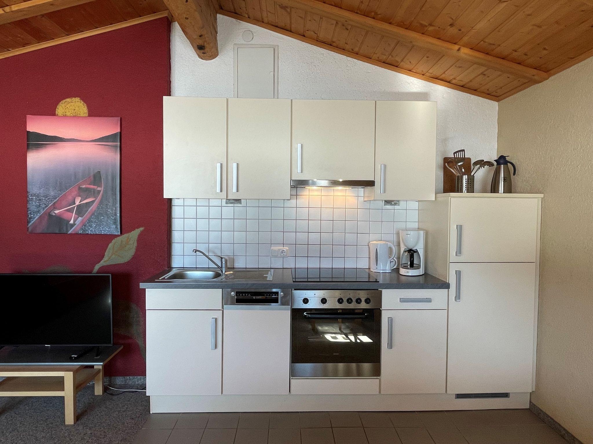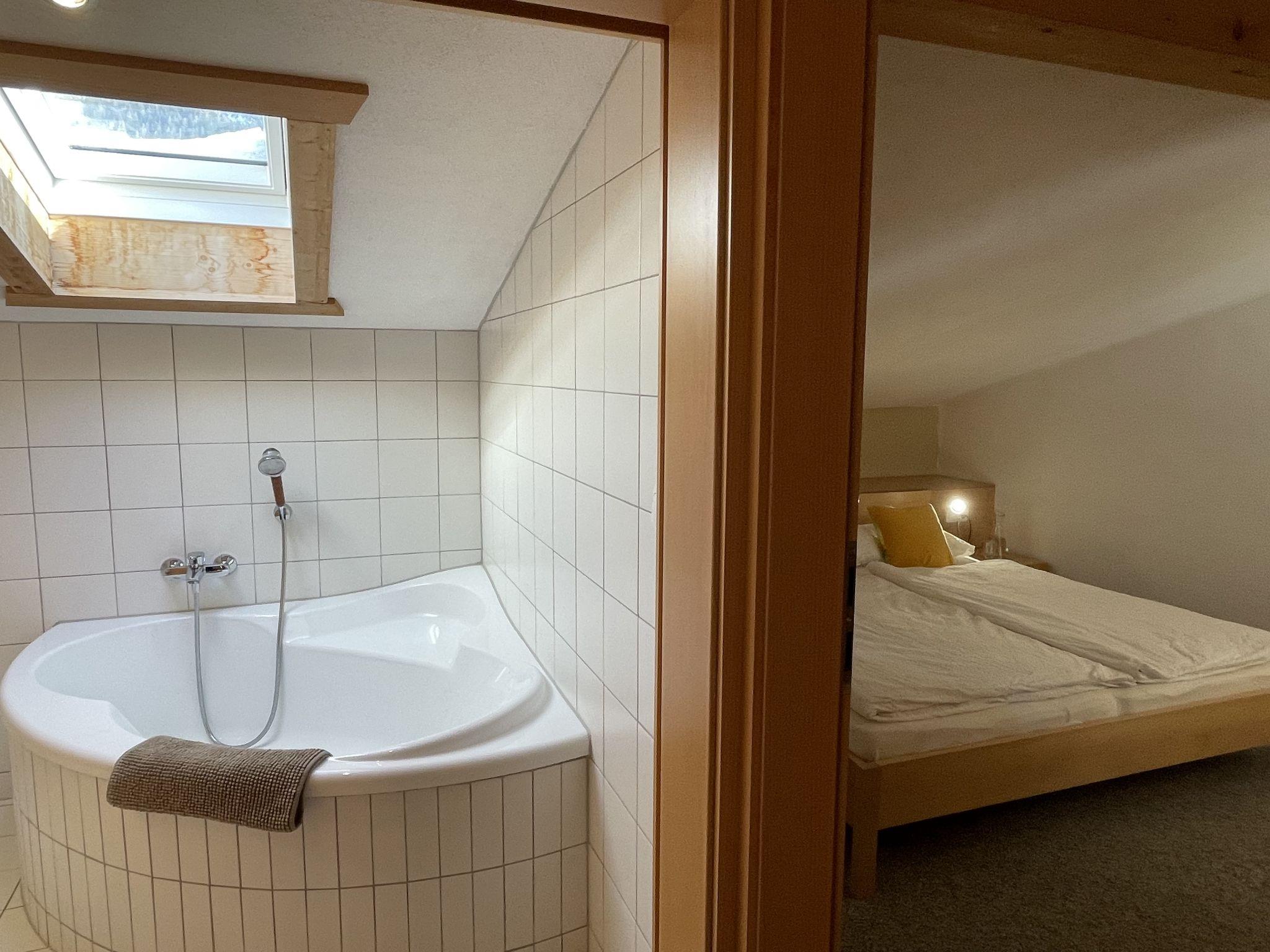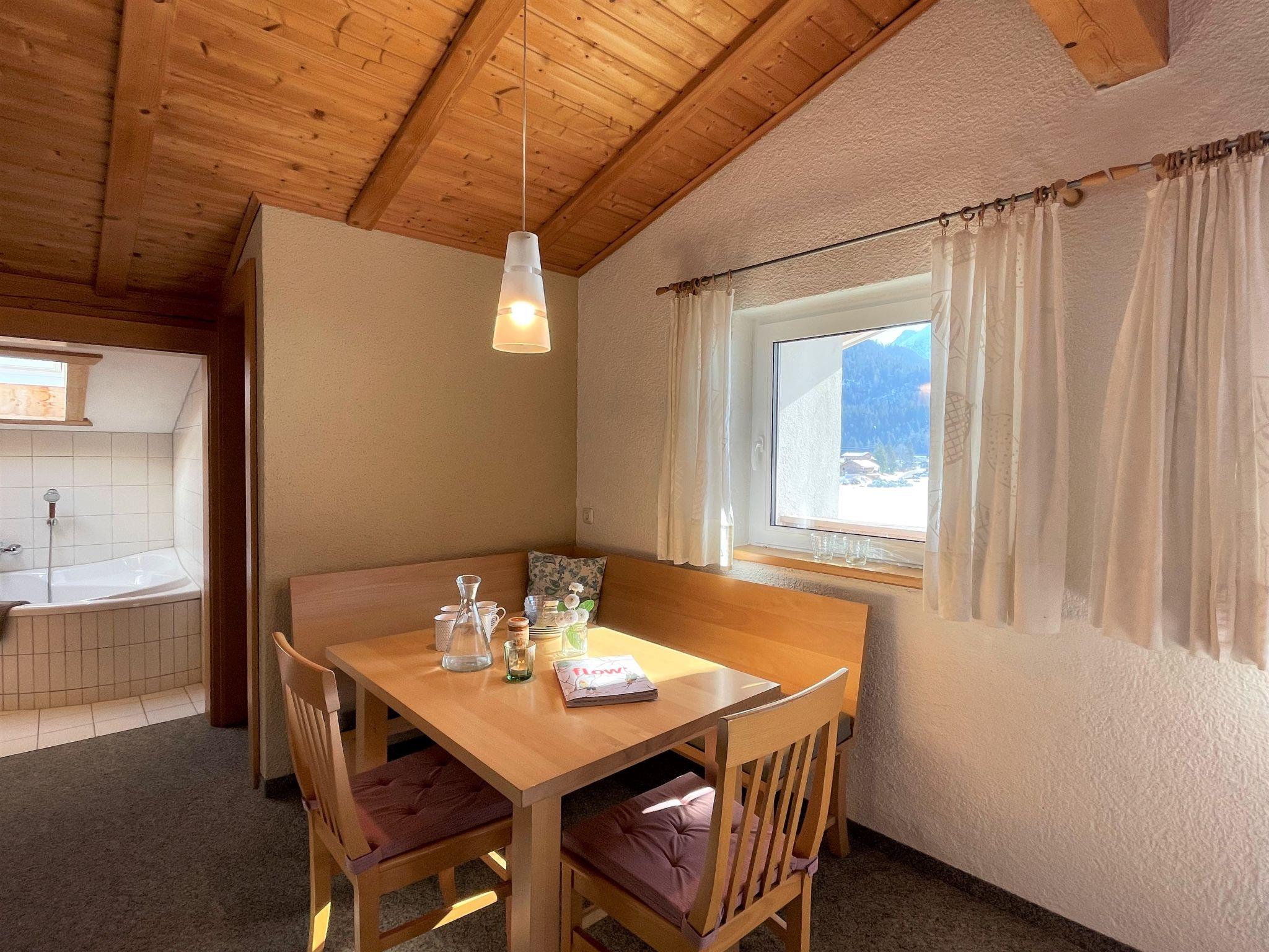 "Rofan", 3-room apartment 57 m2, on the top floor. Object suitable for 3 adults + 2 children. With sloping ceilings, cosy and wooden furniture furnishings: large living/sleeping room with 1 double sofabed, dining nook and satellite TV (flat screen). Exit to the balcony. 1 small room with sloping ceilings, ceiling height 80 - 150 cm with sliding door with 2 beds. 1 double bedroom. Open kitchen (oven, dishwasher, 4 ceramic glass hob hotplates, electric coffee machine). Bath/WC with corner bath. Oil heating. Balcony. Balcony furniture, box-room. Very beautiful view of the mountains. Facilities: Internet (WiFi, free). Parking (roofed, 1 car). Please note: non-smokers only. Bed layout is flexible. There are more sleeping options available than the maximum number of people allowed which may, however, not be exceeded.
