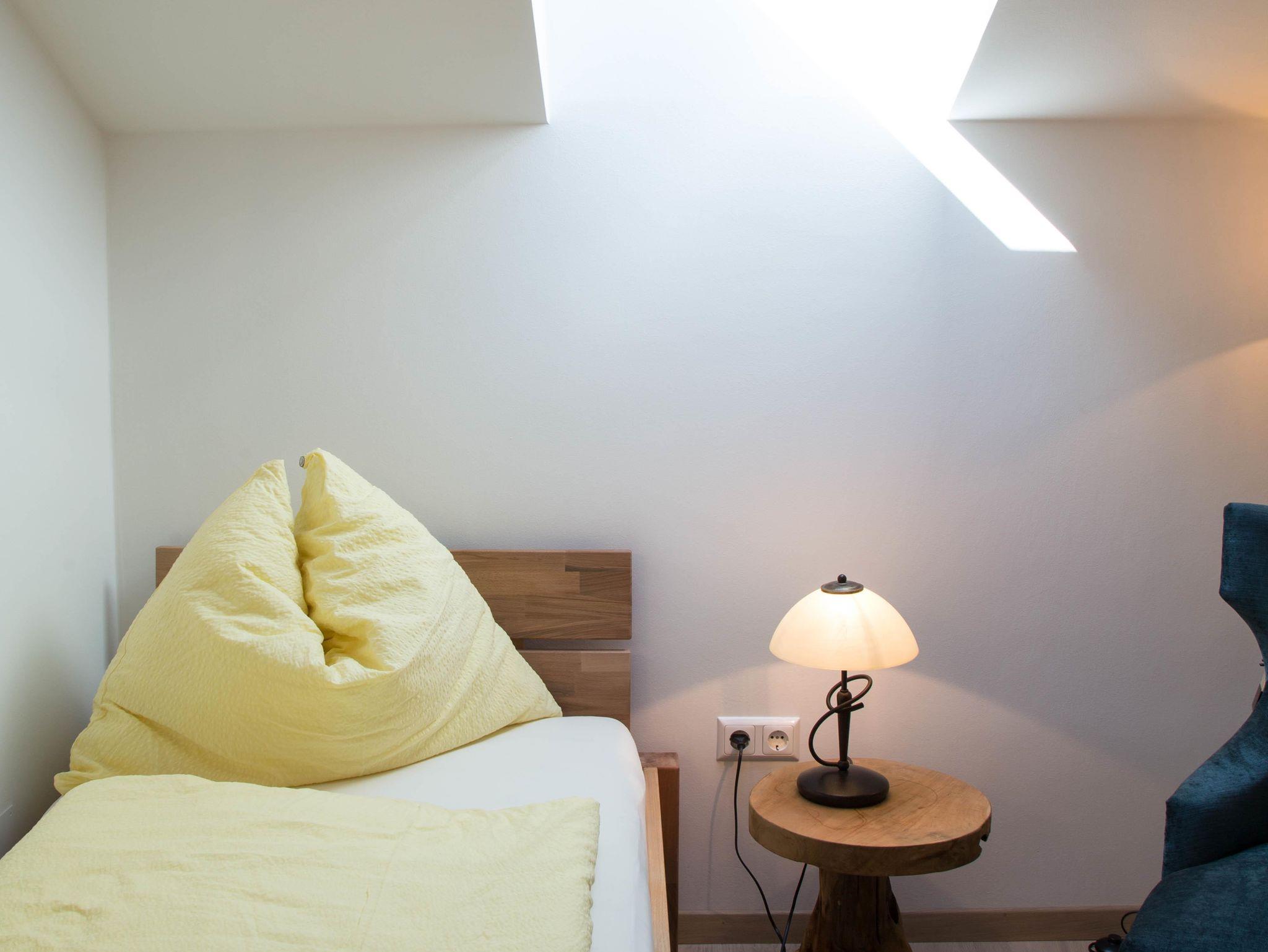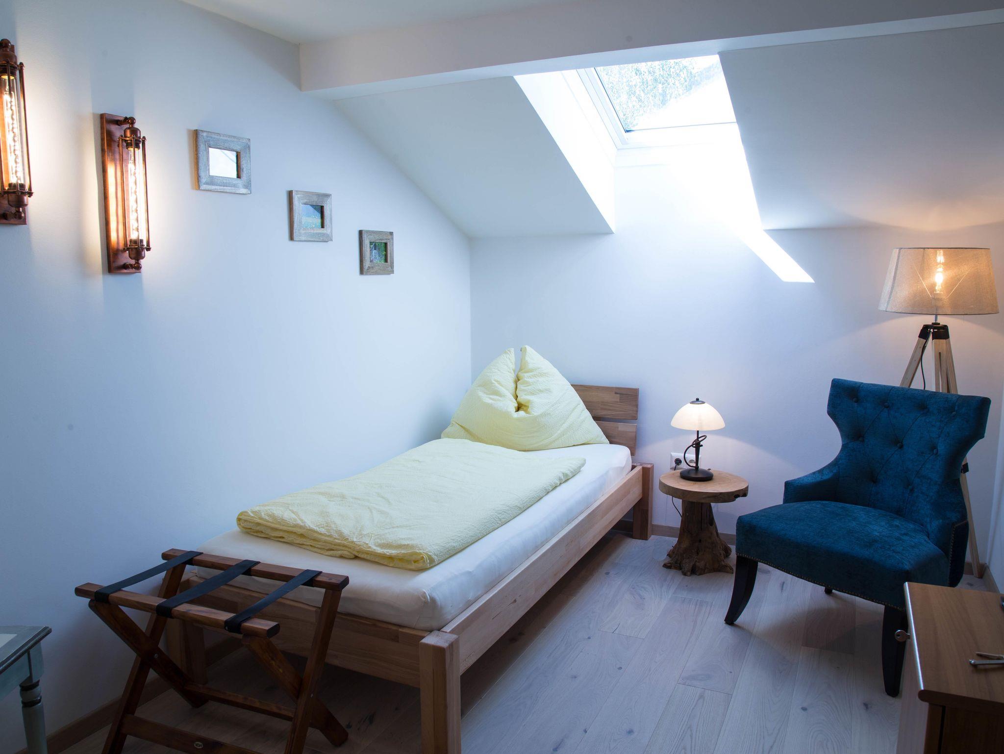 Es liegt auf der zweiten Etage und verfügt über ein Dachfenster.