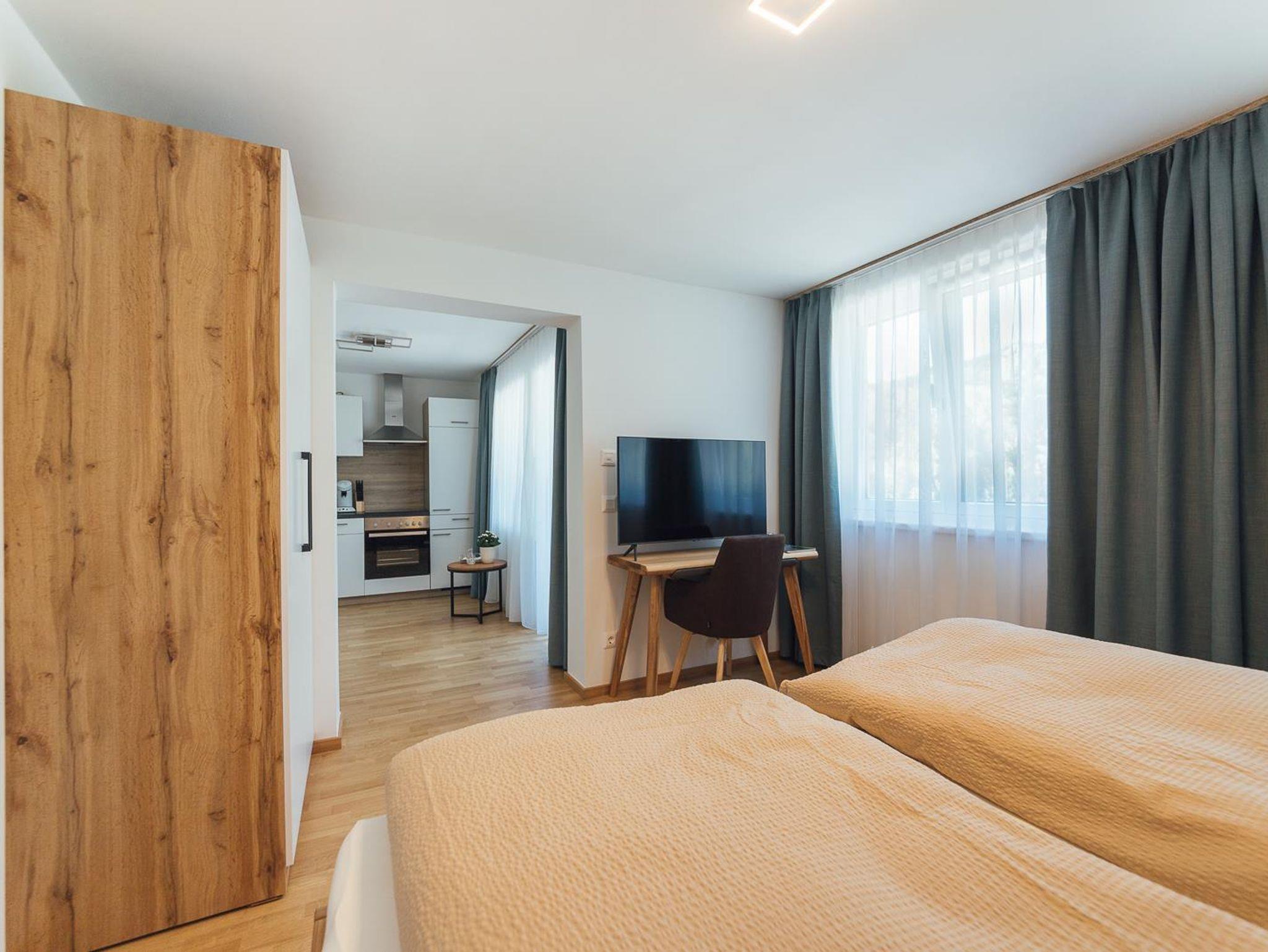 Modern eingerichtetes Appartement für 2 Personen, Wohn-/Schlafzimmer, Badezimmer und Küchenzeile