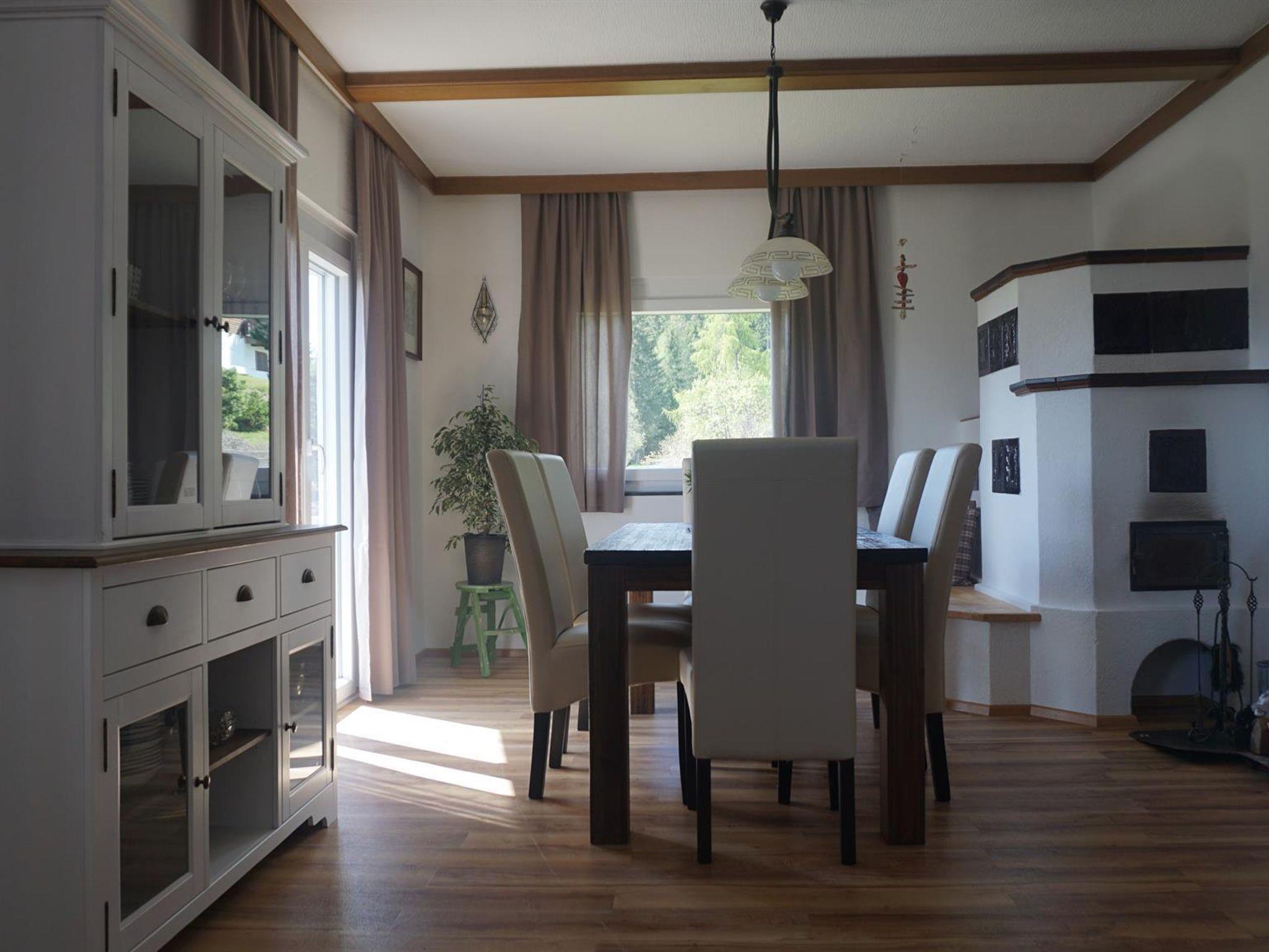 Im Haus erwartet Sie ein gemütliches Wohn- Esszimmer mit Kachelofen, ein ausziehbares Schlafsofa und ein Relaxsessel, SAT-TV, kostenloses WLAN und ein schöner Essbereich. Die Küche ist voll ausgestattet mit einem E-Herd mit Ceran-Kochfeld und Backofen, einer Kühl- Gefrierkombination und einem Geschirrspüler. Weiters sind eine Kaffeepadmaschine, ein Wasserkocher, ein Toaster sowie Kochutensilien vorhanden. Das Schlafzimmer ist mit einem Boxspringbett, einem Einzelbett und einem Kleiderschrank möbliert. Das Badezimmer verfügt über eine Dusche, einem Spiegelschrank und einem Föhn. Das WC ist separat. Am Balkon steht ein Tisch mit vier Stühlen und auf der Terrrasse befindet sich eine Sitzgarnitur und eine Feuerschale für gemütliche Abende.