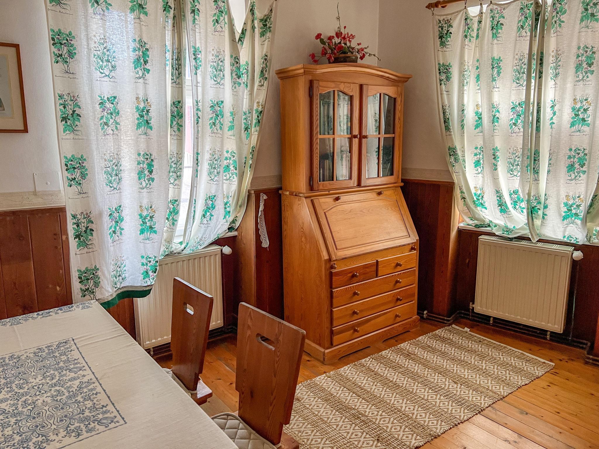 4-room apartment 120 m2, on the ground floor. Renovated in 2022, antique and cosy furnishings: large living room 50 m2 with 2 sofabeds, satellite TV, DVD and wood-burning stove. Exit to the garden. Dining room. 1 double bedroom. 1 small room with 2 beds. Kitchen (2 hot plates, mini-oven, dishwasher, electric coffee machine) with hatch. Shower/WC, sep. WC. Underfloor heating. Patio. Terrace furniture. Facilities: children's high chair, baby cot, hair dryer. Internet (WiFi, free). Please note: non-smokers only.