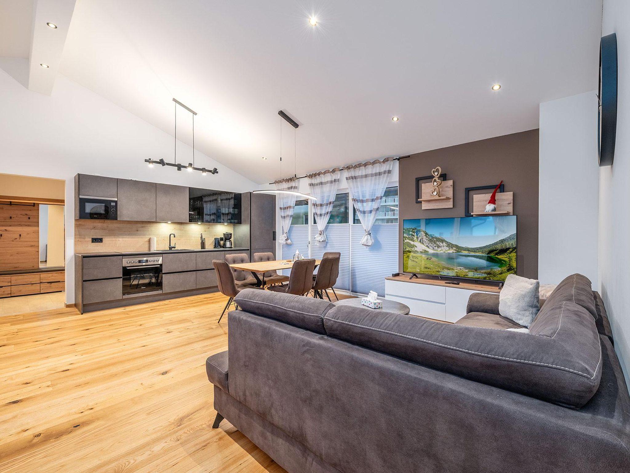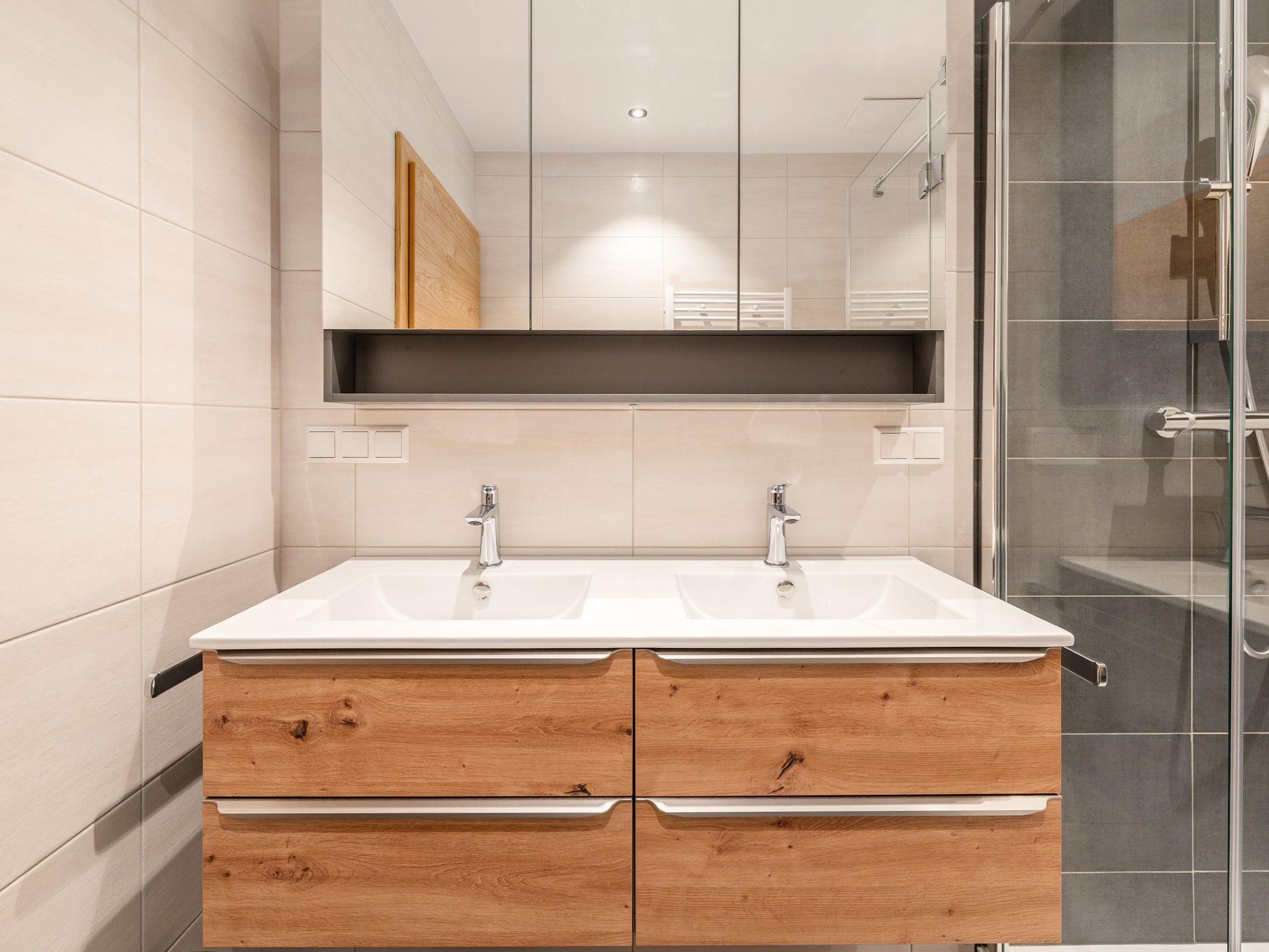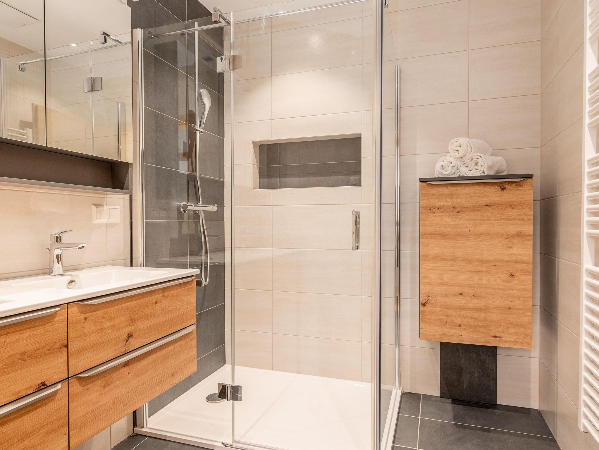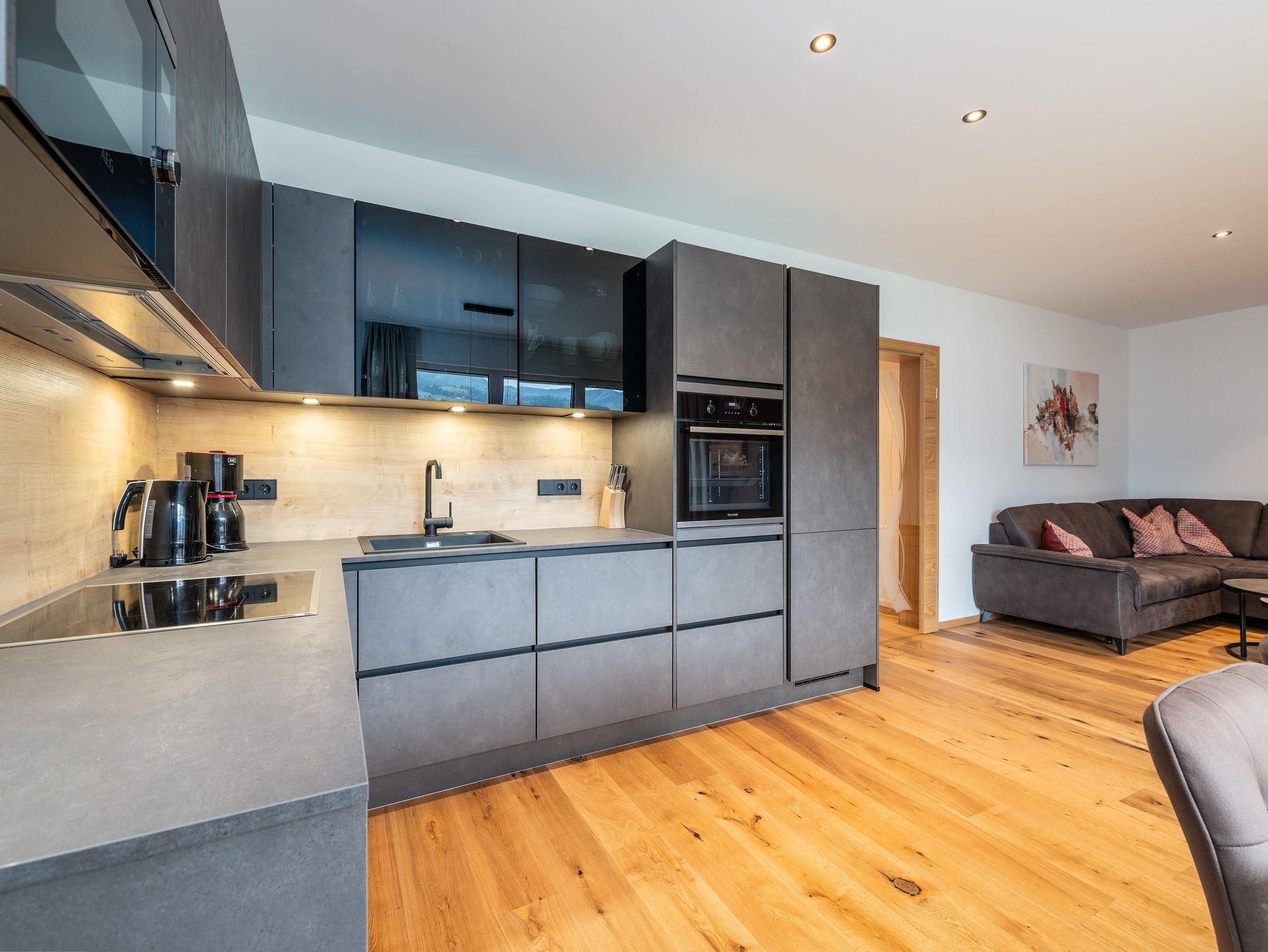 Das Apartment verfügt über zwei Schlafzimmer und eine vollausgestattete Küche mit Geschirrspüler, Backofen, Kaffeemaschine und Mikrowelle. Jedes Zimmer verfügt über einen Flat TV. Das Bad ist ausgestattet mit einer großzügigen Dusche, ein Doppelwaschbecken und eine Waschmaschine sind ebenfalls vorhanden. Handtücher und Bettwäsche stehen zur Verfügung. Im Keller befindet sich der eigene Skiraum inkl Skiaufbewahrung und Skischutrockner.