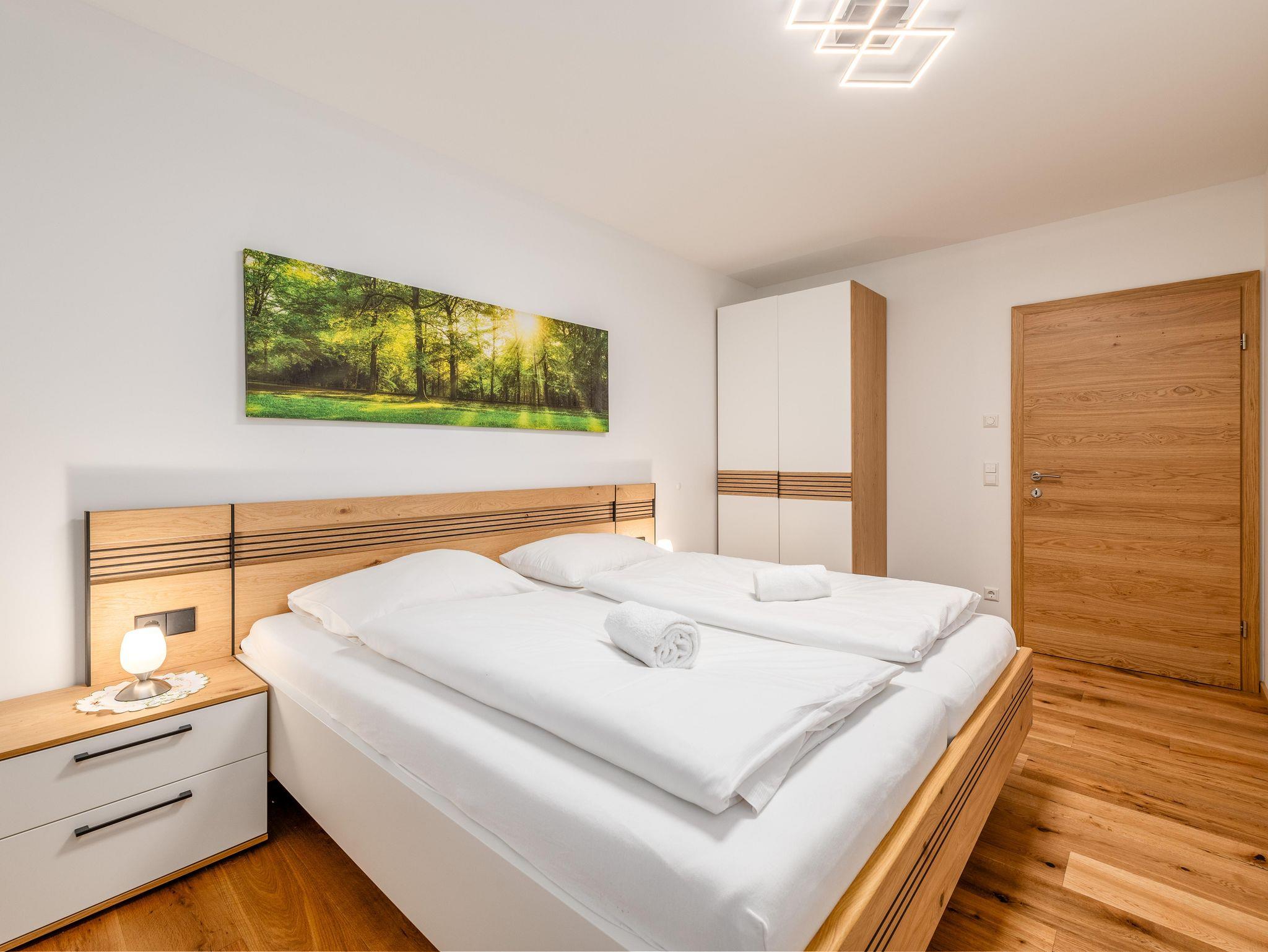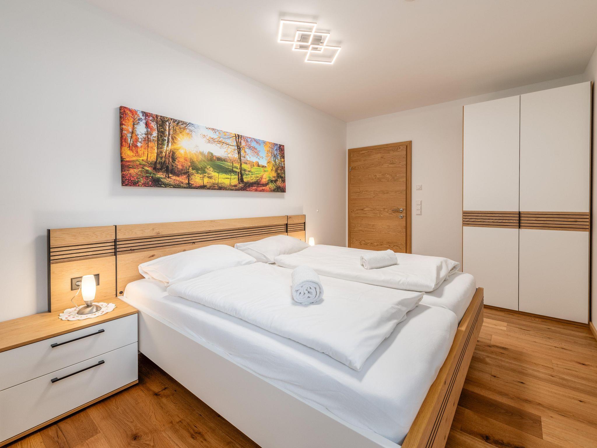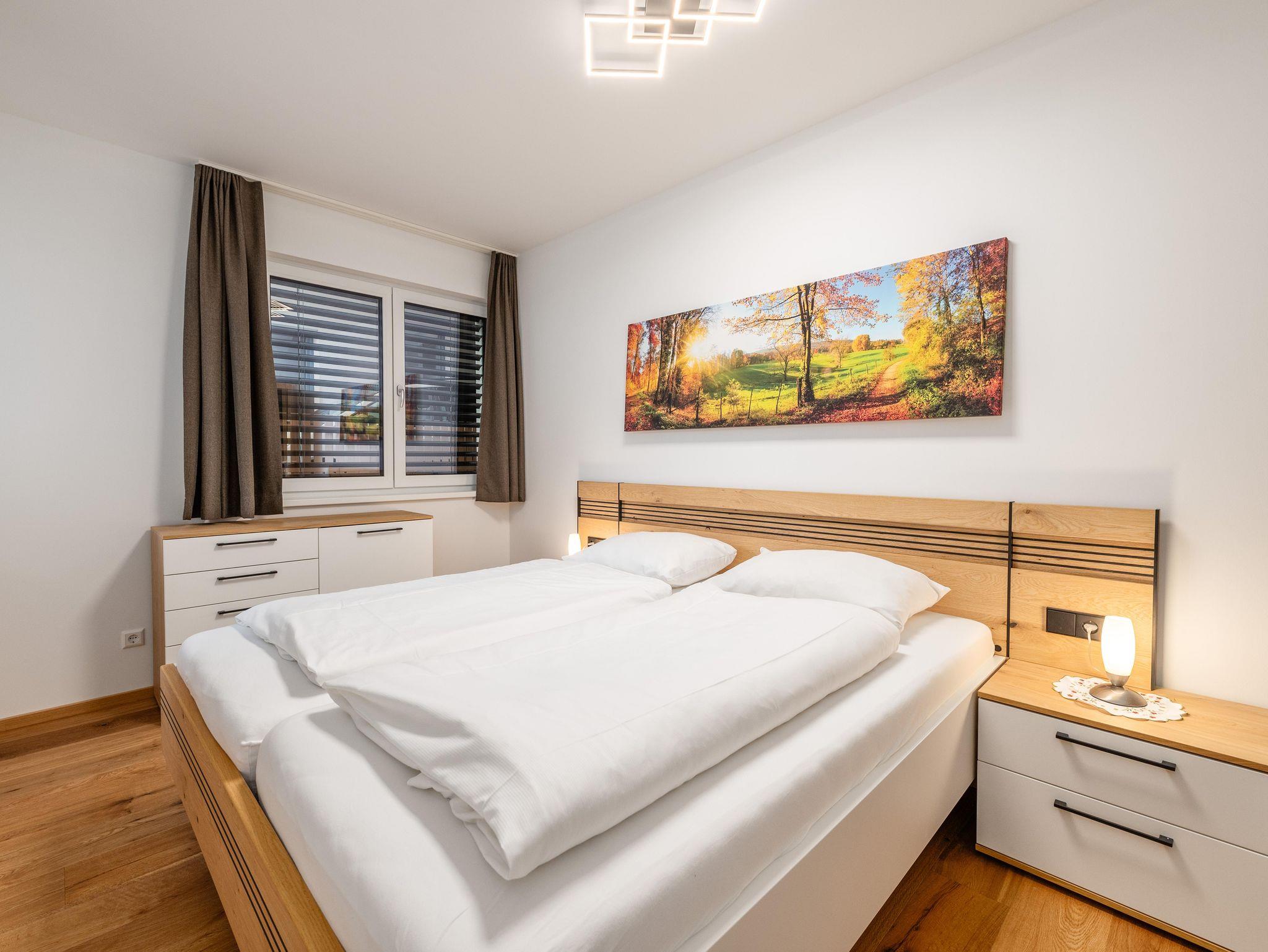 Das stilvoll eingerichtete Appartement mit 2 Schlafzimmern mit je einem Doppelbett sowie einer Couch im Wohnzimmer, bietet ingesamt Platz für bis zu sechs Personen. Jedes Zimmer verfügt über einen Smart-TV. Das großzügige Badezimmer ist ausgestattet mit einer großen Dusche und Doppelwaschbecken – ideal für Paare oder Familien.