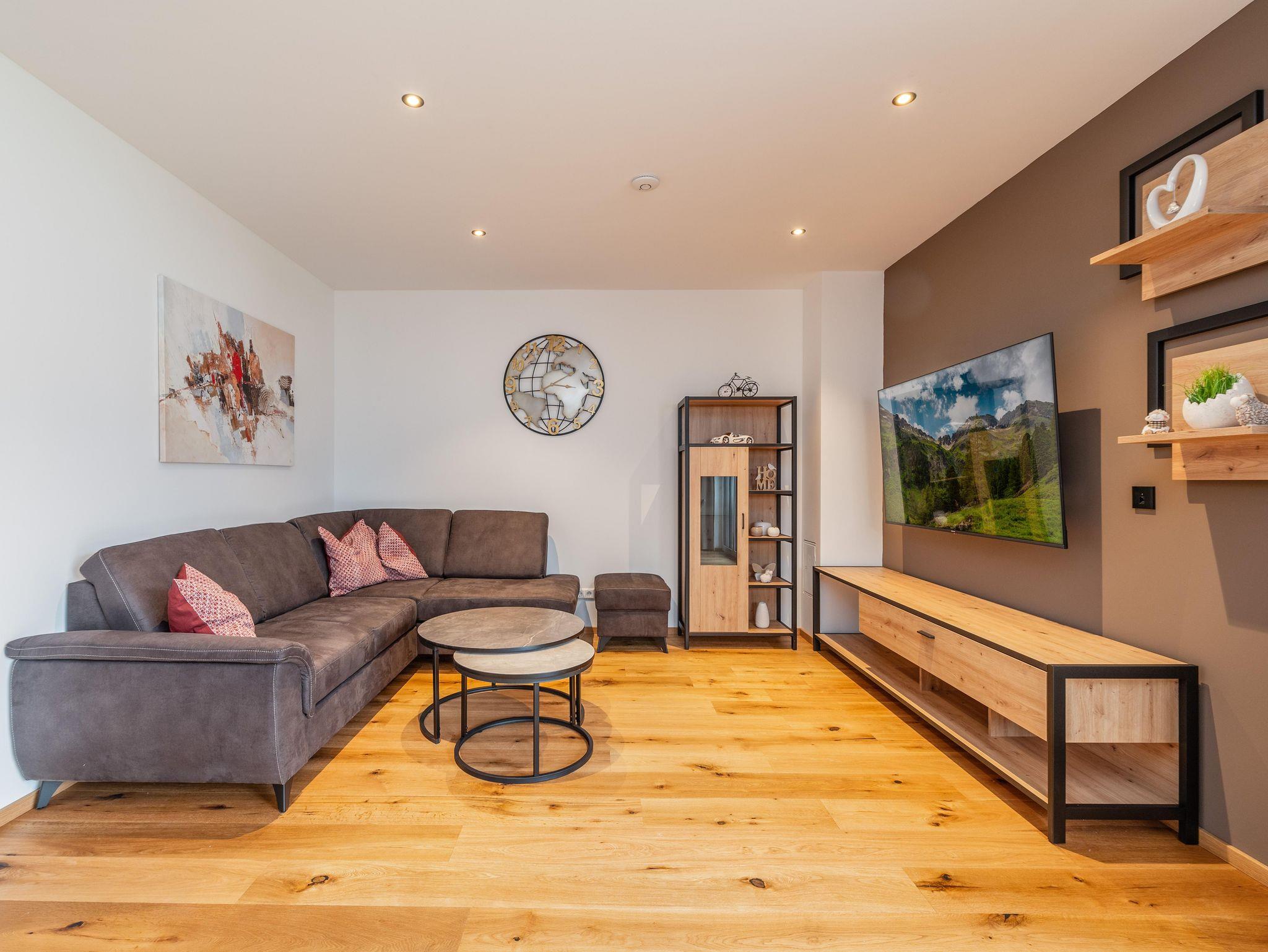 Mit seinem modernen Charme biete das Apartment eine gemütliche, entspannende Atmosphäre. Einen wunderschönen Ausblick auf die Berge haben sie vom großzügigen Garten.