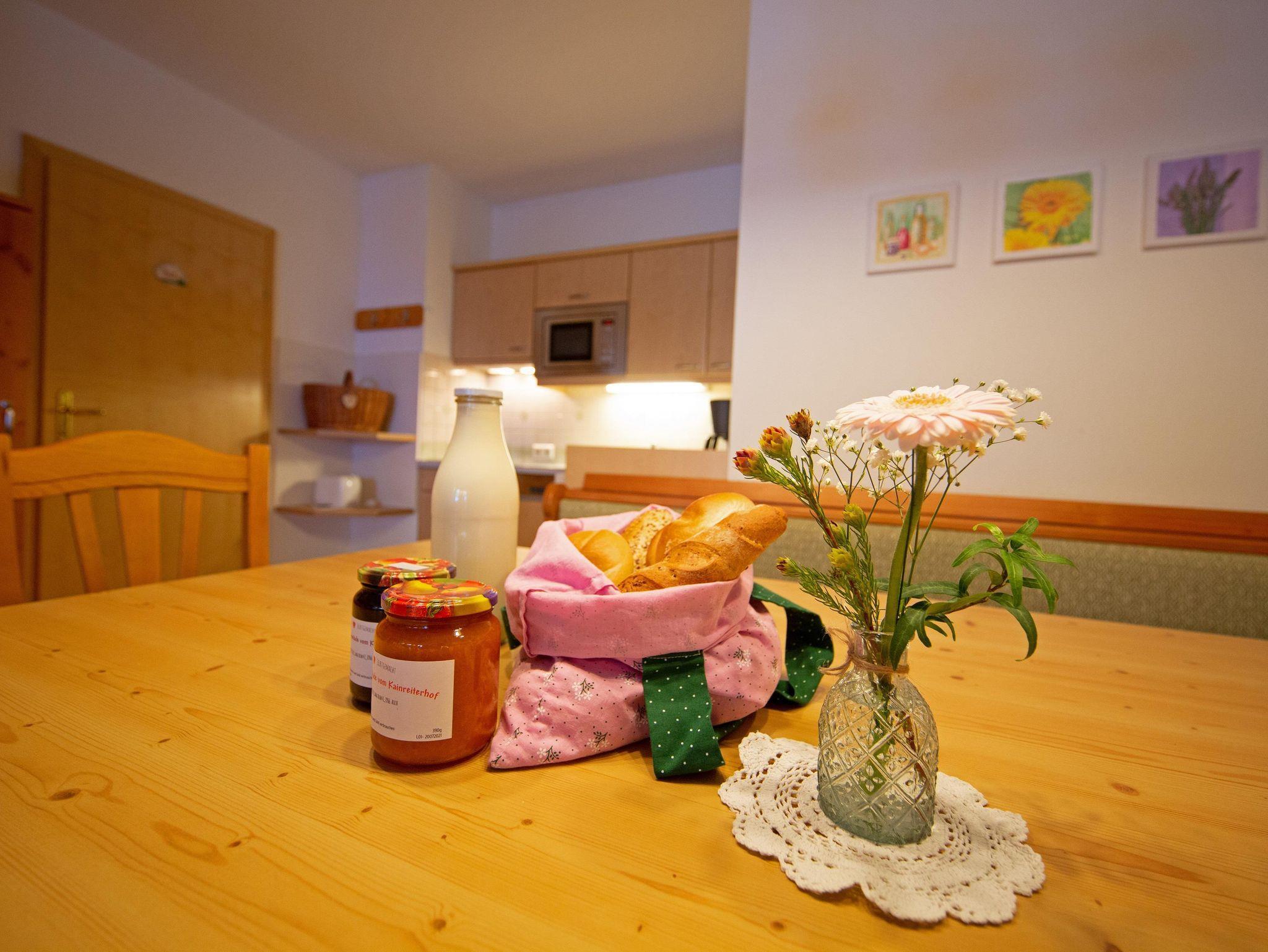 Für Ihr Frühstück bieten wir Ihnen einen Brötchenservice, selbstgemachte Marmeladen und täglich frische Mich von unseren Kühen!