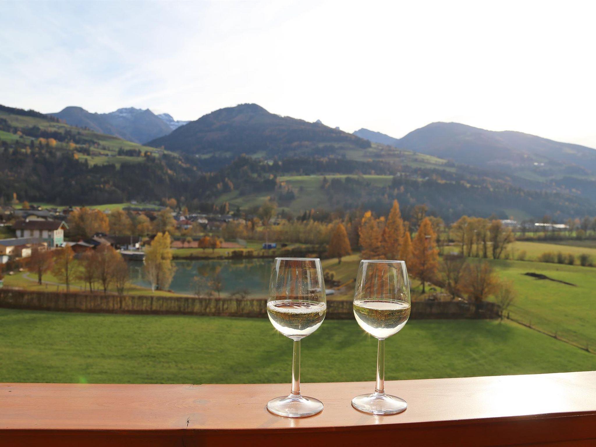 Die Aussicht vom Balkon auf die umliegende Bergwelt und den Aicher Badesee ist einfach traumhaft.