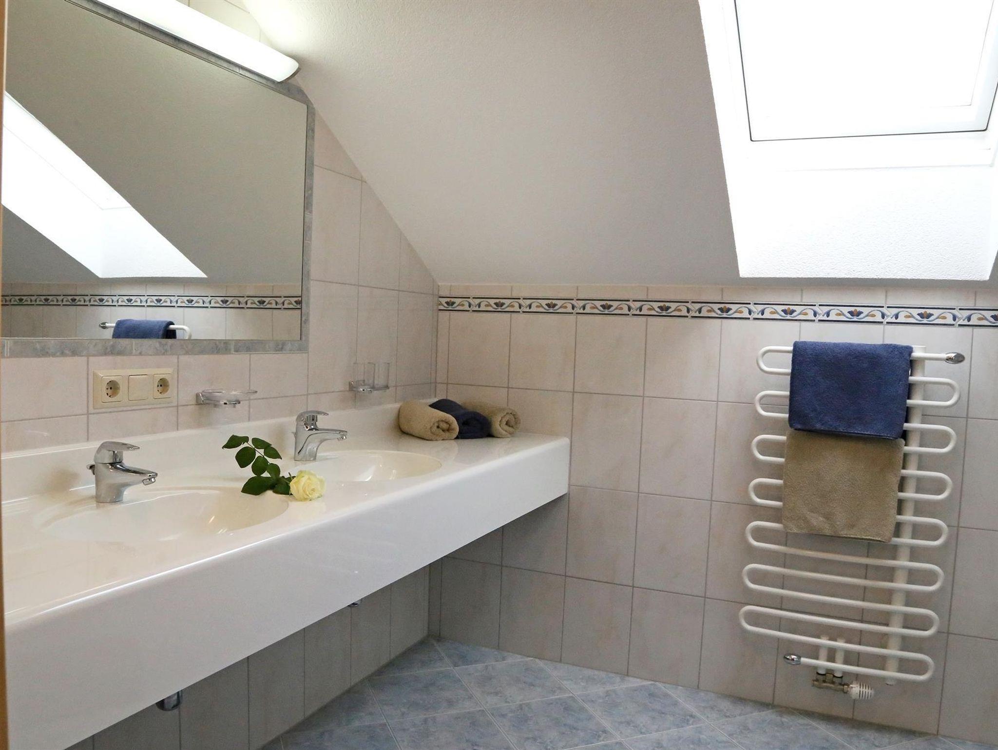 Das großzügige Appartement ist mit zwei Schlafzimmern, zwei Bädern mit Haarfön und einer großen Wohnküche mit Ausziehcouch ausgestattet. In der Küche befindet sich ein großer Tisch für 10 Personen, ideal wenn zwei Apartments zusammengehören...