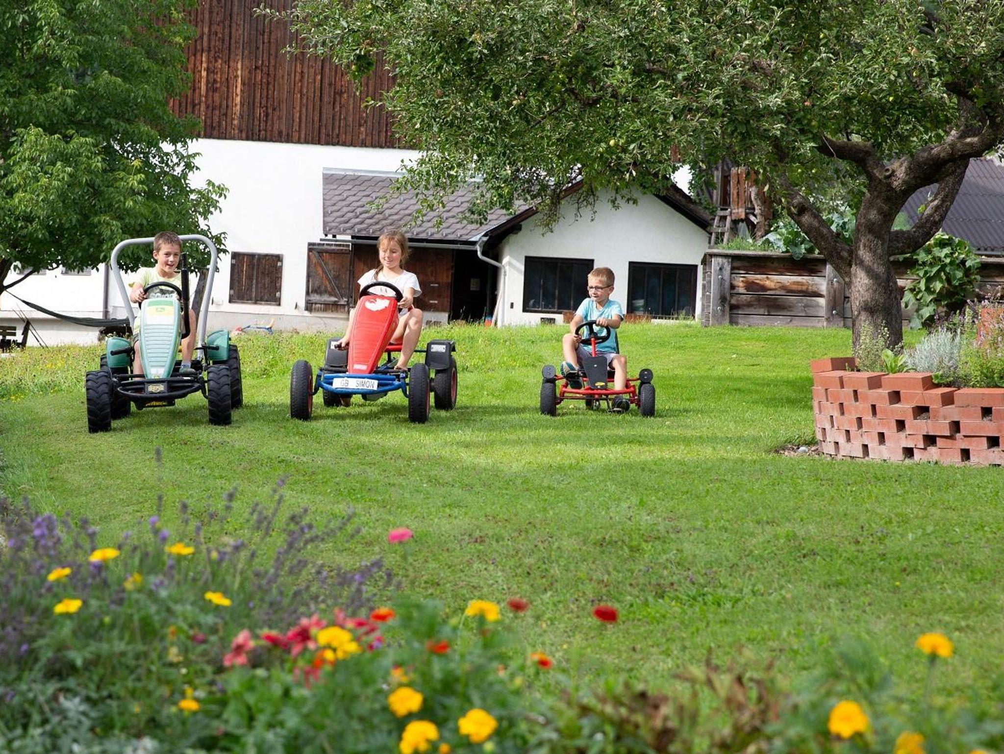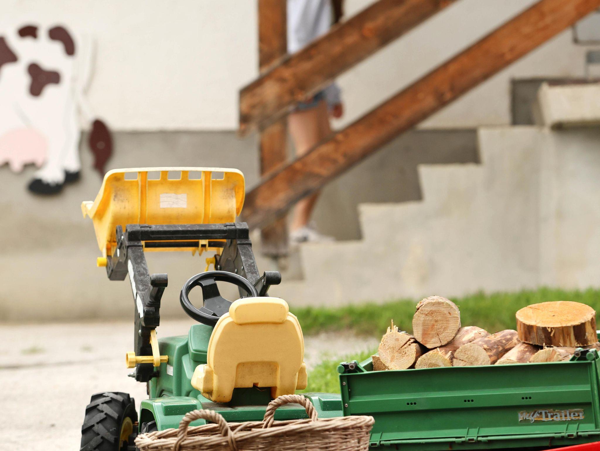 Und die Kinder? Die düsen mit den Gokarts, und den Trettraktoren herum, spielen in der Kinderspielhütte, liefern sich ein Tischtennismatch oder erkunden die Natur auf den Wiesen und Wäldern hinter dem Hof...
