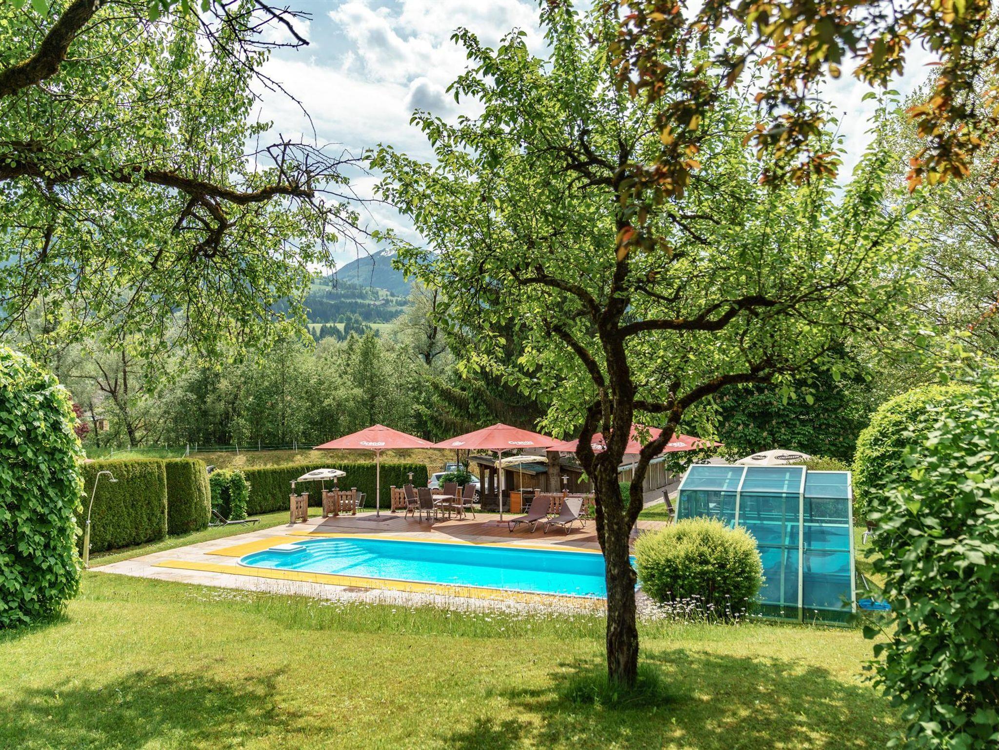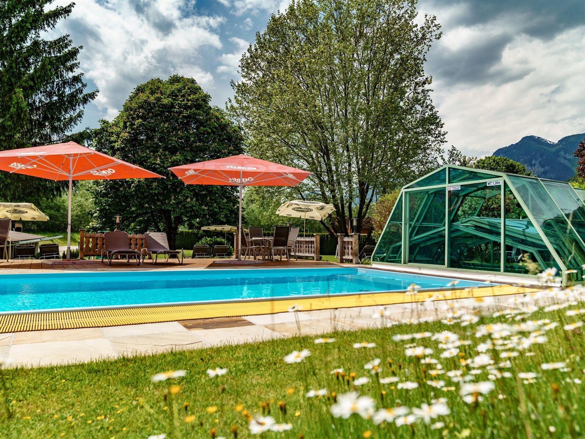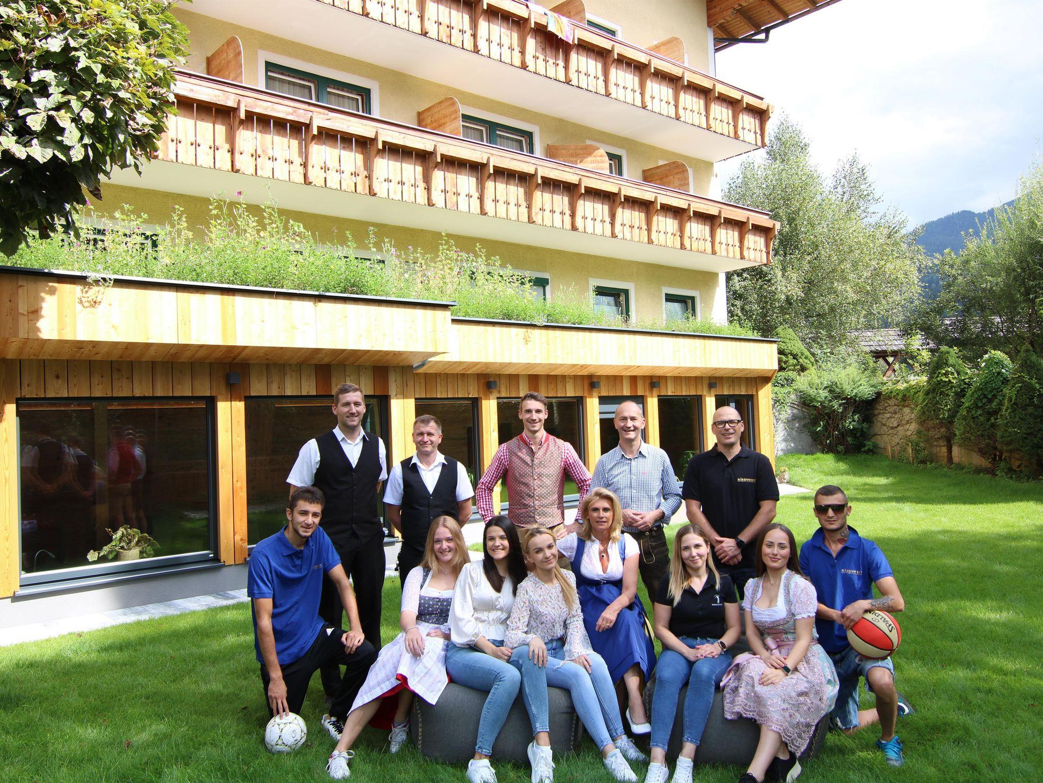 Im Sommer genießen Sie über 22.000m² Areal inkl. Badesee beinhalten viel Angebot für Kids, Teens & Familie - alles direkt beim Hotel, so brauchst Du keine zusätzlichen Meter machen. Große Gartenanlage mit überdachbaren Hotelpool, Tennisplätze, Kindertennisplatz, Tischtennis, Basketball, Fußballplatz mit Banden, Erlebnisspielplatz, am Badesee Wassertrampolin, Beachvolleyball, Reitplatz 32x16m und 2 Huzulen-Pferde,Mini Shetties kostenlos Schnupperreiten; Angelteich u. Forellengewässer; Reiten, 3 Indoor-Spielräume I Wall 3.0, Tischfußball, Billard, Dart; BÄREN SPA - WOHLFÜHLOASE: Raum der Stille, Biosauna, Dampfbad, Finnsauna, Physiotherm, Erlebnisduschen, Sonnenstudio, Barfusswiese, Massagen; WINTER: Skibus direkt vorm Hotel - ohne Auto zur 4-Berge-Skischaukel, SkiPauschalen; SOMMER: Premium Golf Partnerhotel , Wanderpauschalen, TopSommerprogramm für Kinder-Teens u. Familie mit unseren Guides, KINDERERMÄSSIGUNG; Besondere Küche!