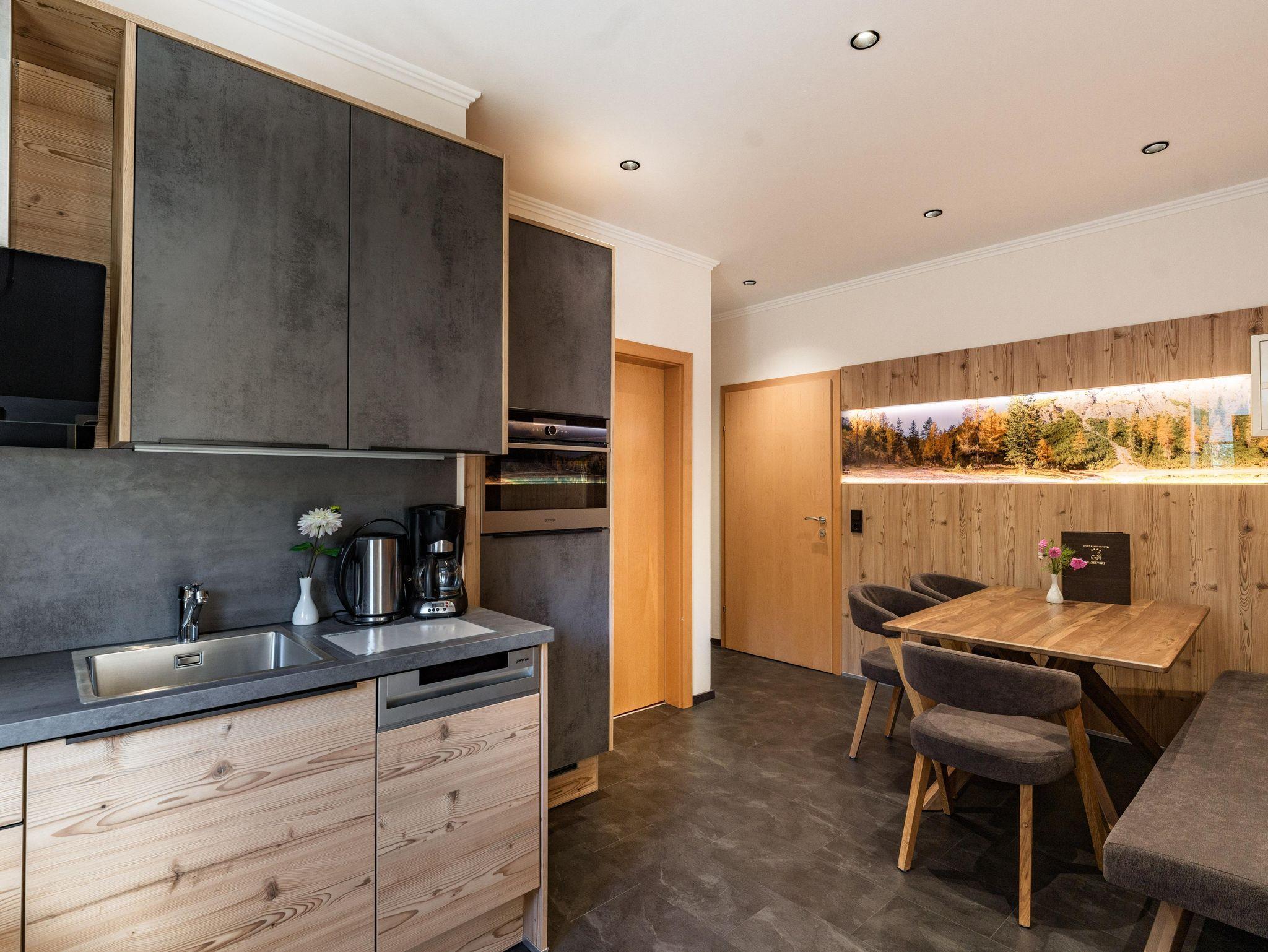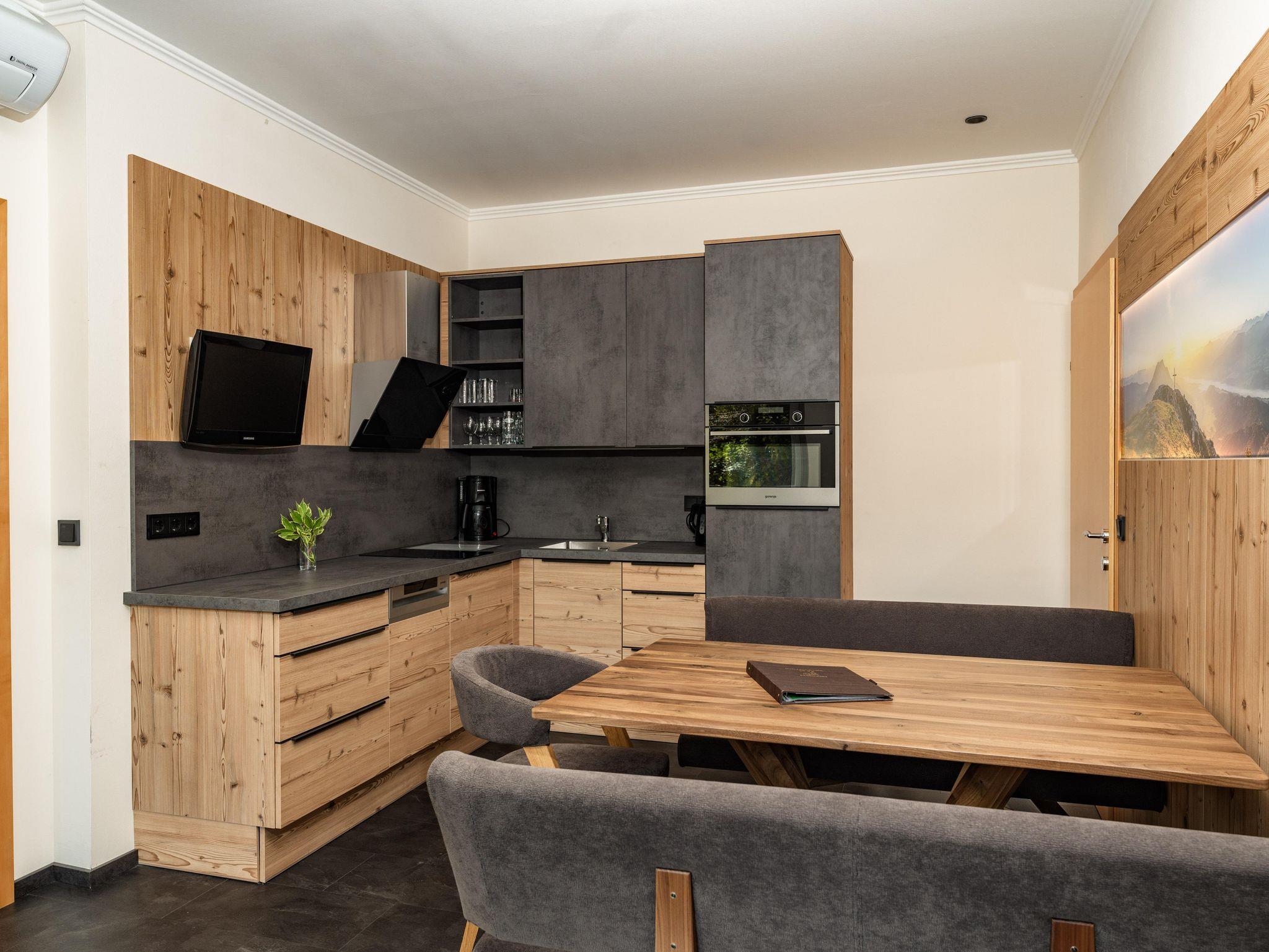 Unsere Fewo Romantik Planai bietet auf 63 m² Platz für 2 bis 5 Personen. Die Wohnung verfügt über eine voll ausgestattete Küche, einen Wohnraum, 1 Doppelzimmer und 1 Dreibettzimmer sowie Badezimmer und WC getrennt. Terrasse, Flat-TV`s, kostenlos W-lan, Safe