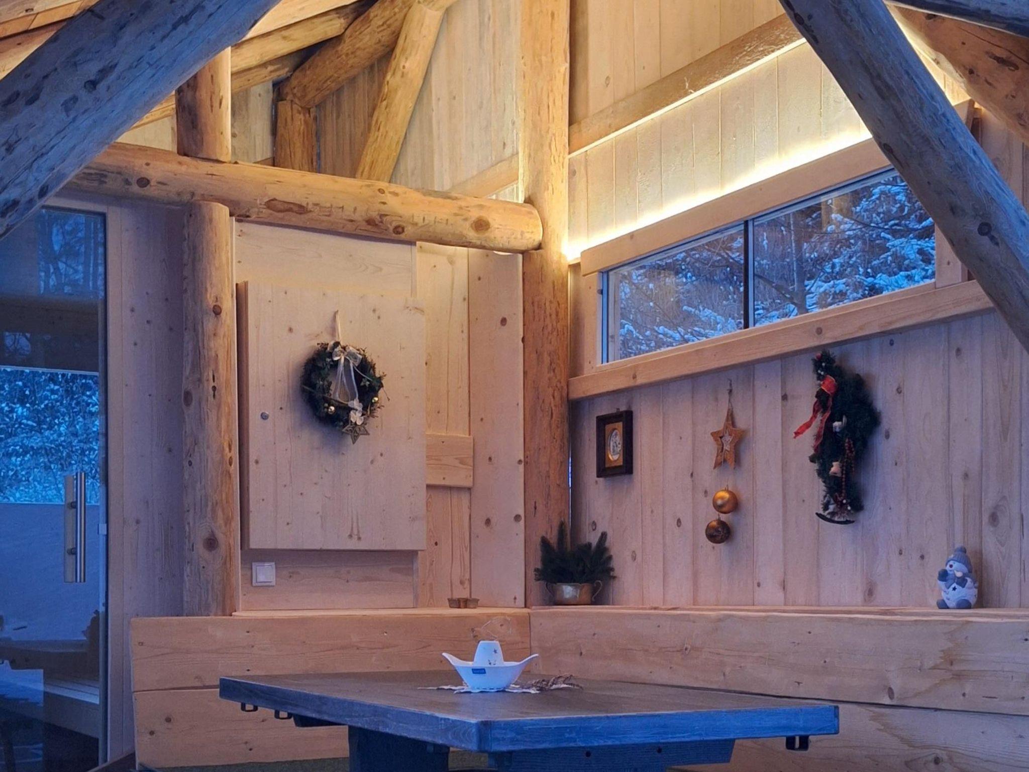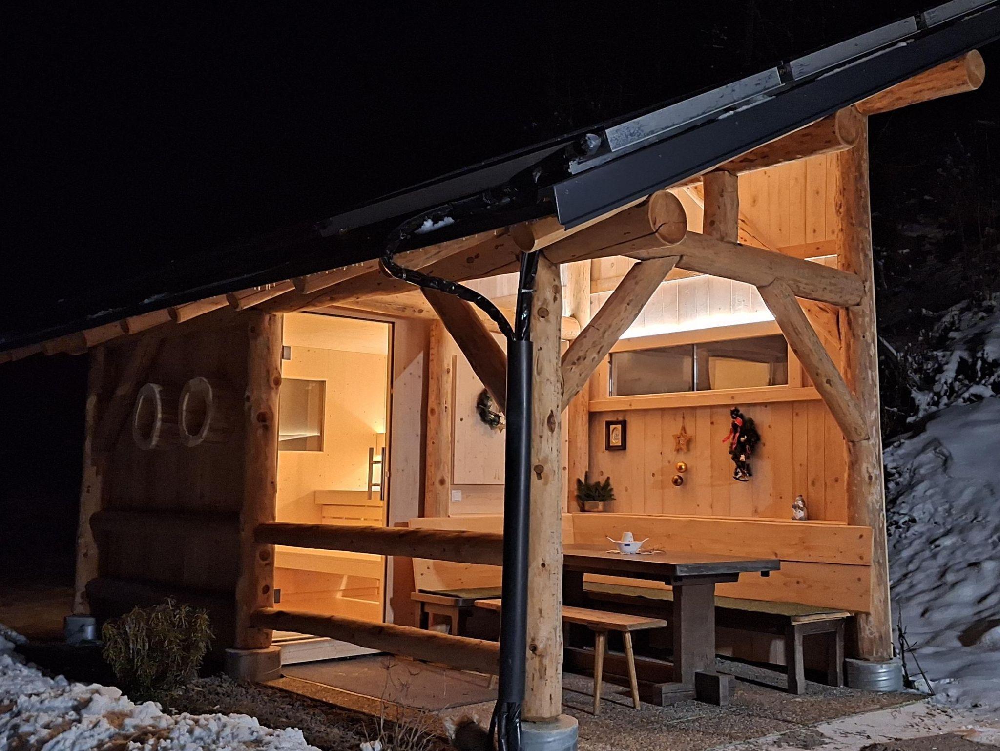 Die voll ausgestattete Küche und das gemütliche Wohnzimmer bieten alle Annehmlichkeiten für einen entspannten Aufenthalt. Nach einem Tag auf der Piste oder beim Wandern können Sie sich in der Außensauna entspannen oder den Ausblick von der Gartenhütte genießen.