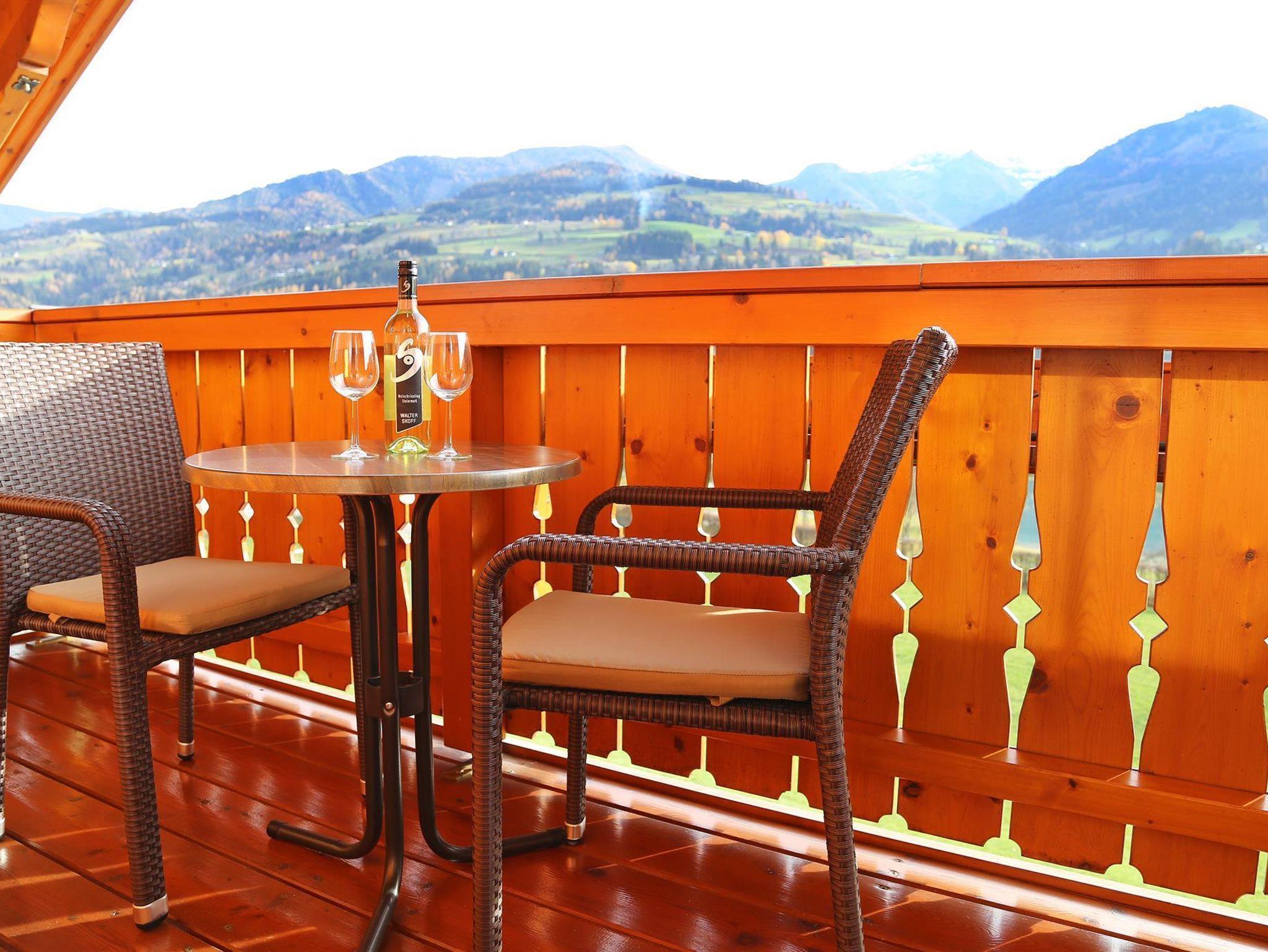Die Aussicht vom Balkon auf die umliegende Bergwelt und den Aicher Badesee ist einfach traumhaft.