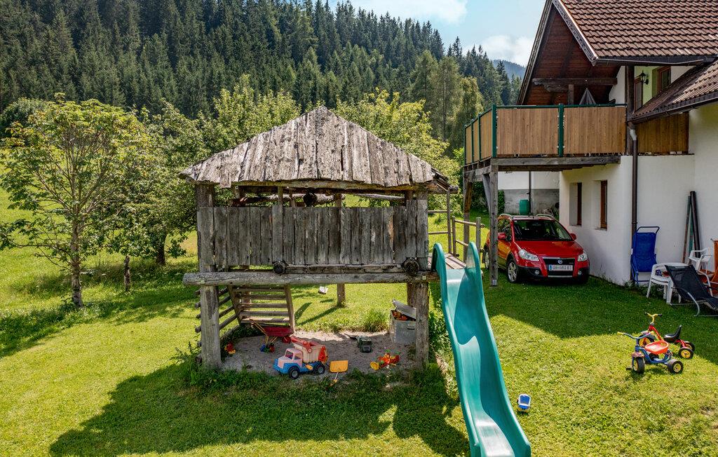Im weitläufigen Garten können Sie das beeindruckende Bergpanorama und Ihren Morgenkaffee genießen, während Ihre Kinder auf dem Spielplatz toben.