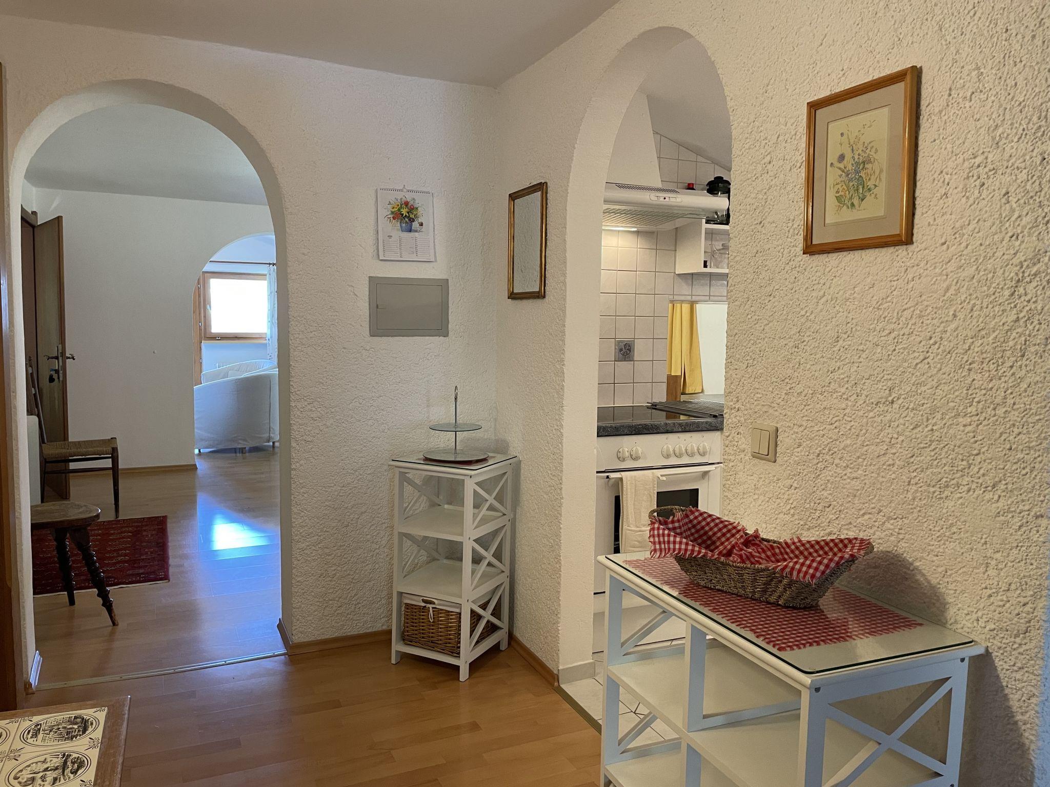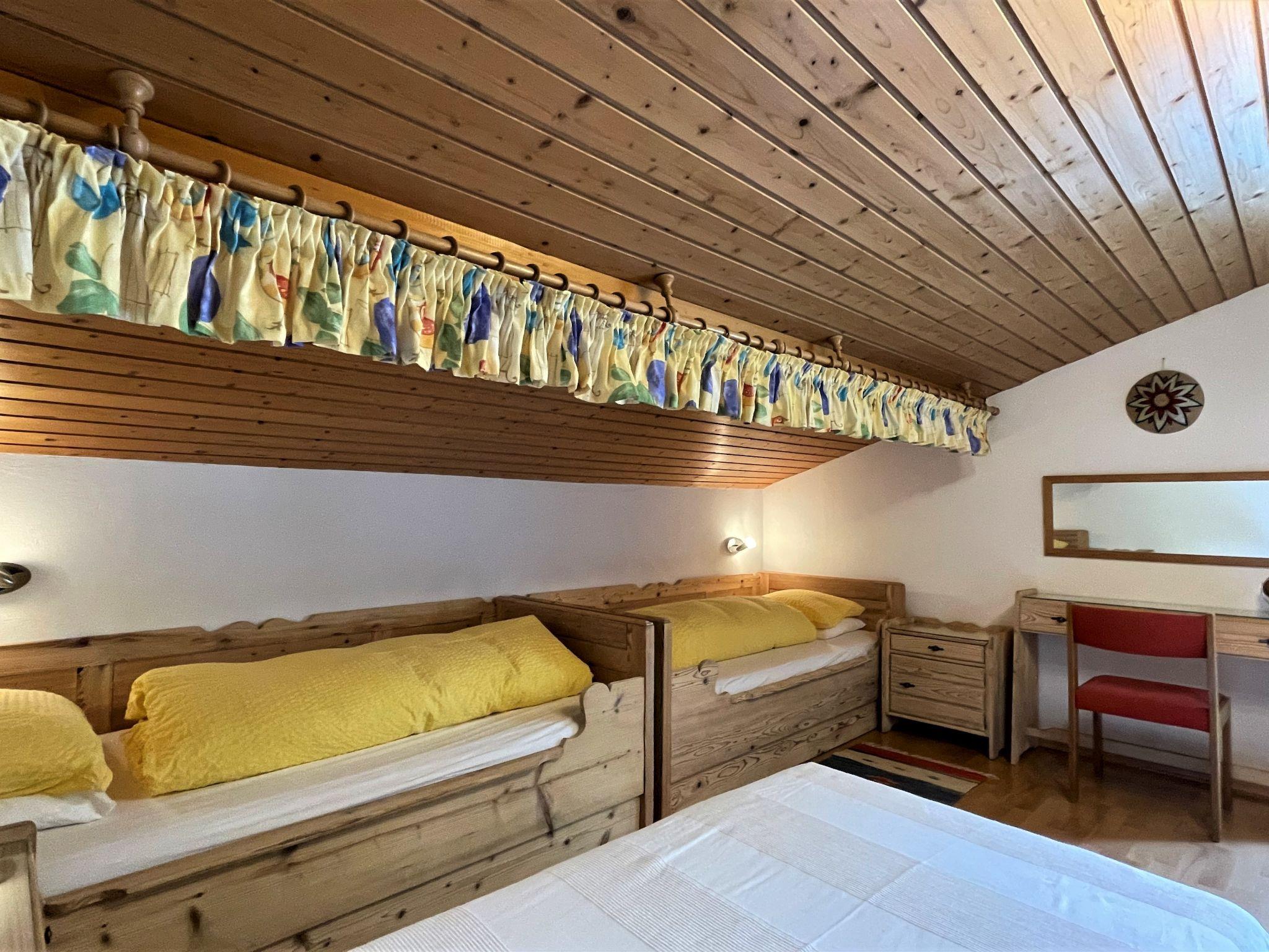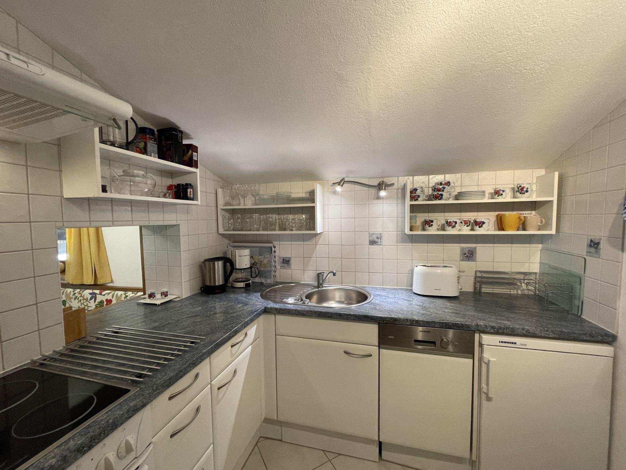 3-room apartment 87 m2, on the top floor. Spacious and bright, partly with sloping ceilings, beautiful furnishings: open living room with satellite TV and radio. Exit to the balcony. 1 double bedroom with hand-basin. 1 room with 3 beds. Exit to the balcony. Open dining room with dining nook. Kitchen (4 hot plates, oven, dishwasher, toaster, kettle, microwave, electric coffee machine) with hatch. Bath/WC, sep. WC. Balcony, south-west facing position. Balcony furniture. Very beautiful panoramic view of the mountains and the valley. Facilities: children's high chair. Internet (WiFi, free). Please note: smoke alarm.