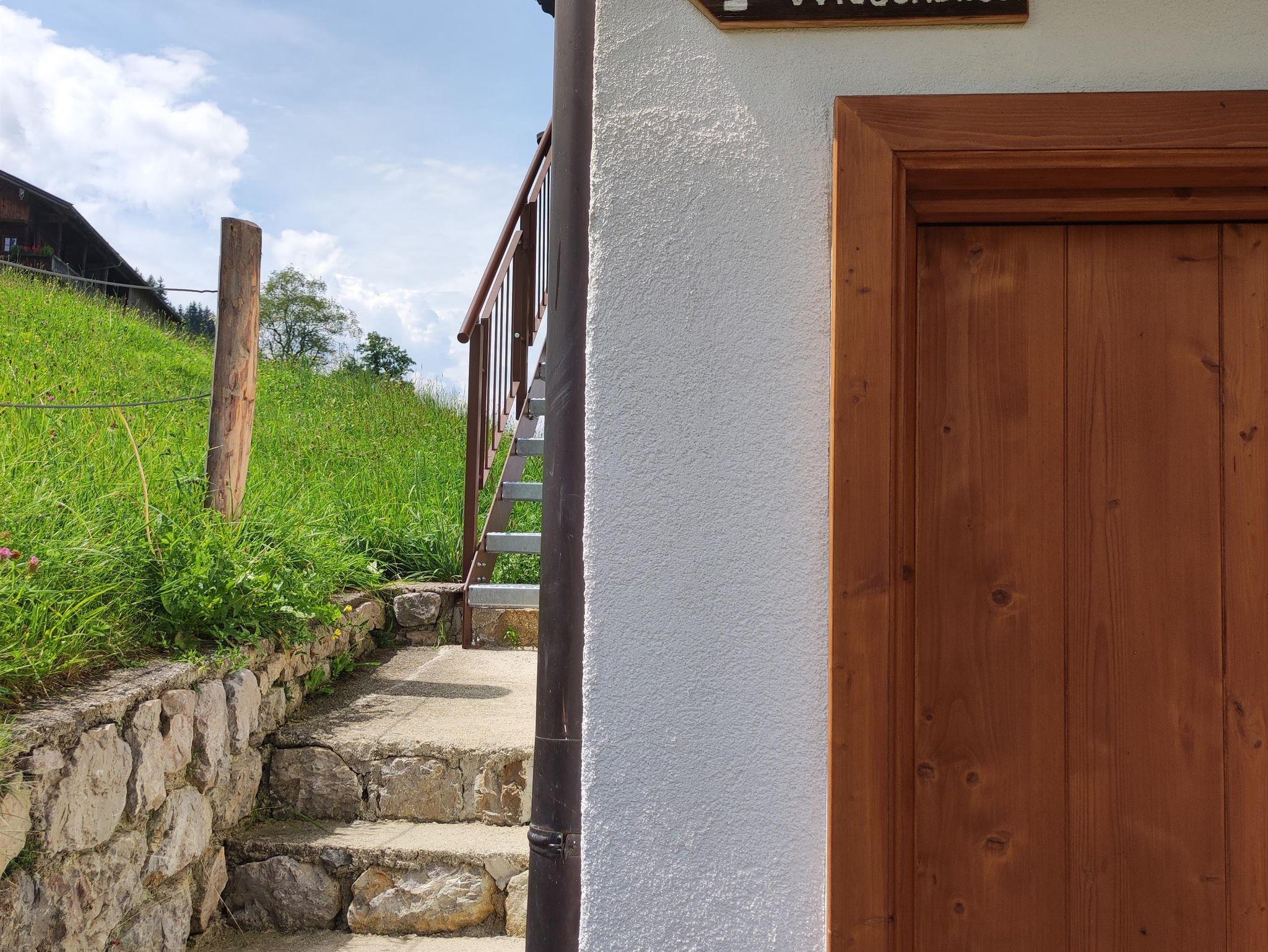 Die Ferienwohnung Wiesenblick eignet sich bestens für Ruhesuchende und junge Familien, da sie im Häuschen nebenan untergebracht ist und Platz für max. 2 Personen (+ Gitterbett auf Anfrage) bietet. Auf dem Balkon kann man in der Morgensonne das Frühstück genießen und dabei den Ausblick auf die Wiesen und Berge genießen. Gerne kann auch die Terrasse im Garten genutzt werden.