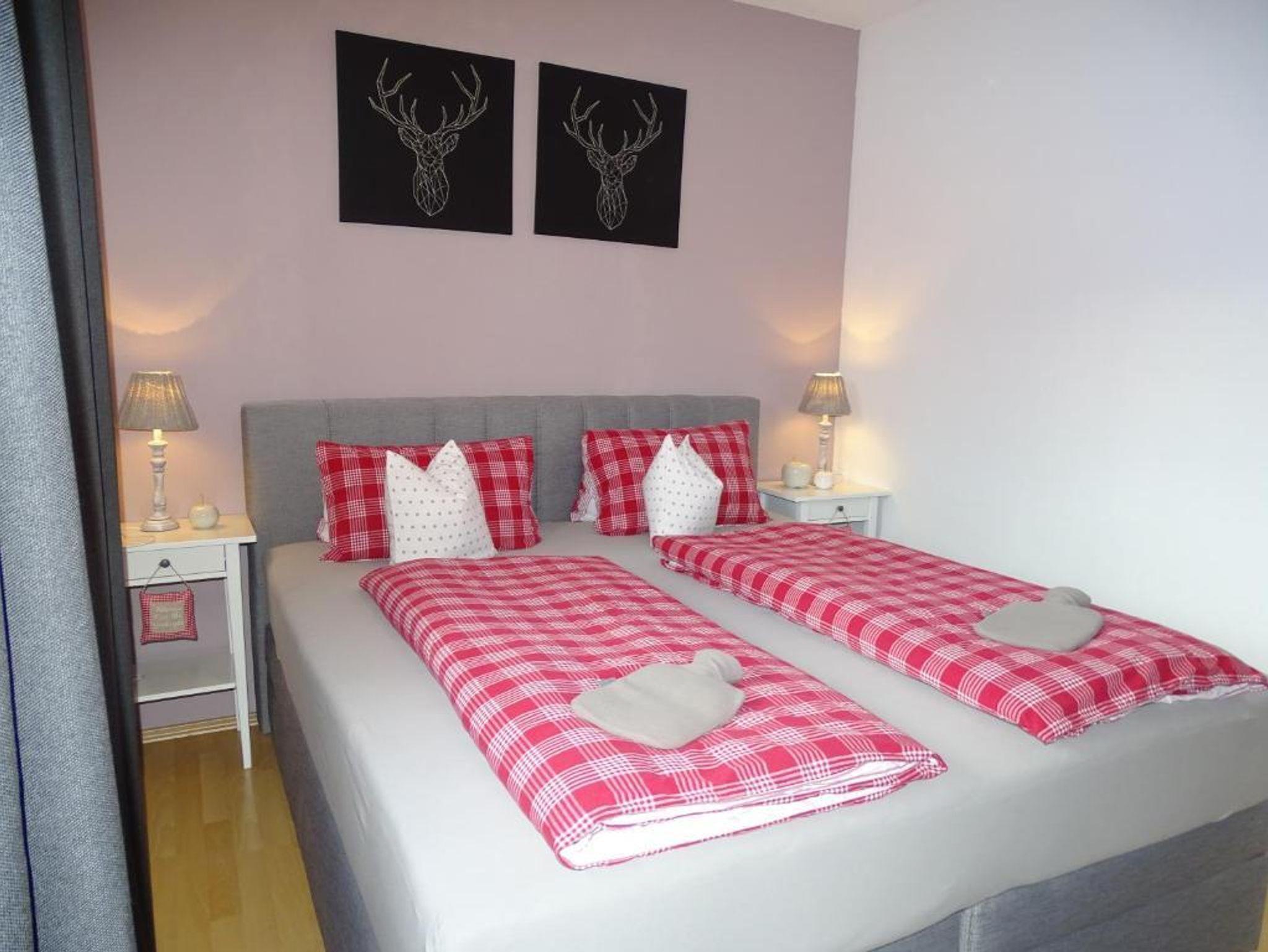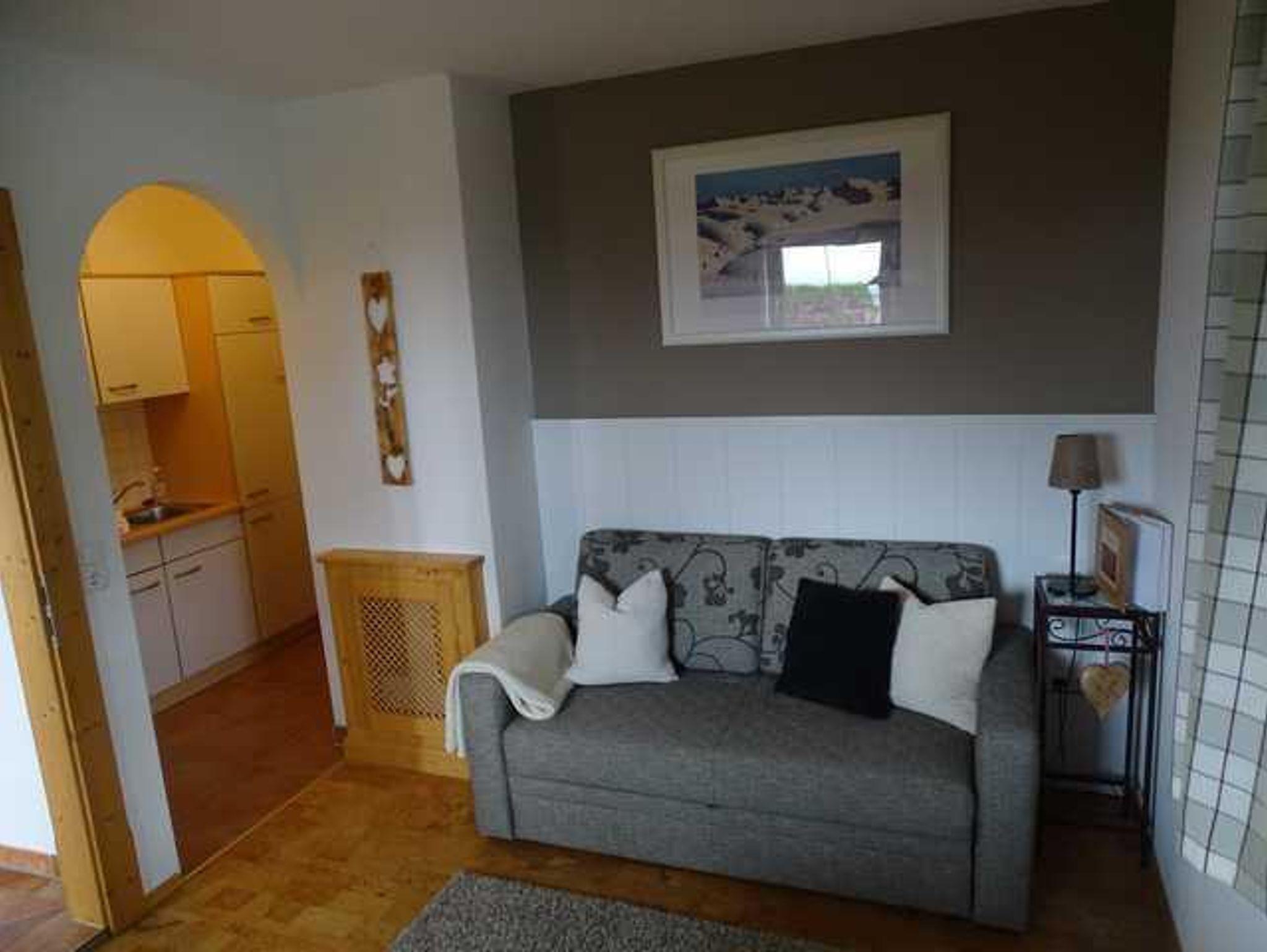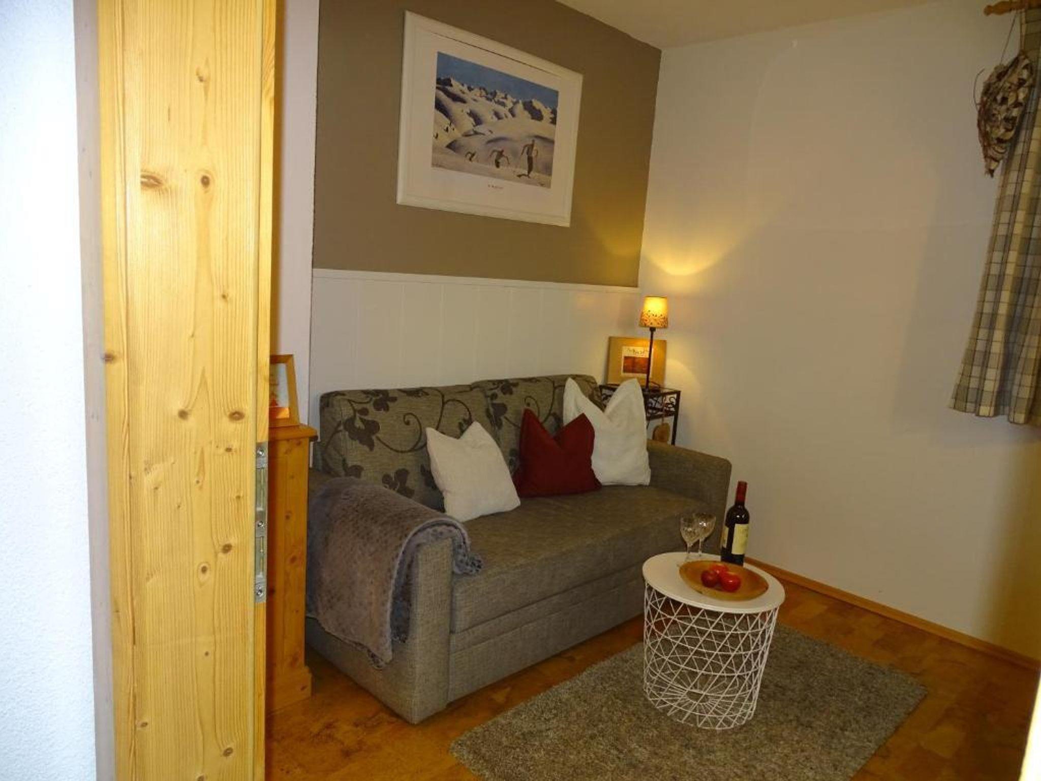 Sie wohnen in einem gemütlichen Appartement mit 1 Schlafzimmer und einer Schlafcouch im Wohnzimmer.