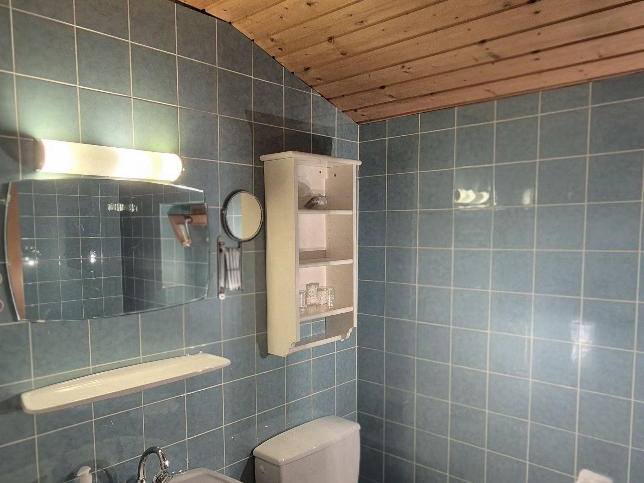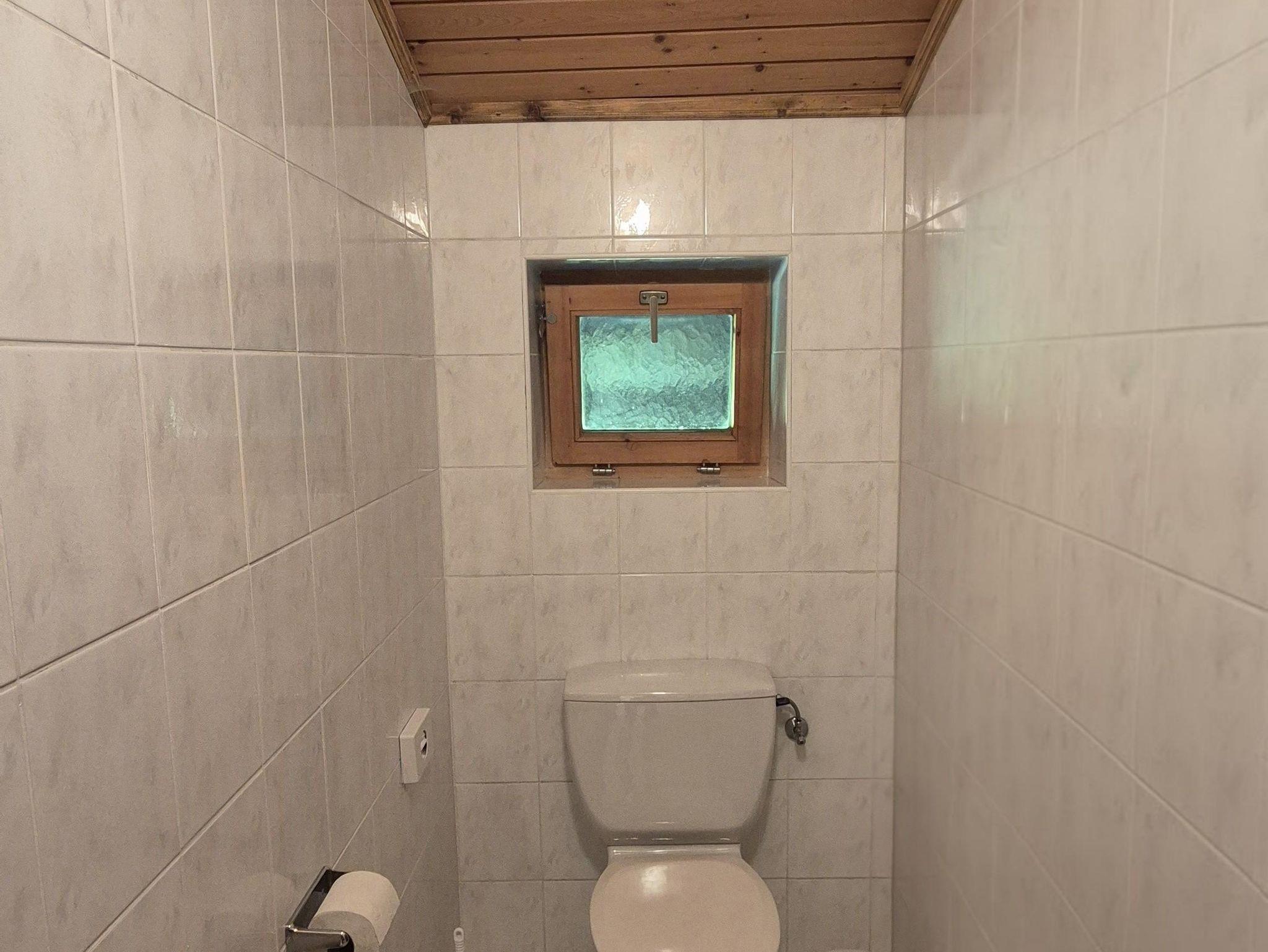 Aufteilung: ein Schlafzimmer mit Doppelbett ? ein Schlafzimmer (Dachschräge) mit zwei Einzelbetten, welches sich gut als Kinder Schlafzimmer anbietet ? ein Badezimmer (Badewanne mit Duschvorrichtung) mit WC ? ein separates WC ? eine Küche mit Durchreiche zum Esstisch, ein Esszimmer, ein Wohnzimmer.