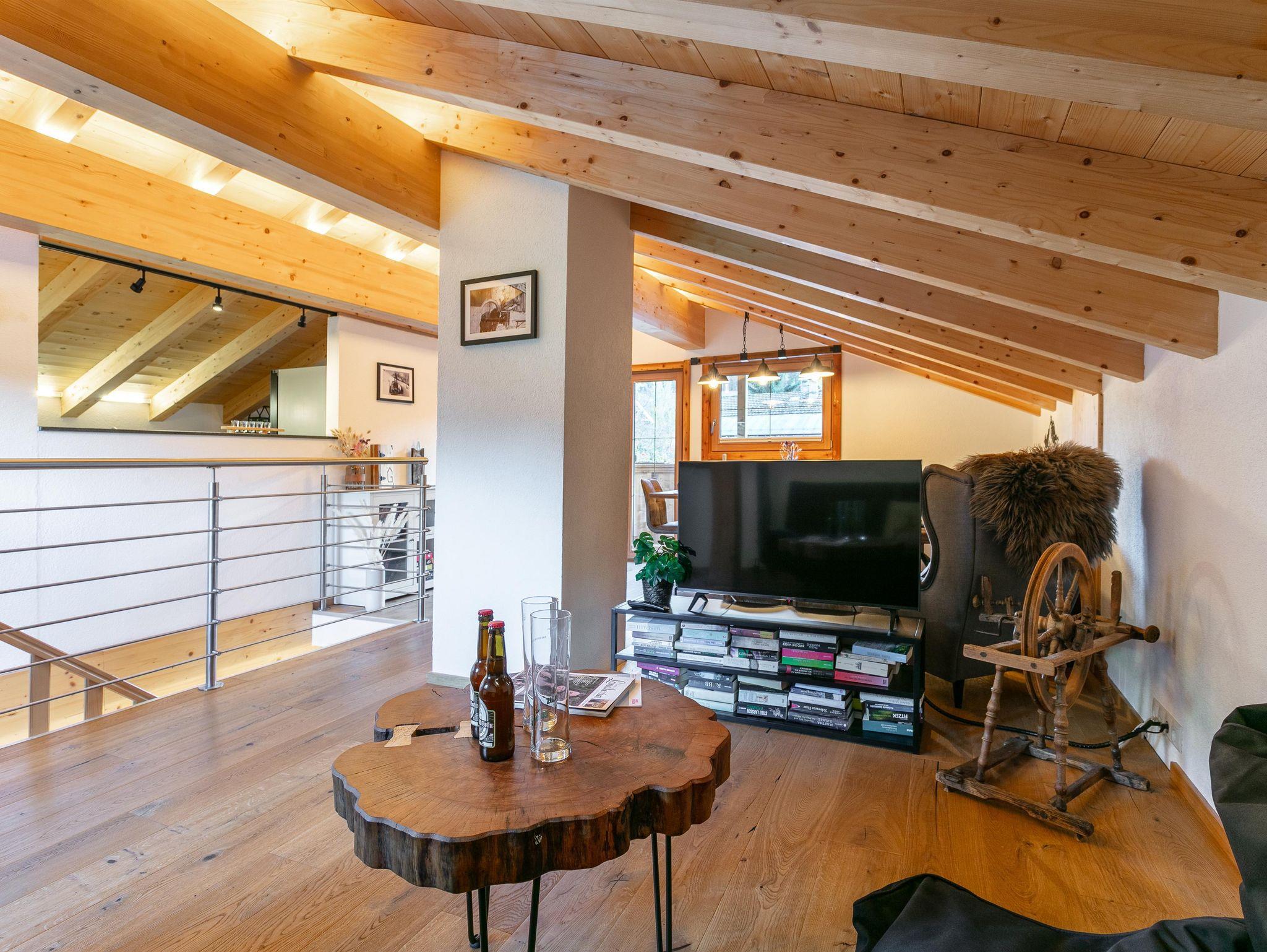 Ein besonderes Highlight ist die rund 25 m² große Terrasse – ideal, um laue Sommerabende mit Blick auf das beeindruckende Bergpanorama zu genießen. Zwei überdachte Parkplätze stehen Ihnen ebenfalls zur Verfügung.