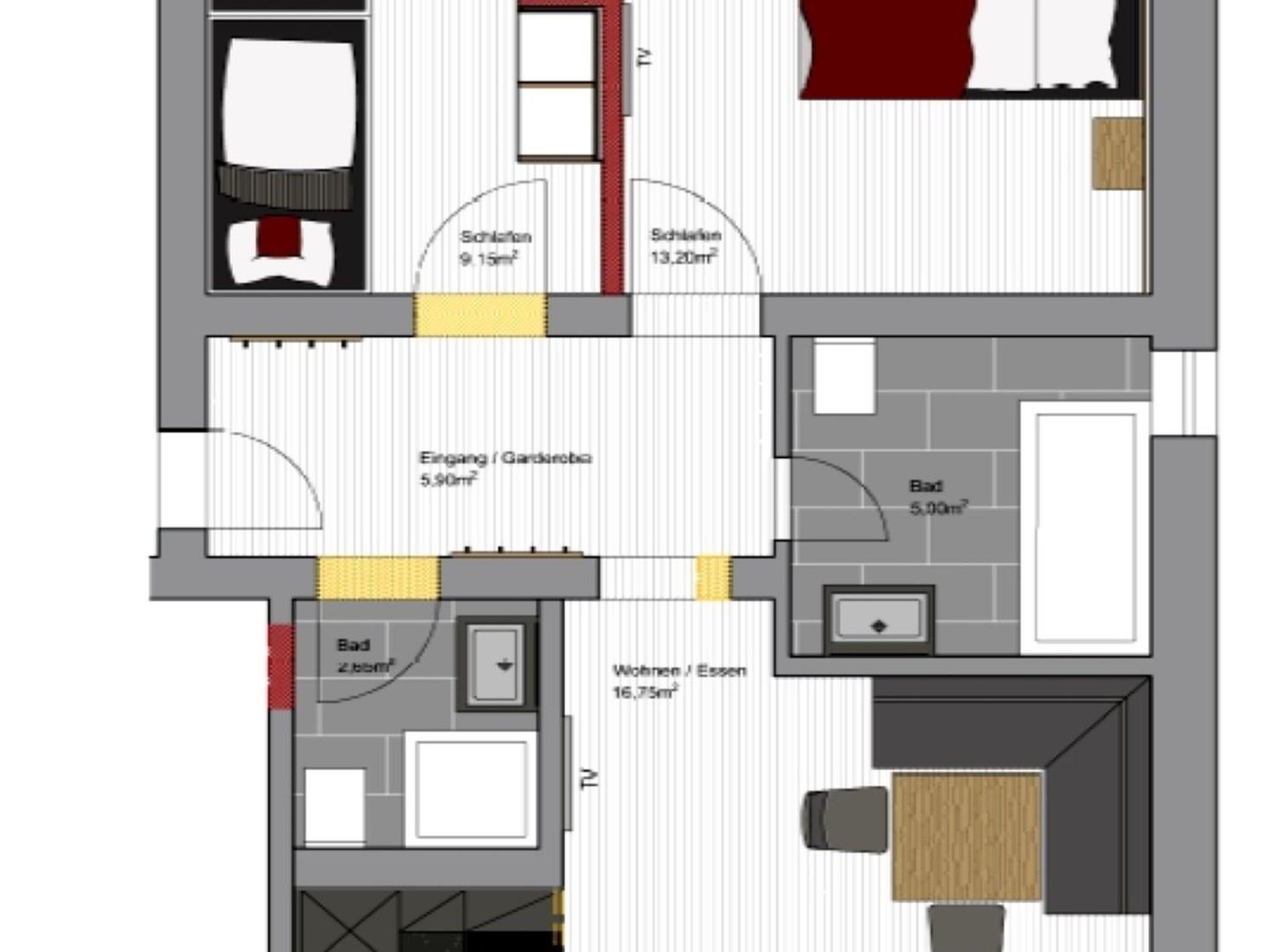 2 getrennte Schlafzimmer (1x Kinderzimmer mit 2 längs gestellten Betten) Elternzimmer mit Doppelbett,