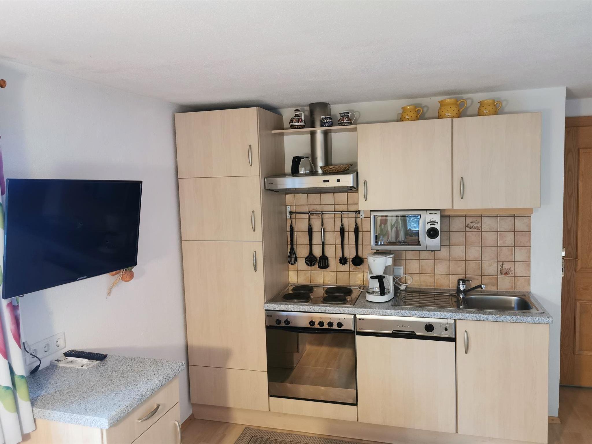 Grundausstattung: Kühlschrank, Geschirrspüler, Kaffeemaschine, Mikrowelle & Backofen, Satelliten TV & Radio.