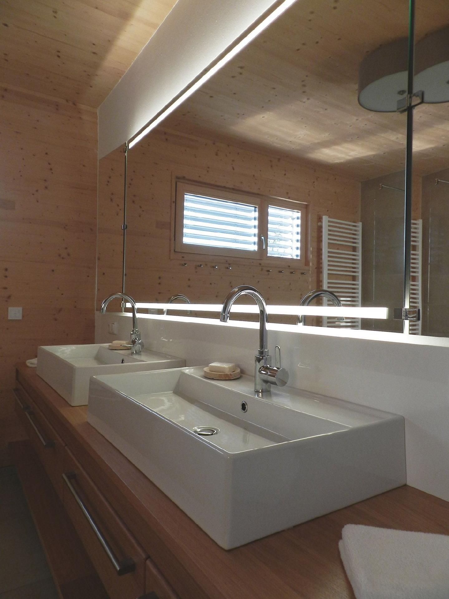 On the 135 m² ground floor there is a spacious living room with dining area and flatscreen TV, a modern, fully equipped kitchen, 3 bedrooms with double beds, one bedroom with two single beds, two bathrooms with shower and 2 toilets. All living areas are equipped with underfloor heating. For cosy winter days, there is a tiled stove in the living room and the south-facing terrace with a wonderful view of the mountains is accessible from the living area. A gas barbecue is available for barbecue professionals. A table and comfortable armchairs invite you to enjoy a cosy get-together. In the basement (95 m²) is the wellness area with a sauna and shower, a quiet zone with a small kitchenette, a table tennis room, a laundry room with washing machine and tumble dryer and a drinks fridge.