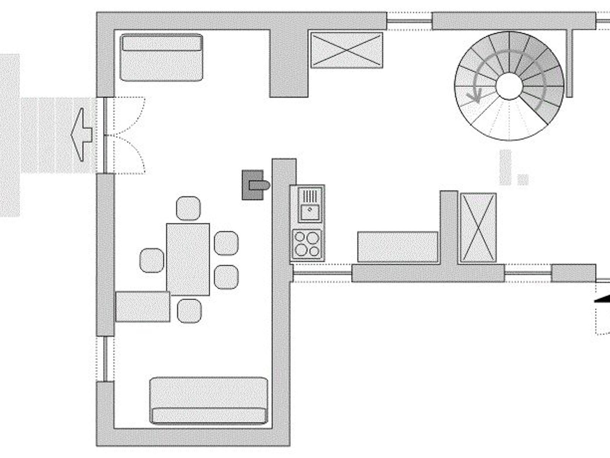Das Apartment Gartenhaus hat 60 m² und verfügt im Erdgeschoß über eine vollständig ausgestattet Küche mit Geschirrspüler und einen gemütlichen Wohn-Essbereich mit einem Schwedenofen von dem aus man in den Garten mit Terrasse kommt. Das Obergeschoss ist über eine Wendeltreppe erreichbar. Hier befinden sich 2 getrennte Schlafzimmer mit Doppelbetten und ein Badezimmer. Eine fünfte Person kann auf einer ausziehbaren Couch im Wohnbereich schlafen.