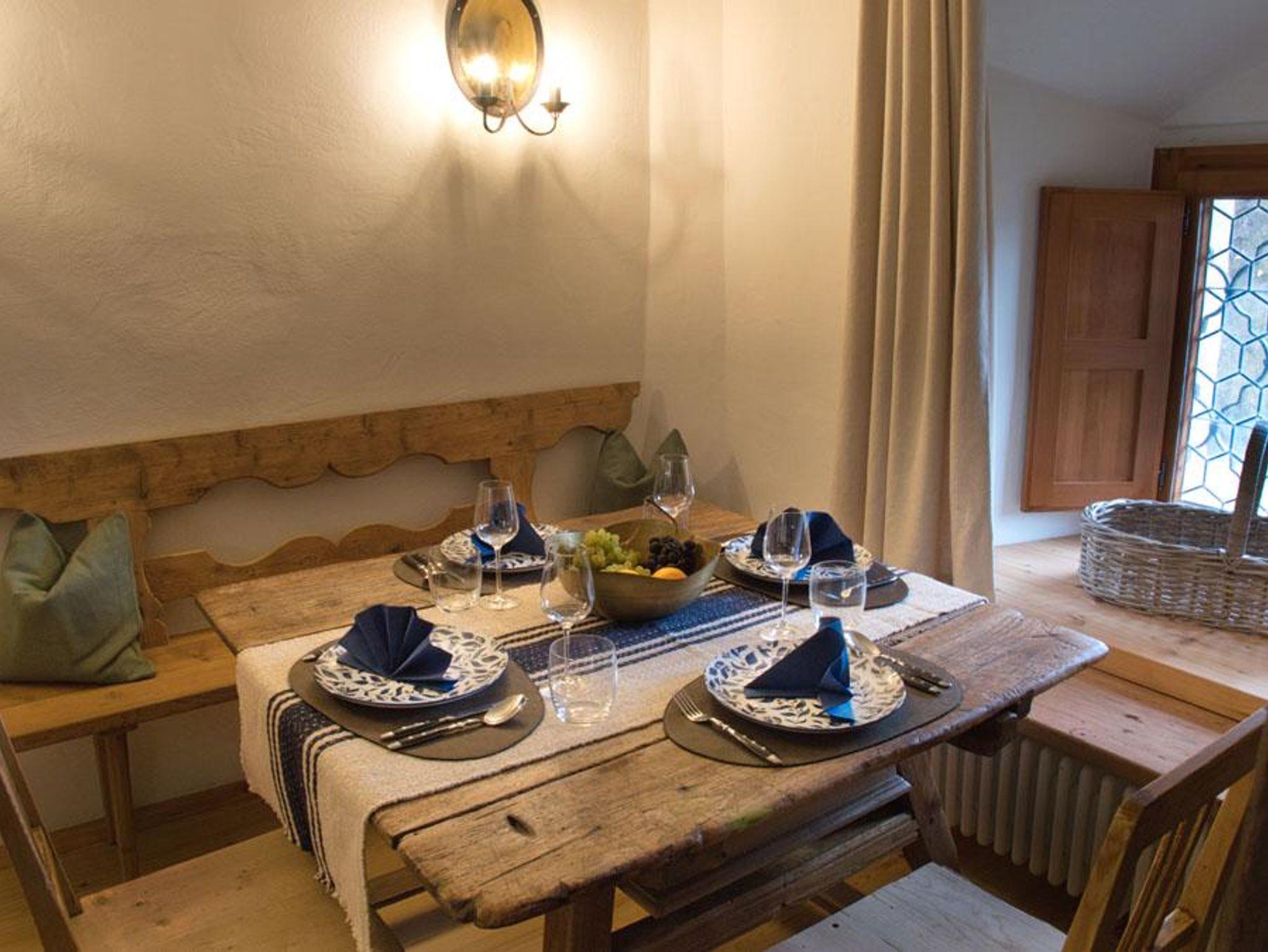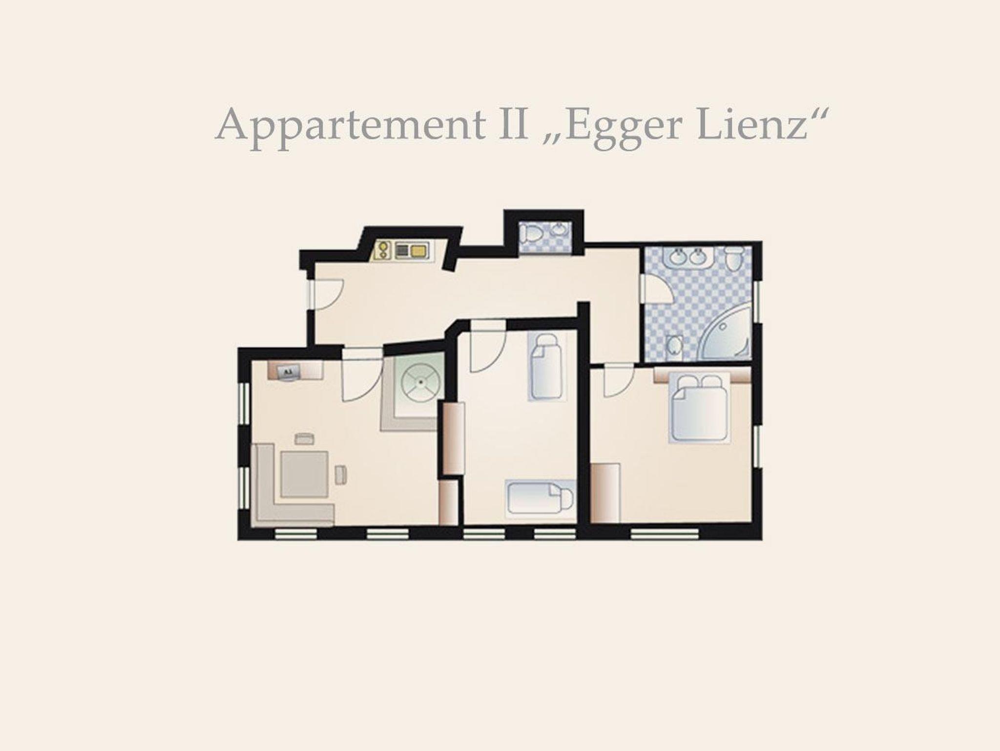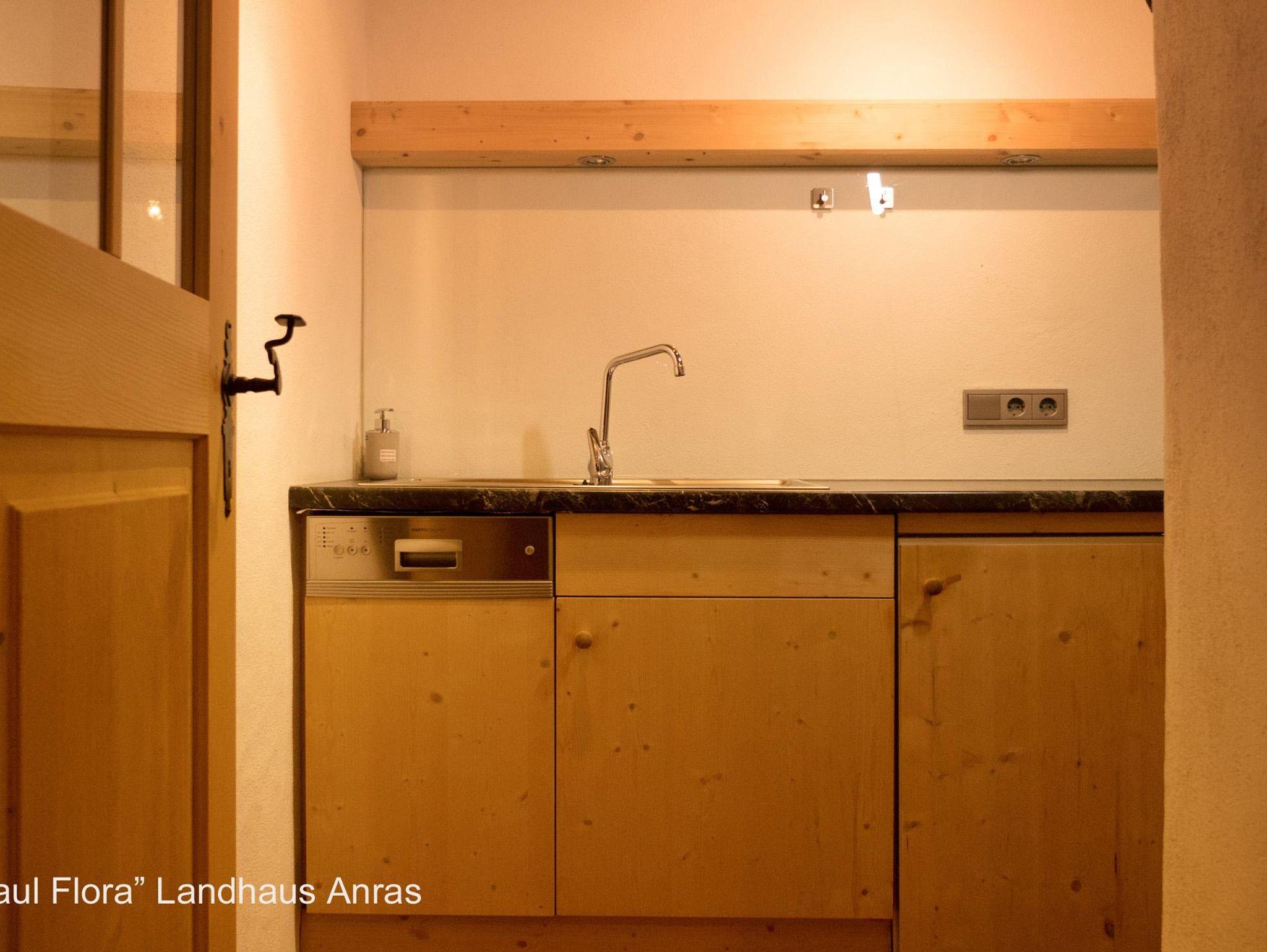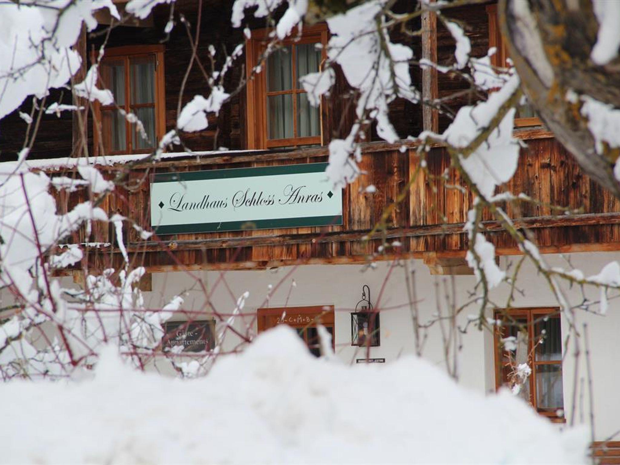 Besonders schön durch die handbehauene Holztäfelung und den Südbalkon mit Balkonmöbeln zum Entspannen in der Sonne, mit Blick auf das prachtvolle Schloss Anras. Doppelbett, Bad mit Wanne, komplette Küche. Ein zauberhaftes Wohlfühl-Appartment für Zwei