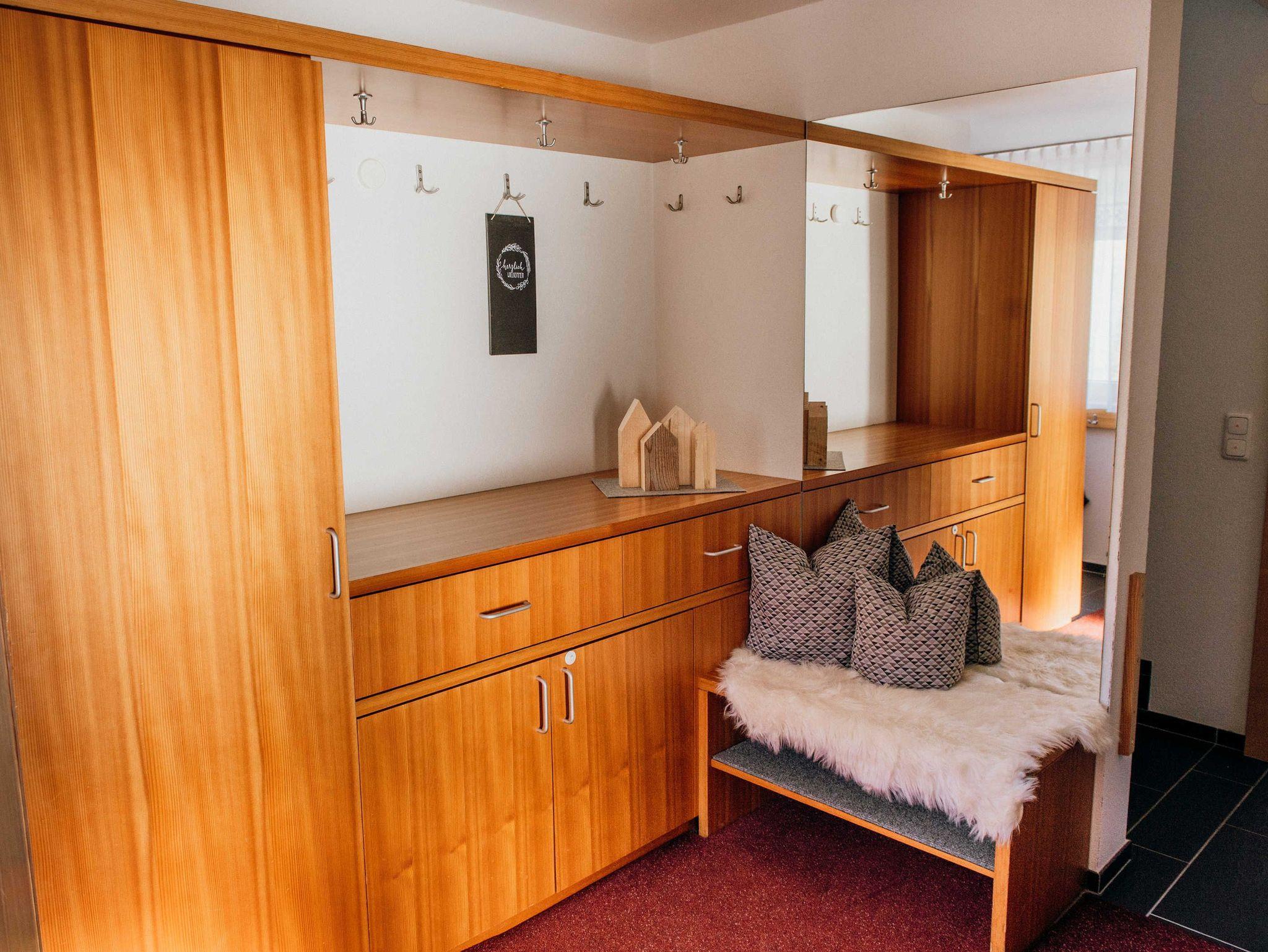 Ferienhaus FuchsbAU für 6-8 Personen. Großzügiger Ess- Küchenbereich getrennt durch eine Schiebetüre gelangen Sie ins Wohnzimmer. 4 Schlafzimmer (3 DZ, 1 Zimmer mit Ausziehbett), Babybett auf Anfrage möglich, 1 Badezimmer mit Dusche und Badewanne, 2 separate Wc´s, 1 Sauna im UG gratis inkl. Dusche & Wc, 1 Ski- / Fahrradraum, 2 kostenlose Parkplätze, Free WLAN, eigenständiger Check in. Brötchen Lieferservice auf Vorbestellung möglich.