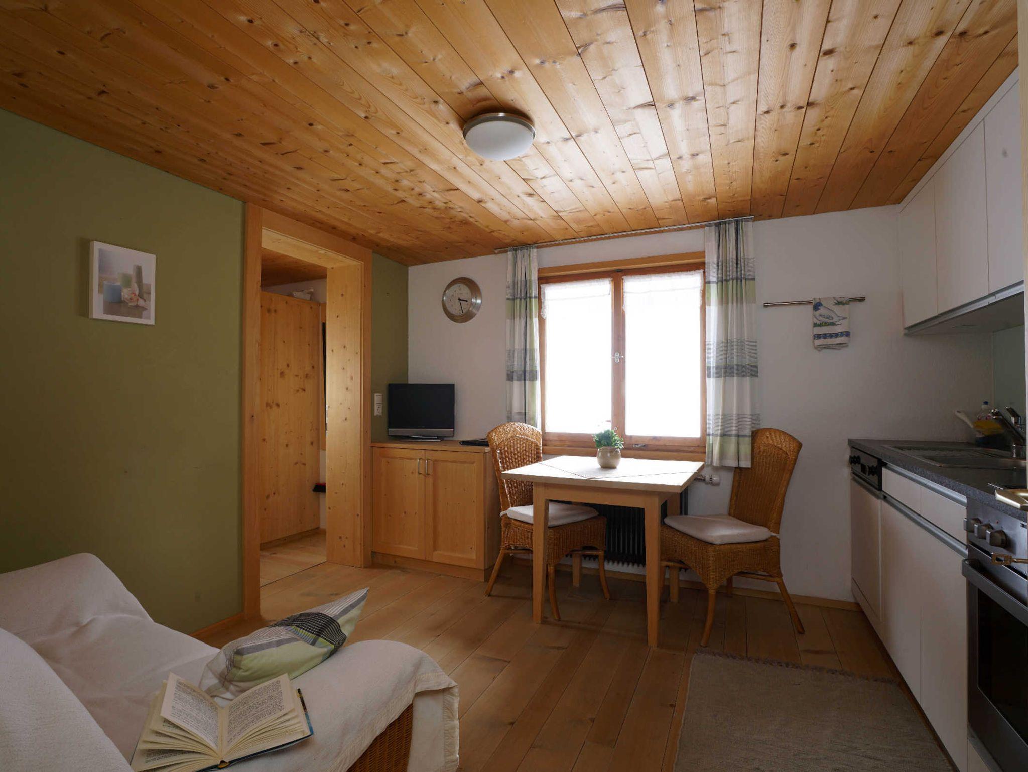 Neu renovierte Ferienwohnung aus Naturmaterialien und Vollholzböden für 2 Personen mit Wohnküche, Schlafzimmer, Dusche/WC und TV.