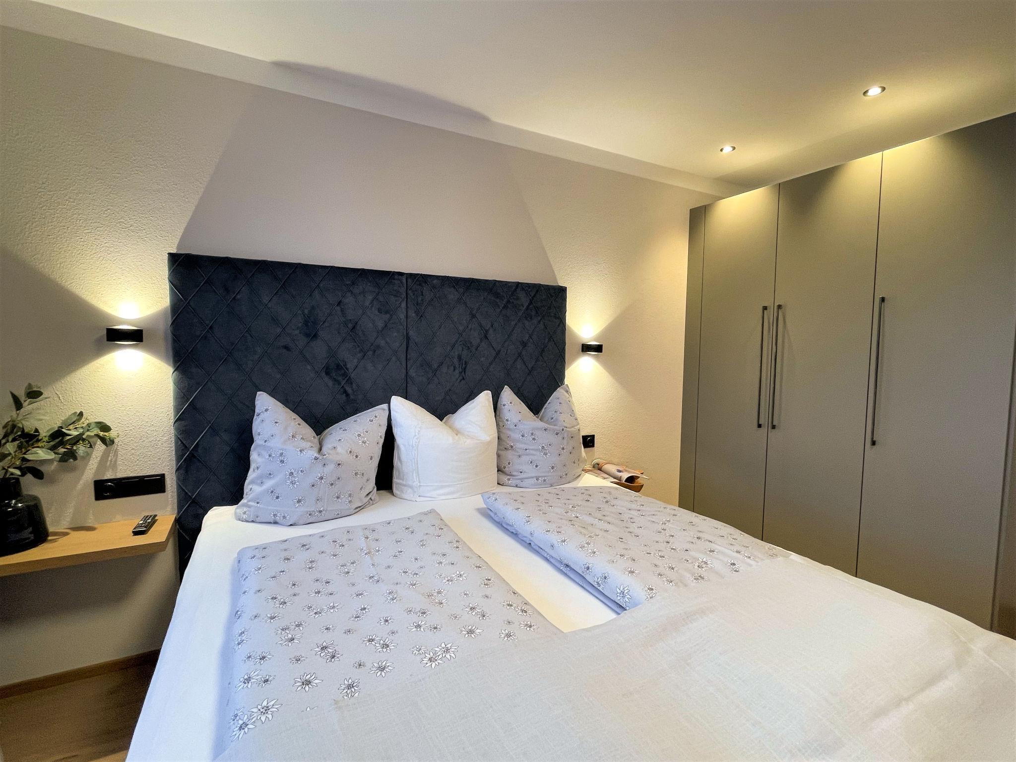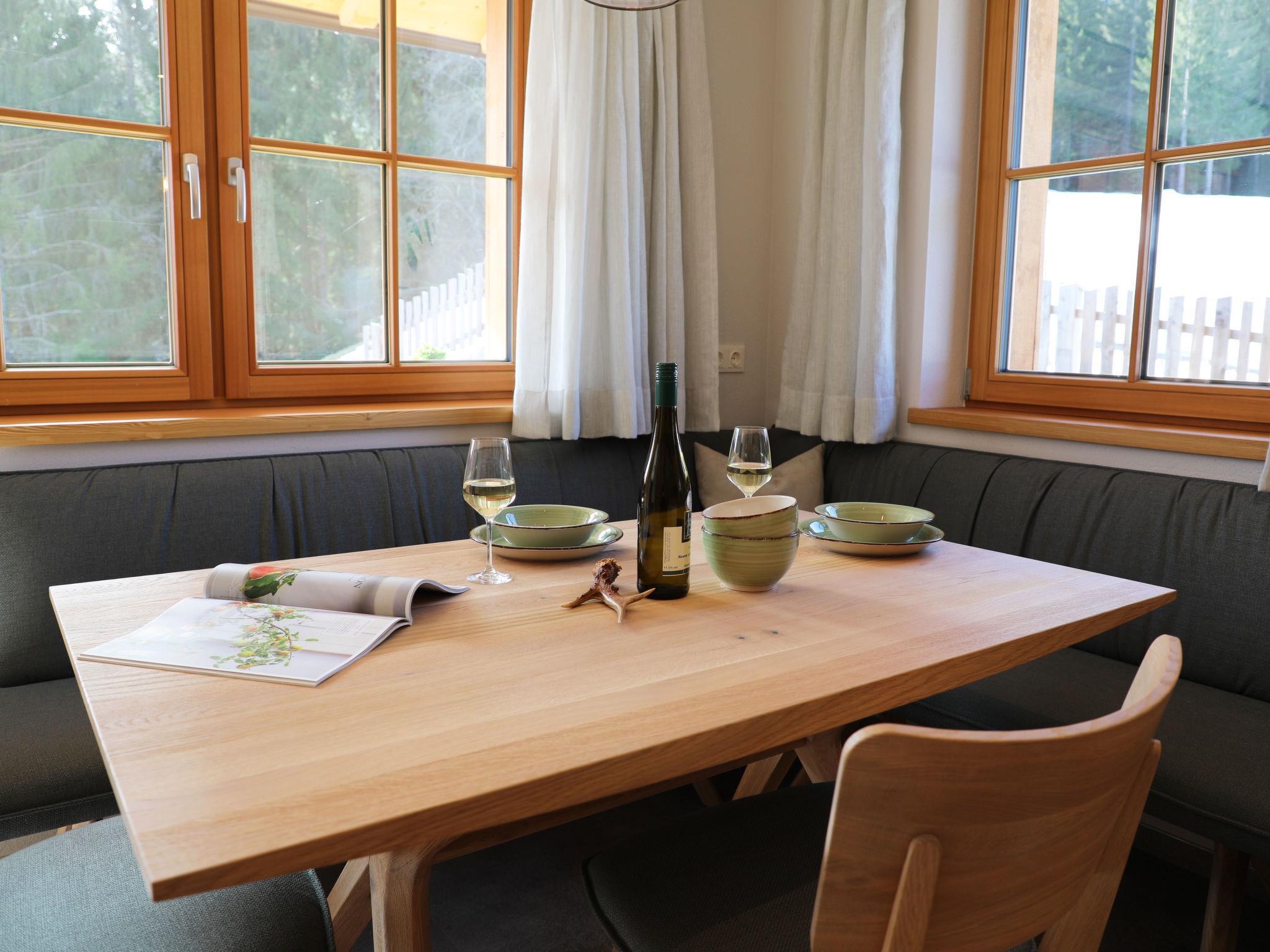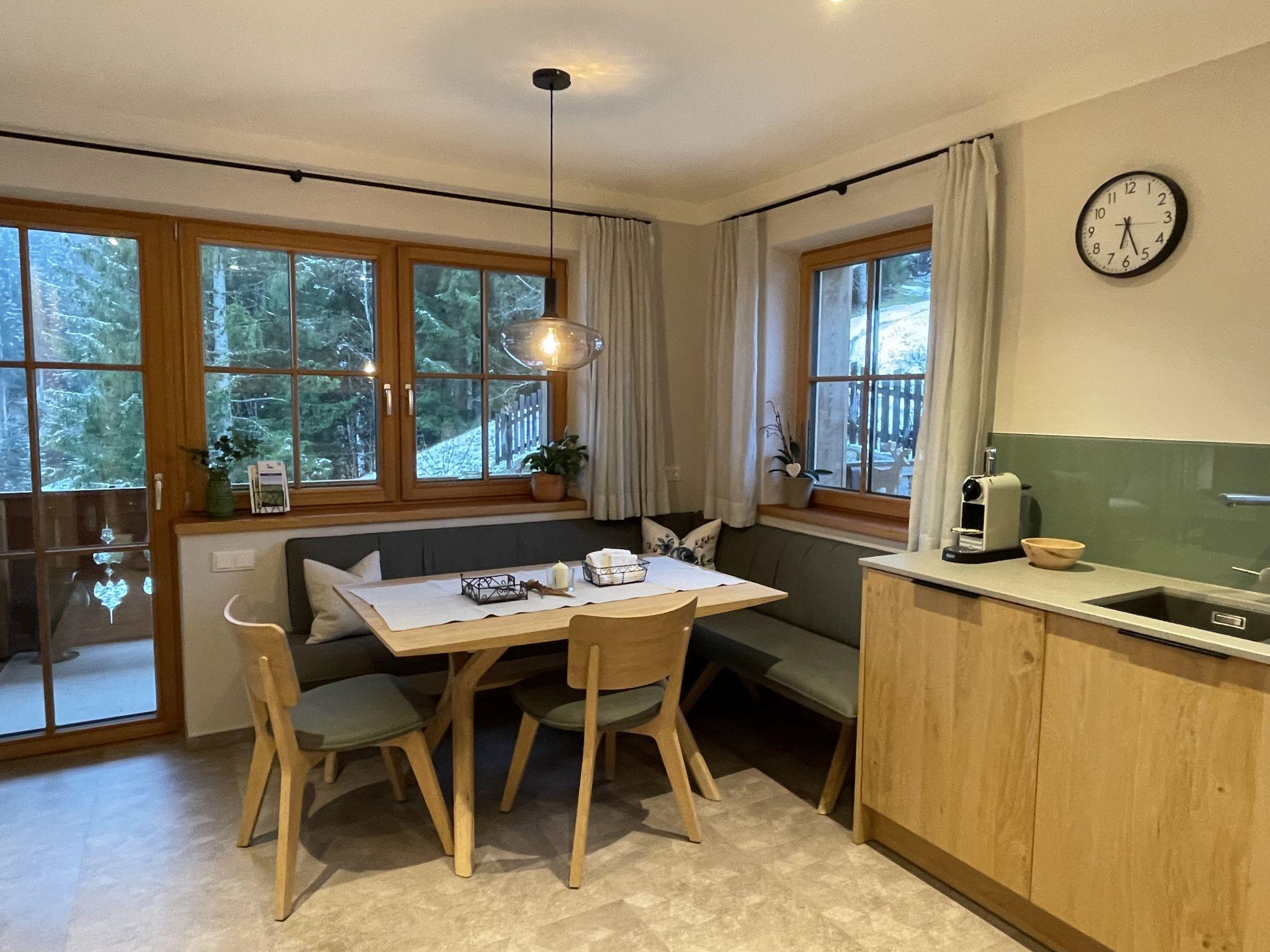 "Panorama Chalet Tirol", 3-room apartment. Bright, very comfortable and tasteful furnishings: large entrance hall. Living room with panoramic window with satellite TV and flat screen. 1 large double bedroom with 1 double bed, satellite TV and flat screen. 1 large double bedroom with 1 double bed. Large kitchen-/living room (oven, dishwasher, 4 ceramic glass hob hotplates, toaster, kettle, freezer, electric coffee machine, Capsules for coffee machine (Nespresso)) with dining nook. Exit to the balcony, to the terrace. Bath/shower, sep. WC, double hand-basin. Underfloor heating. Parquet floors, natural stone floors. Balcony 10 m2, large terrace 30 m2. Terrace furniture, balcony furniture, electric barbecue, deck chairs (2), sitting area. Marvellous panoramic view of the mountains, the valley and the forest. Facilities: washing machine, children's high chair, baby cot, hair dryer. Internet (WiFi, free). Parking (roofed, 2 cars) at the house. Please note: non-smokers only. Private entrance, suitable for allergy sufferers, smoke alarm, fire extinguisher. Ideal accommodation for home office activities or for a "Workation" - thanks to the extra powerful business WLAN.