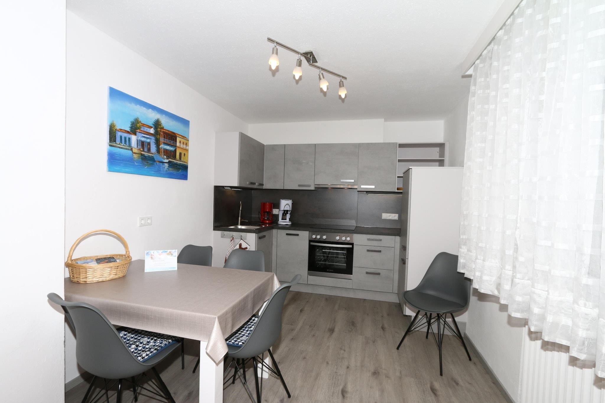 On the 1st floor: (Kitchen(dining table, hob(ceramic), oven, dishwasher, fridge-freezer), Living/bed room(TV(satellite), seating area), bedroom(double bed), bedroom(double bed), bathroom(shower), toilet, baby crib(free)) balcony, heating(central), garden furniture, parking, parking