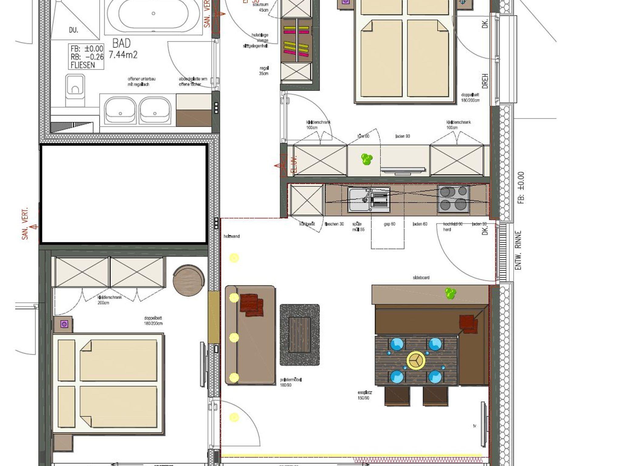 Im Sommer 2016 eingeweihtes und unverbrauchtes neues Appartement (ca. 62 m²). Eingerichtet im modernen alpinen Stil verfügt es über: • 2 Doppelschlafzimmer mit Naturholzbetten • Badezimmer mit Dusche, WC, Badewanne, Waschtrockner • Hochwertige Einbauküche mit Komplettausstattung • Großzüger, offener Wohn- Essbereich • Großer Balkon mit herrlichem Panoramablick • Ausladende Sonnenterasse (Südwest) mit Loungemöbeln Außerdem vorhanden: • Fahrstuhl • Skikeller • Fahrradraum