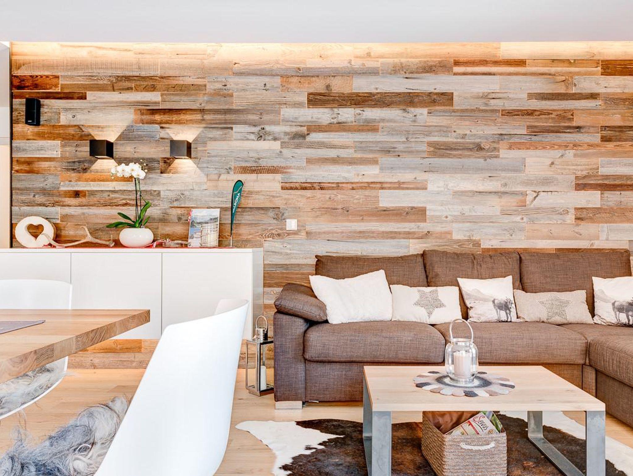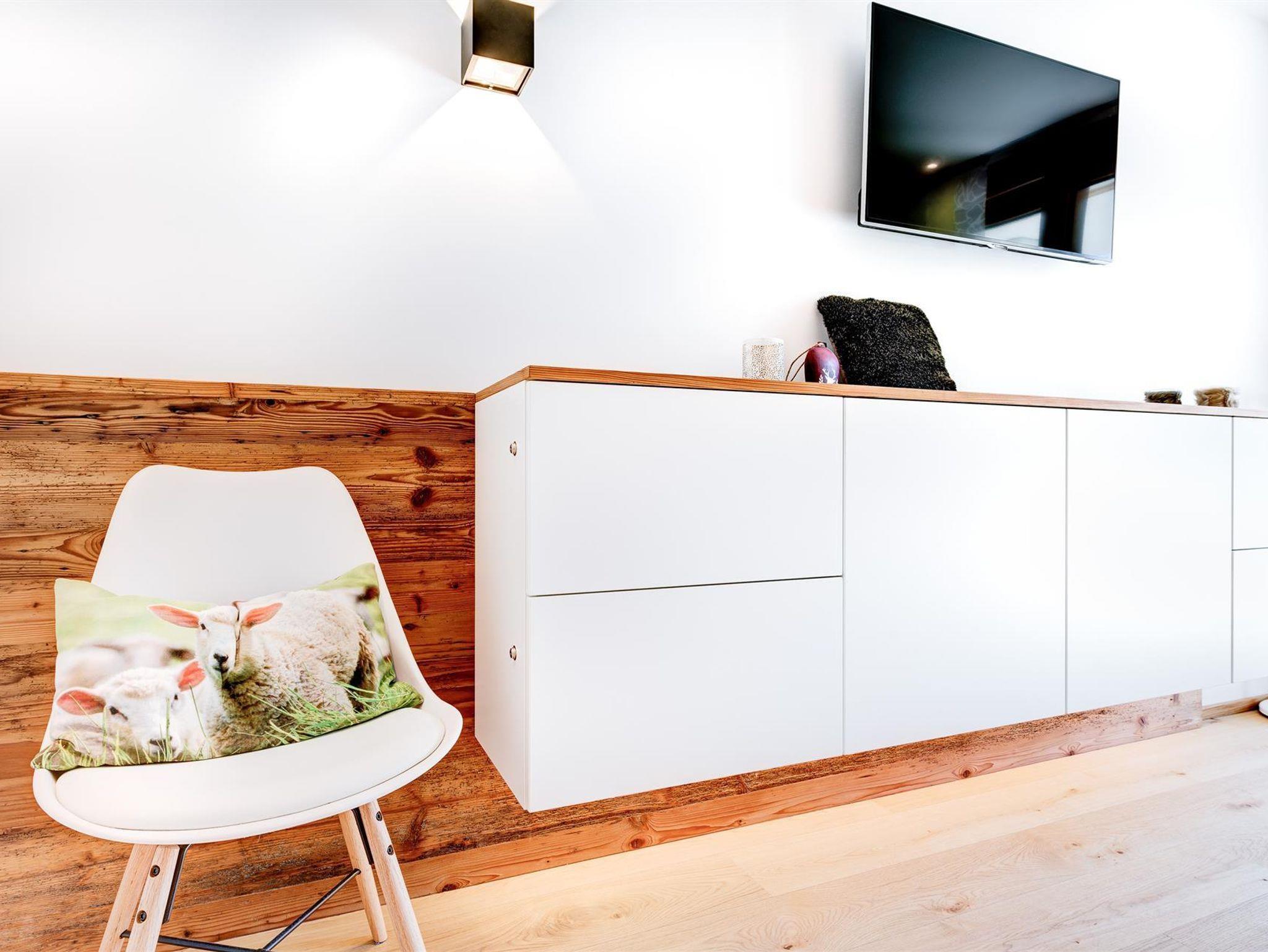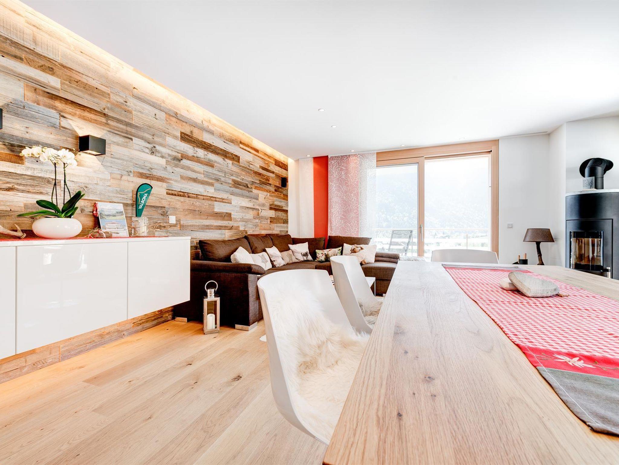 Der heimelige Kamin, Holzwandelemente mit indirekter Beleuchtung und die ökologische und hachhaltige Bauweise (Holz und Möbel aus regionalen Schreinerbetrieb)sorgen für Wohlfühlambiente.