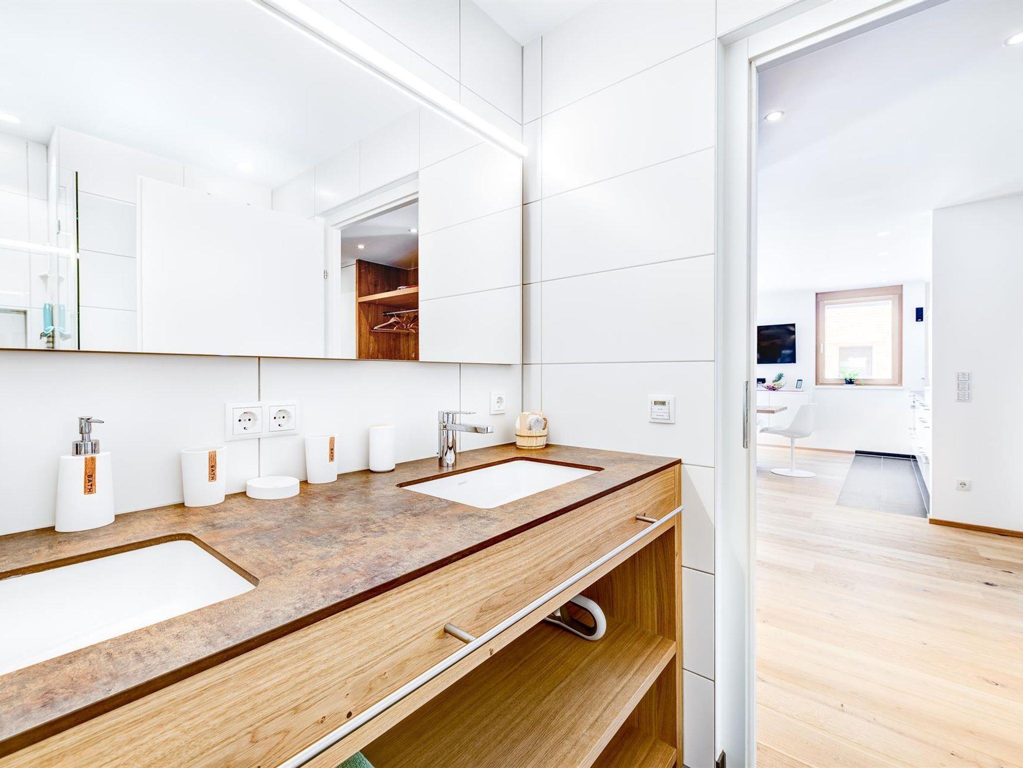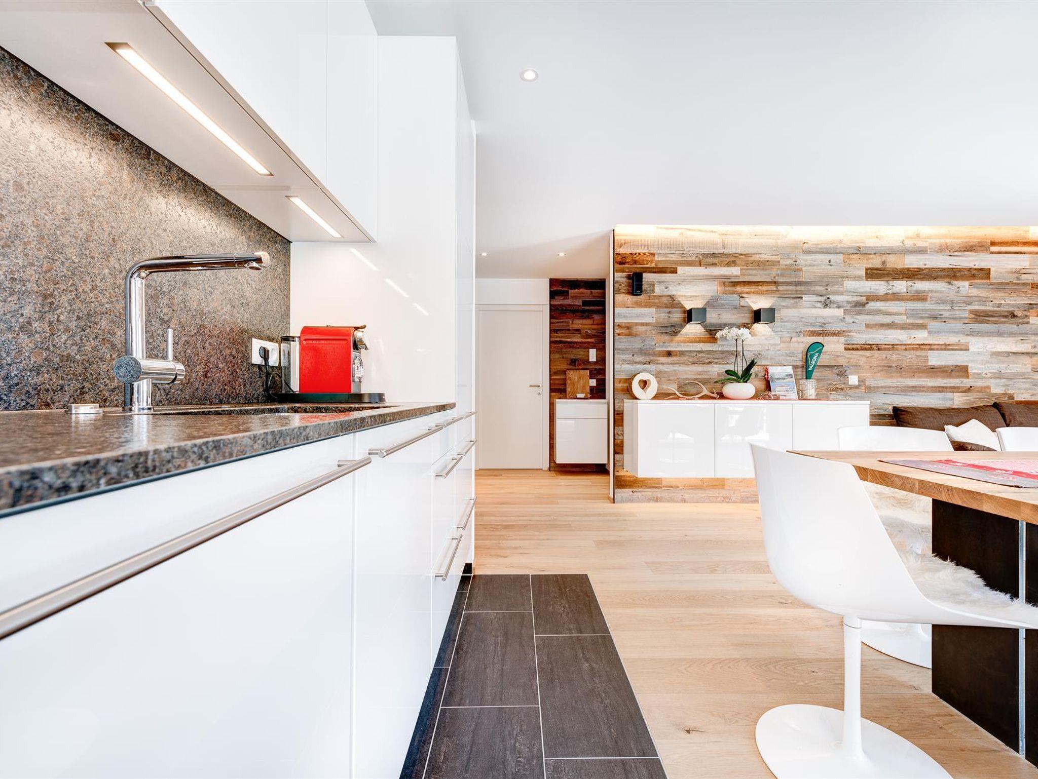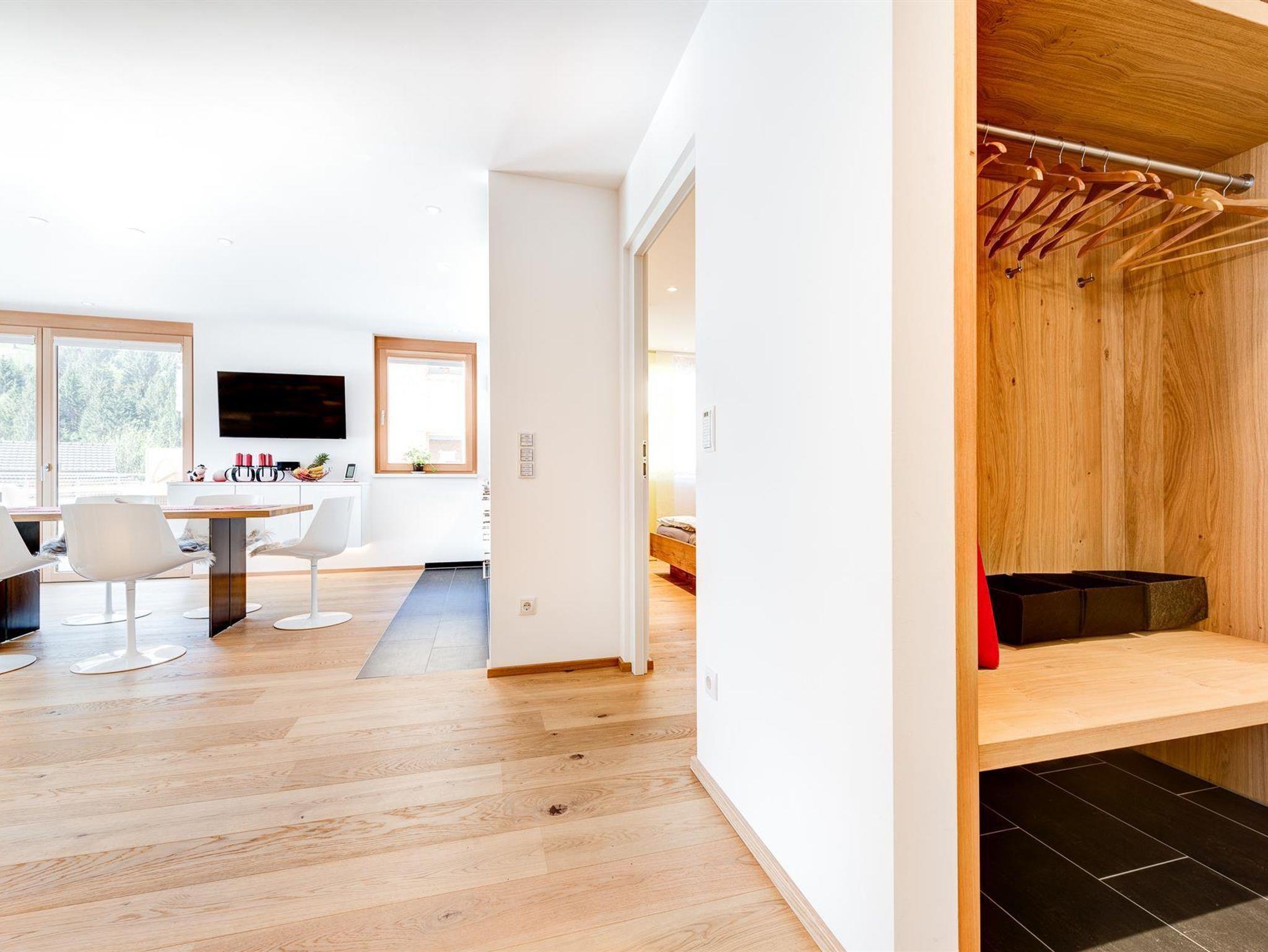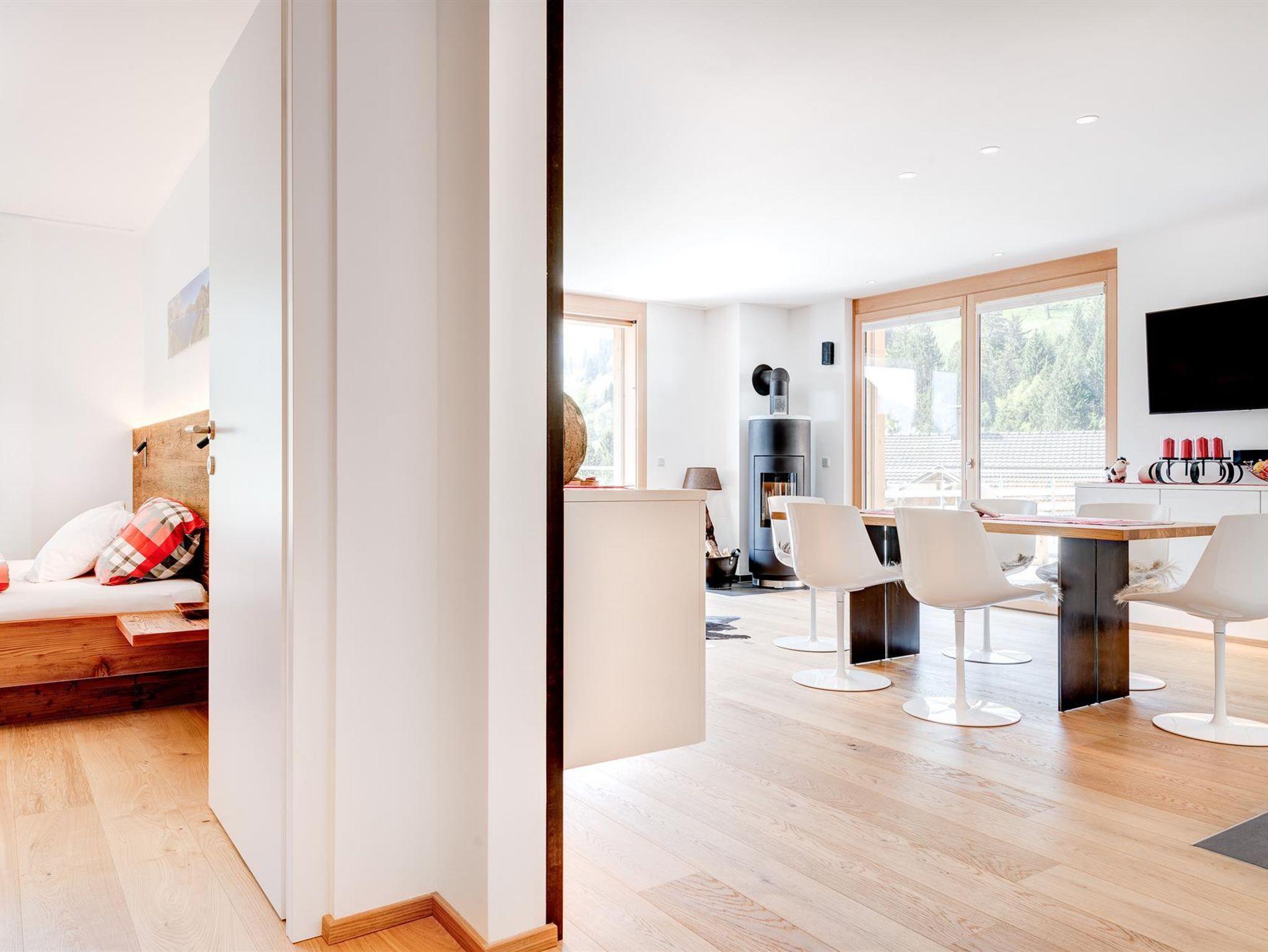 Der heimelige Kamin, Holzwandelemente mit indirekter Beleuchtung und die ökologische und hachhaltige Bauweise (Holz und Möbel aus regionalen Schreinerbetrieb)sorgen für Wohlfühlambiente.