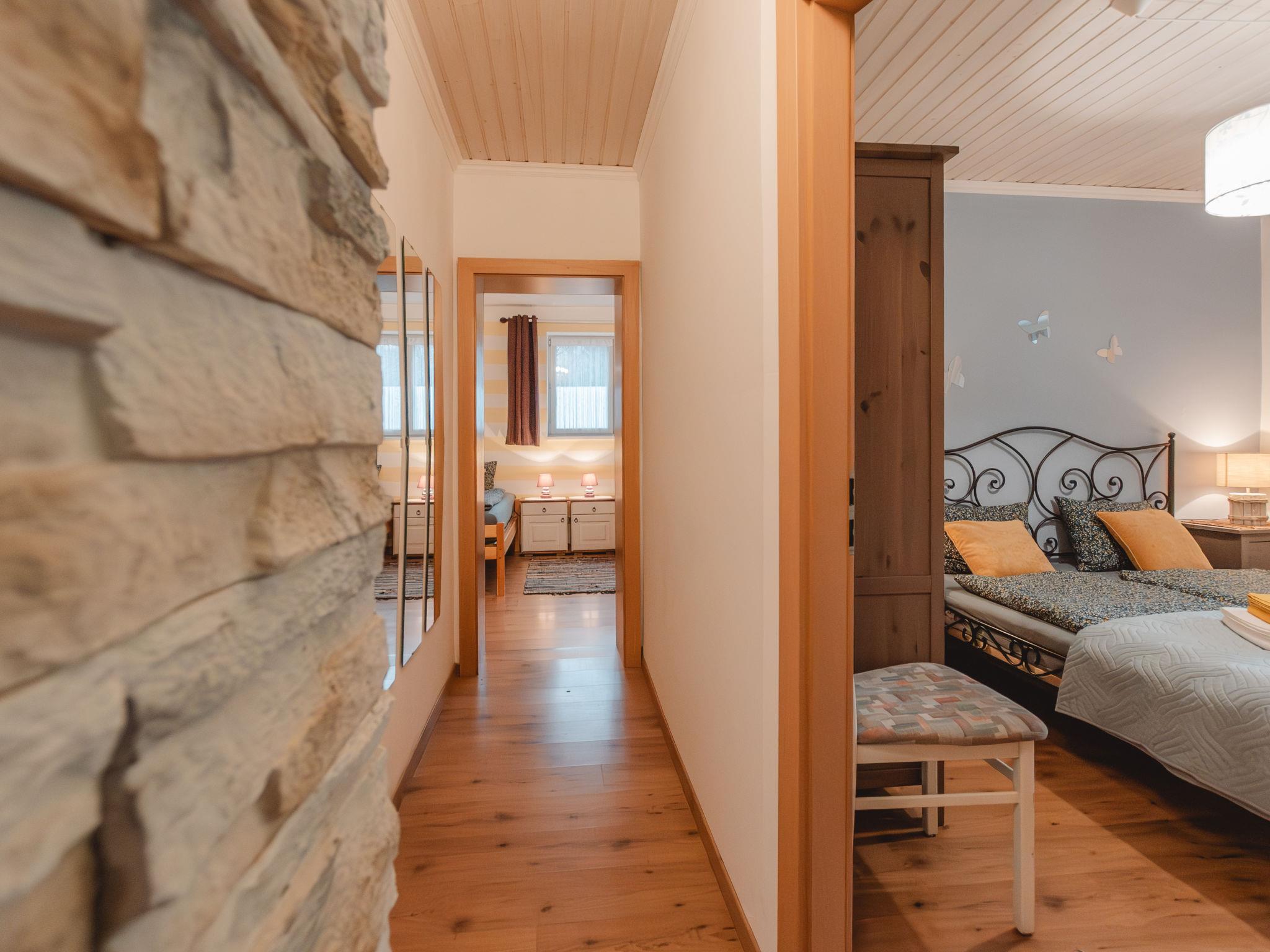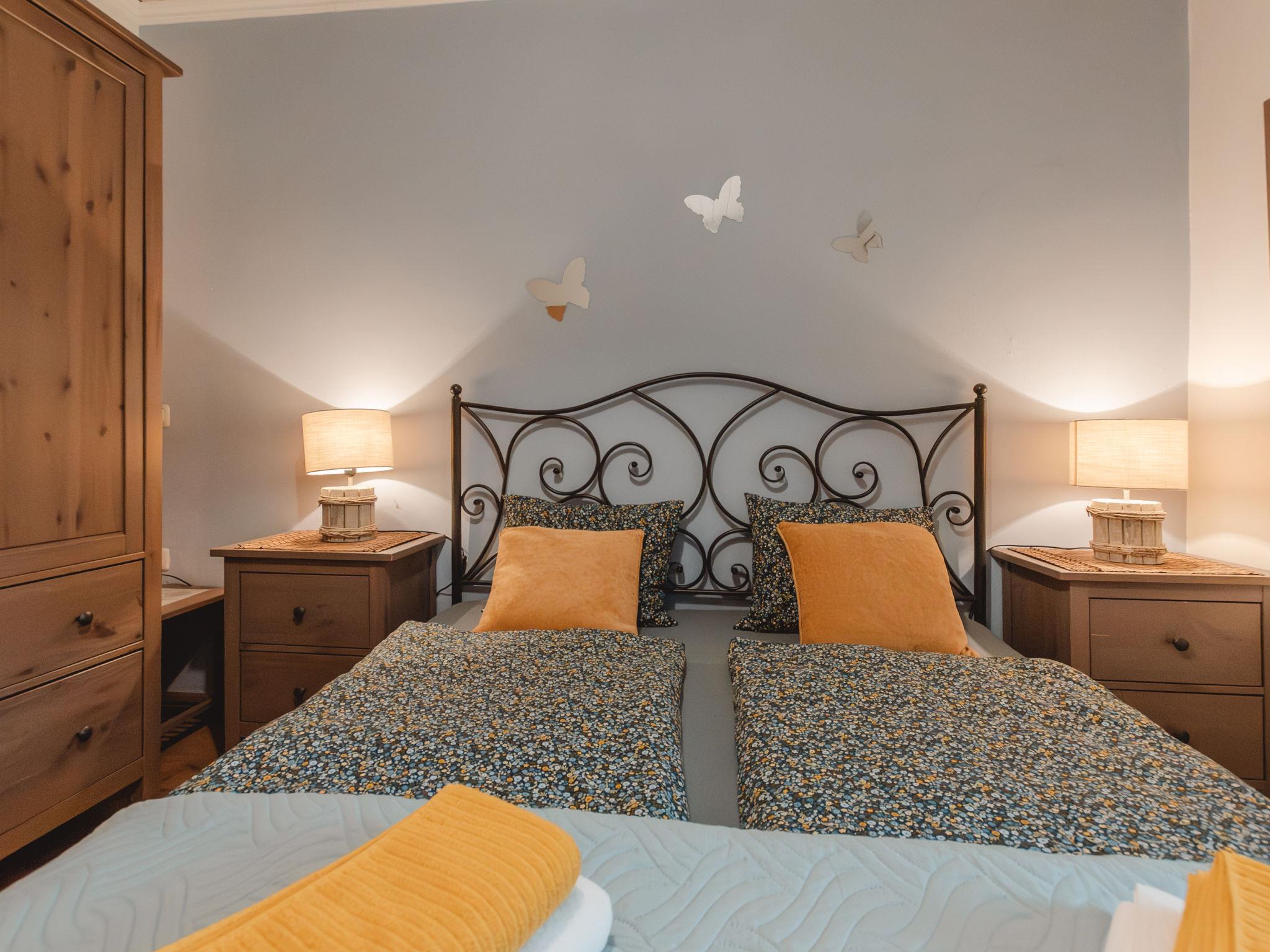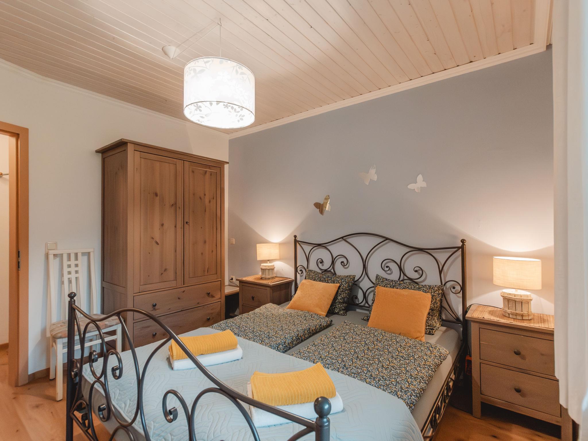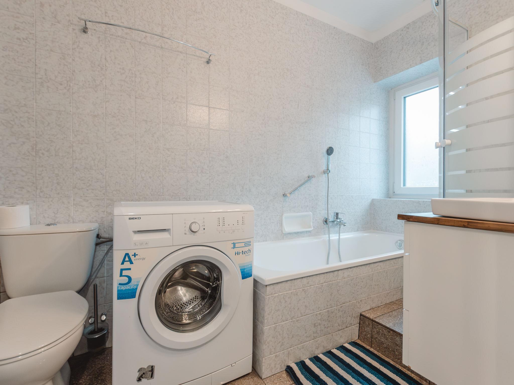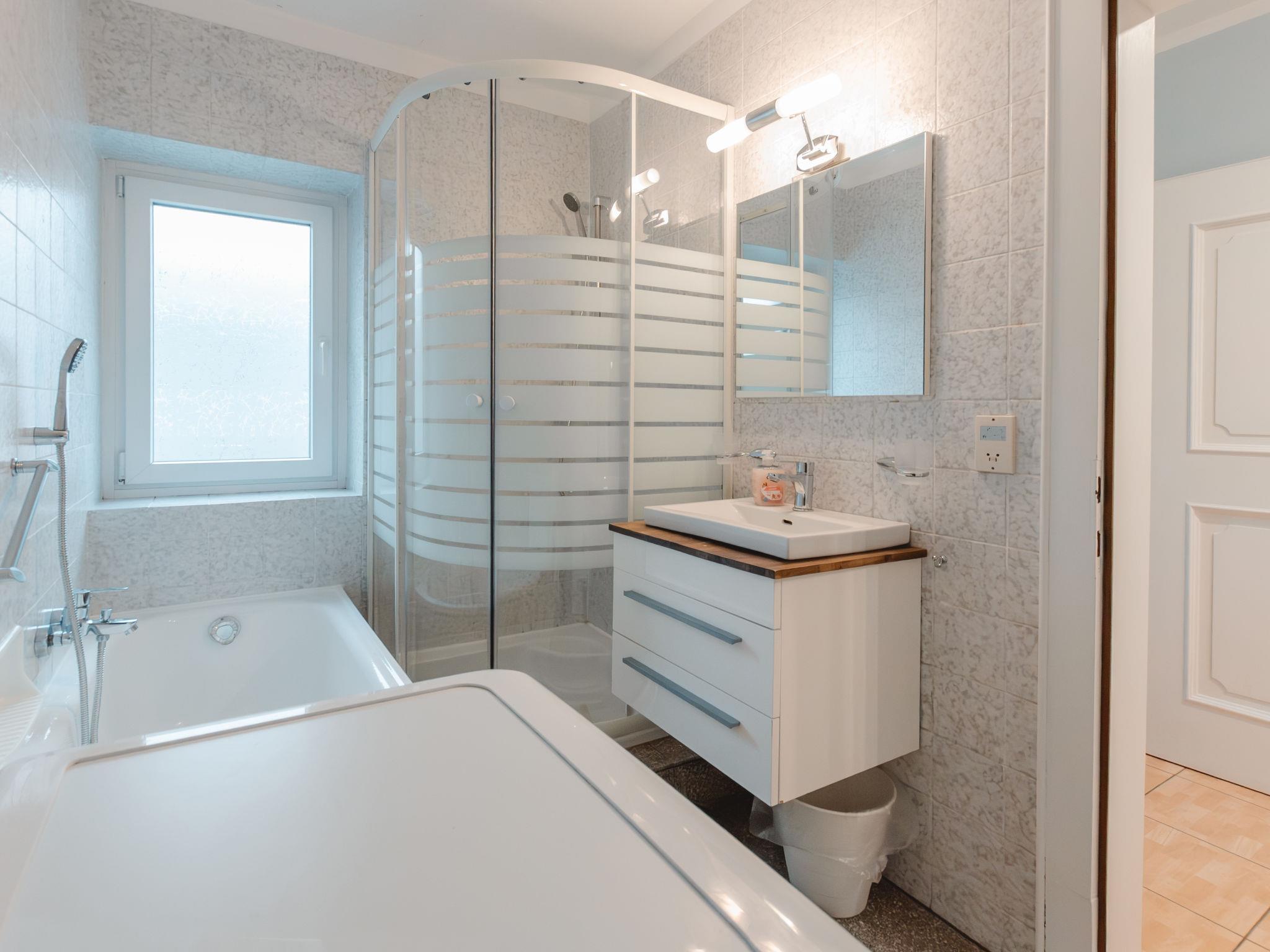 "Terrace Garden Retreat", 3-room apartment 67 m2, on the ground floor. Spacious and bright, fully renovated in 2013, modern and cosy furnishings: entrance hall. Living/dining room with 1 double sofabed (1 x 150 cm, length 200 cm), dining table and satellite TV (flat screen). Exit to the garden, to the terrace. 1 double bedroom with 1 french bed (160 cm, length 200 cm). 1 room with 2 beds. Open kitchen (oven, dishwasher, 4 ceramic glass hob hotplates, toaster, kettle, microwave, electric coffee machine) with small bar. Bath/shower/WC. Parquet floors. Terrace 15 m2, lawn 20 m2. Terrace furniture. Marvellous view of the mountains and the countryside. Facilities: washing machine. Internet (WiFi, free). Please note: suitable for families. Non-smokers only, non-smoking house. 1 pet/ dog allowed. Smoke alarm. Attention: infants and babies, count as people and can not be welcomed free of charge. 50403-000215-2020