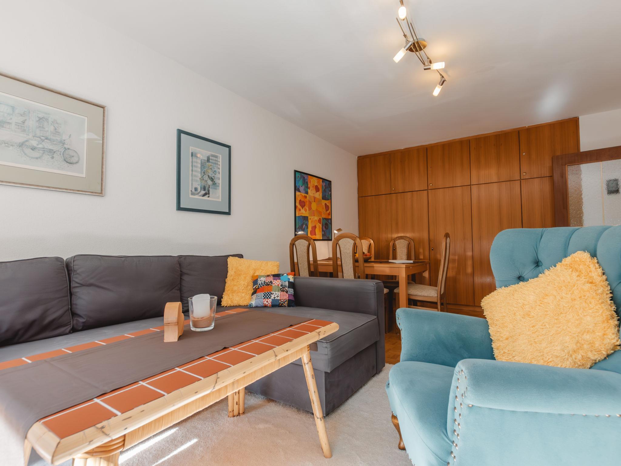 "Murmeltier", 2-room apartment 47 m2 on 2nd floor. Bright, very tasteful furnishings: entrance hall. Living/sleeping room with 1 double sofabed, dining table and cable TV (flat screen). Exit to the balcony. 1 double bedroom with 1 double bed (160 cm, length 200 cm). Small kitchen (2 hot plates, toaster, kettle, microwave, electric coffee machine, Capsules for coffee machine (Nespresso) extra). Bath/WC. Wooden floors. Balcony 6 m2. Balcony furniture. Very beautiful view of the mountains. Please note: suitable for families. Smoke alarm. 50403-000468-2022