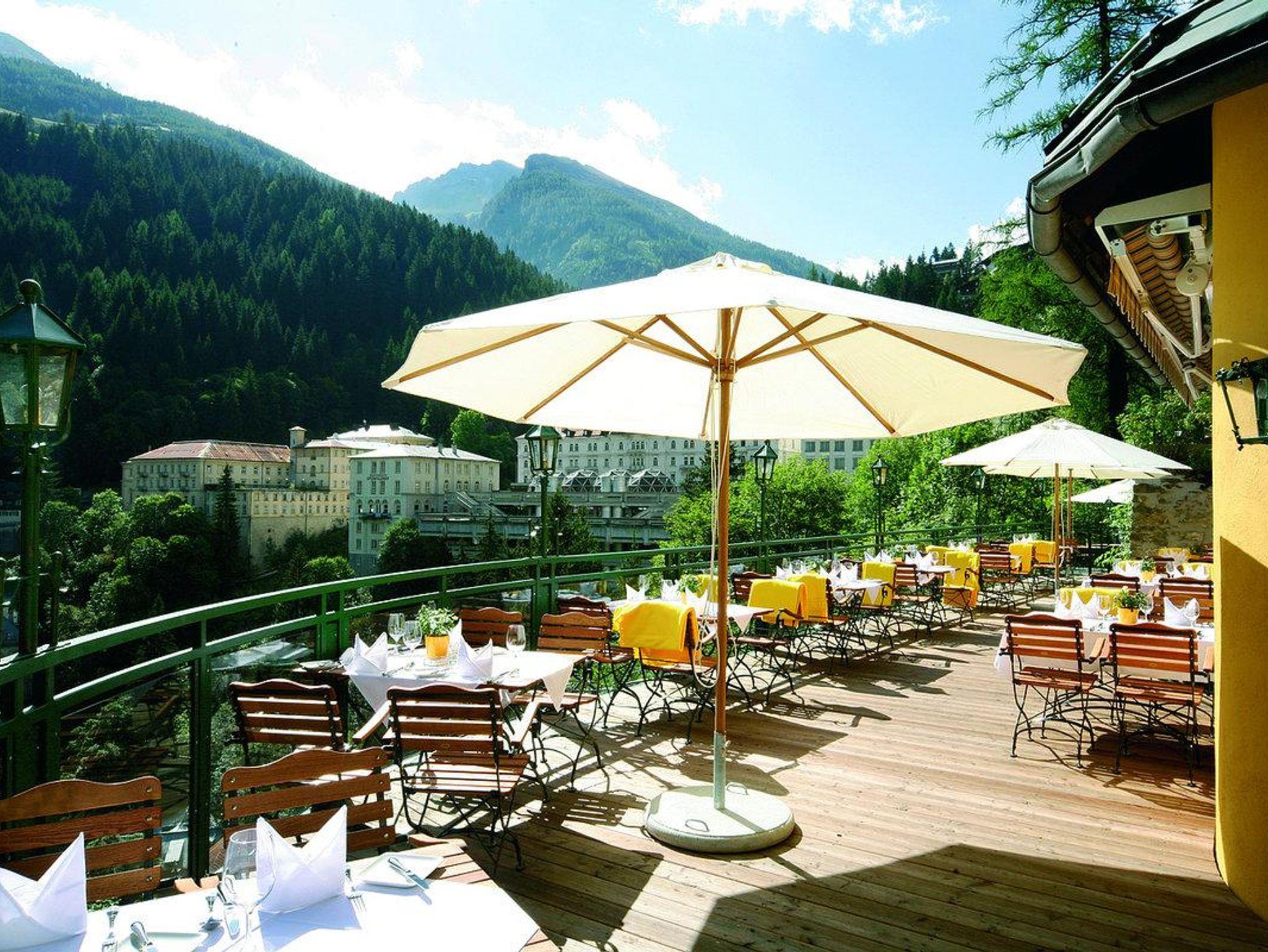 Im Sommer bietet die Hotelterrasse einen einzigartigen Blick auf die pittoreske Altstadt, den berühmten Gasteiner Wasserfall und die