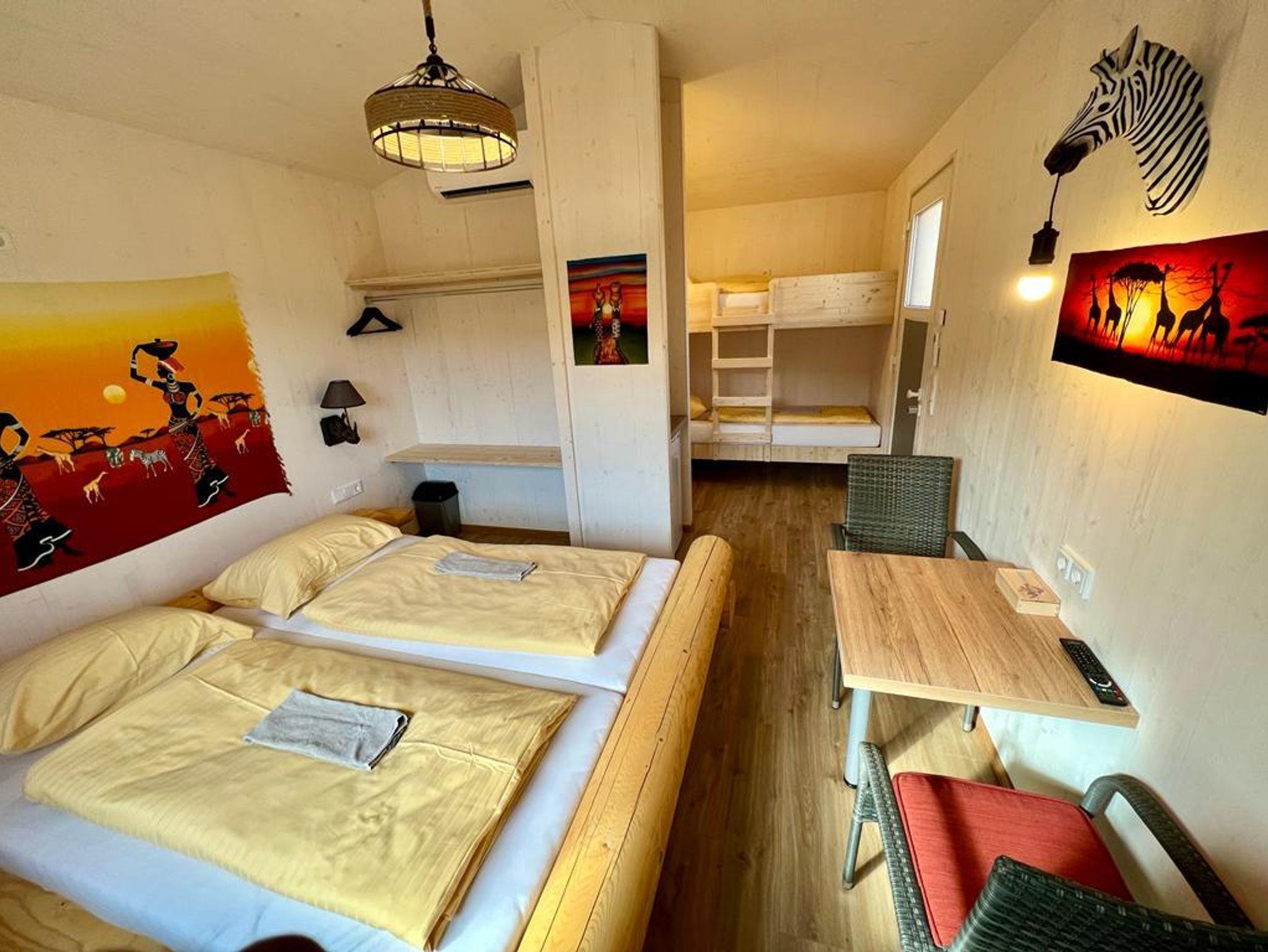 Unsere ebenerdigen Safarizimmer befinden sich in Poolnähe und variieren je nach Größe. 1 Zimmer ist für 2-3 Personen, 1 Zimmer mit 3-4 Personen und 1 Zimmer für 4-6 Personen. Jedes dieser Zimmer ist mit einem Badezimmer (inkl. WC, Dusche, Waschbecken), einer kleinen Sitzecke sowie einer Außenterrasse ausgestattet.