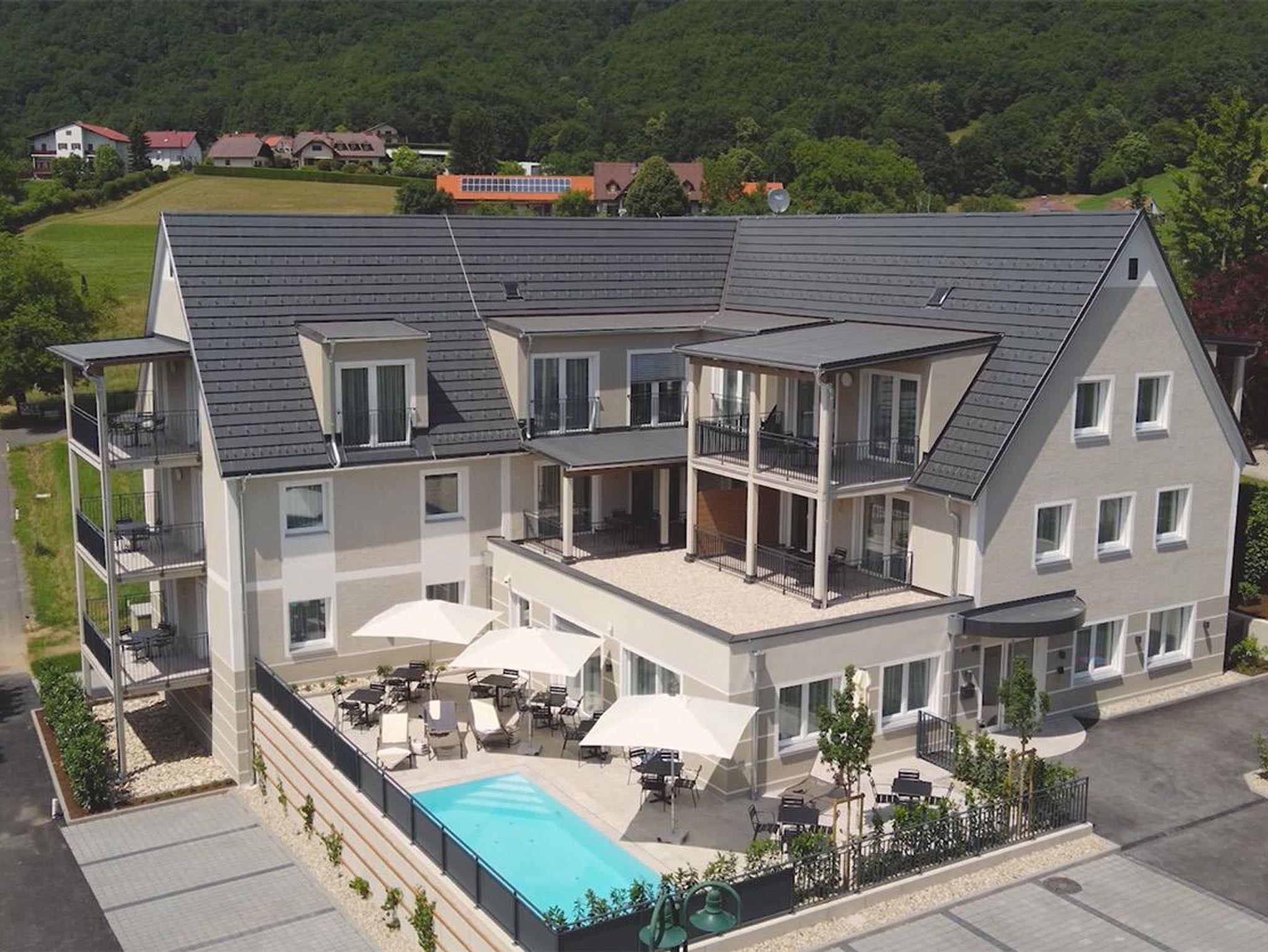 Das Landhaus Bad Gleichenberg liegt in Bad Gleichenberg – mitten im hügeligen Thermen- und Vulkanland der Südoststeiermark. Das Aparthotel mit 15 unterschiedlichen Studios und Apartments wurde im Juni 2022 eröffnet, Hausleiterin Linda Knoll begrüßt seitdem die Gäste im Urlaubsdomizil. Das Grün der umgebenden Landschaft spiegelt sich in der Farbwelt der Einrichtung wider, diese ist klassisch zeitlos und erfüllt alle Ansprüche für den Familienurlaub mit Freizeitbeschäftigung. Die Studios und Apartments haben eine Größe zwischen 25 und 65 Quadratmeter, sind mit einer vollwertigen Kücheneinheit sowie mit Terrasse oder Balkon inklusive Gartenmöbel ausgestattet.