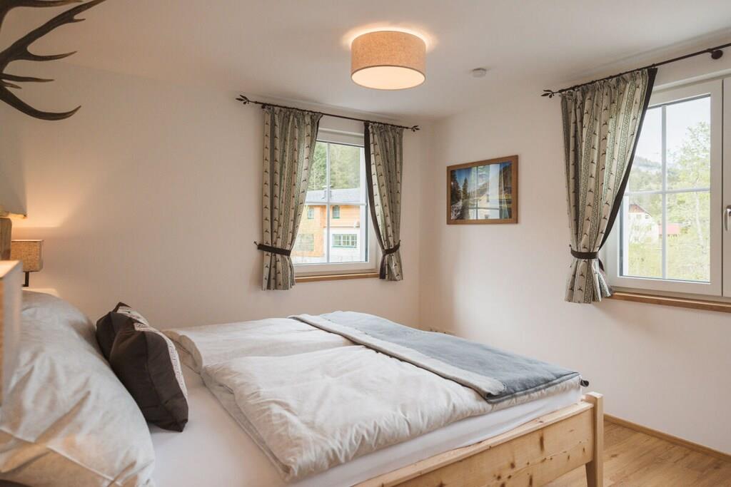 Enjoy your vacation in our Wilderer - Villa Salzweg holiday apartment, which has been completely refurbished with great attention to detail. With its high-quality furnishings and its own large balcony, Villa Salzweg is the ideal starting point for a relaxing vacation in the inner Salzkammergut. The cozy living/dining area with seating area and sofa bed, as well as modern entertainment equipment (55" Smart TV, Bluetooth music system) invites you to linger. In the fully equipped kitchen you will find everything you need for your stay. The dining area offers plenty of space for up to 6 people. The 2 bedrooms are each equipped with a large double bed, the best bed linen, dressing table and wardrobe, leaving nothing to be desired. In addition to the usual amenities, the modern daylight bathroom has a walk-in shower with a rain shower head. The washing machine is also located here. The toilet is in a separate room. You can also enjoy the fantastic mountain view from your own spacious balcony (south-west). Here you can eat outside on a large dining table, as well as a chilled lounge and an electric grill. For your perfect holiday in the Salzkammergut with family, friends or even larger groups, everything your heart desires is available in the various themed apartments of Villa Salzweg. So you can go on a relaxed journey of discovery in the Salzkammergut and really enjoy your holiday.