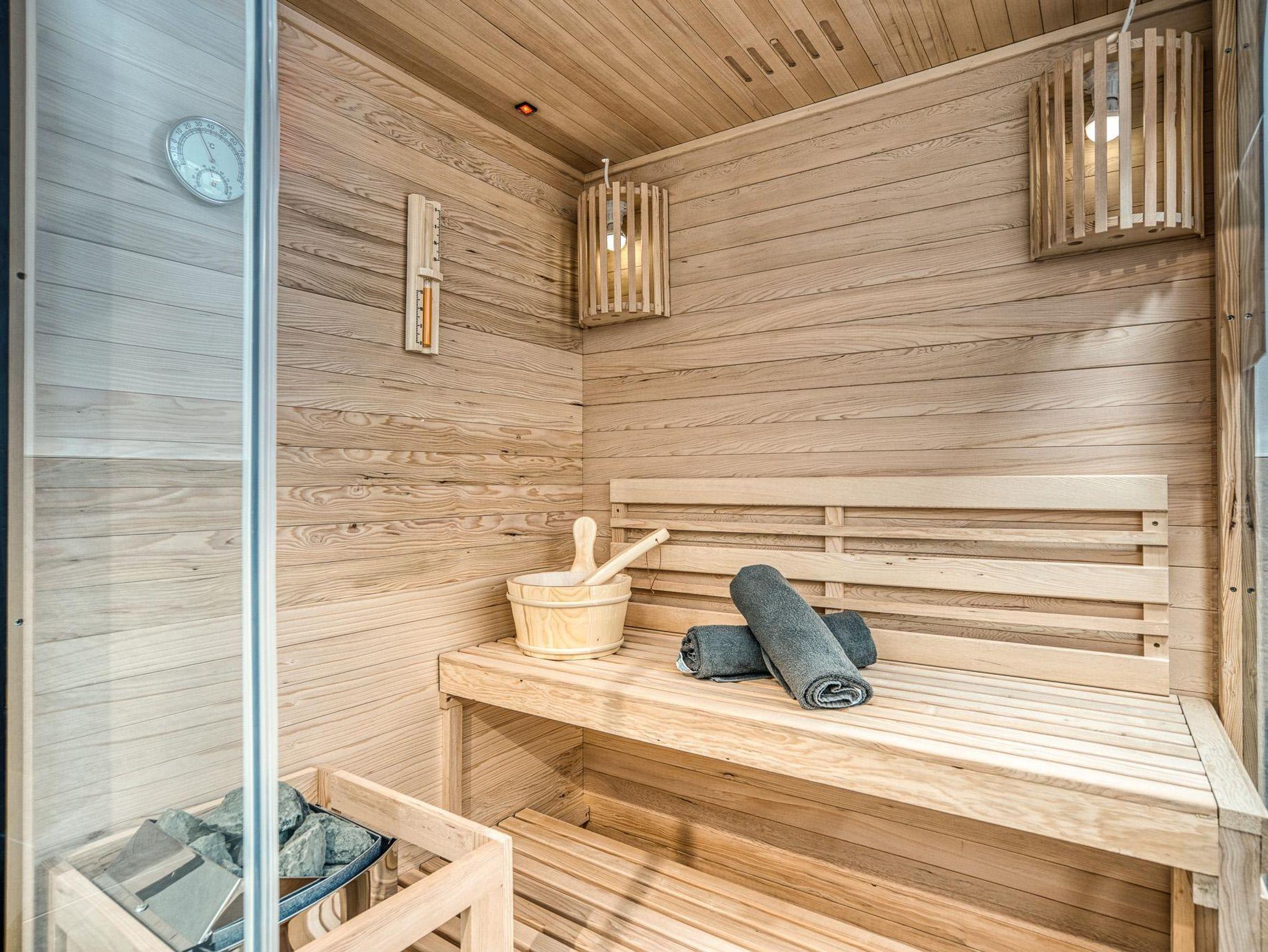 Ein wahres Highlight stellt die private Sauna im Badezimmer dar. Nach einem ereignisreichen Tag lässt es sich hier so richtig entspannen.