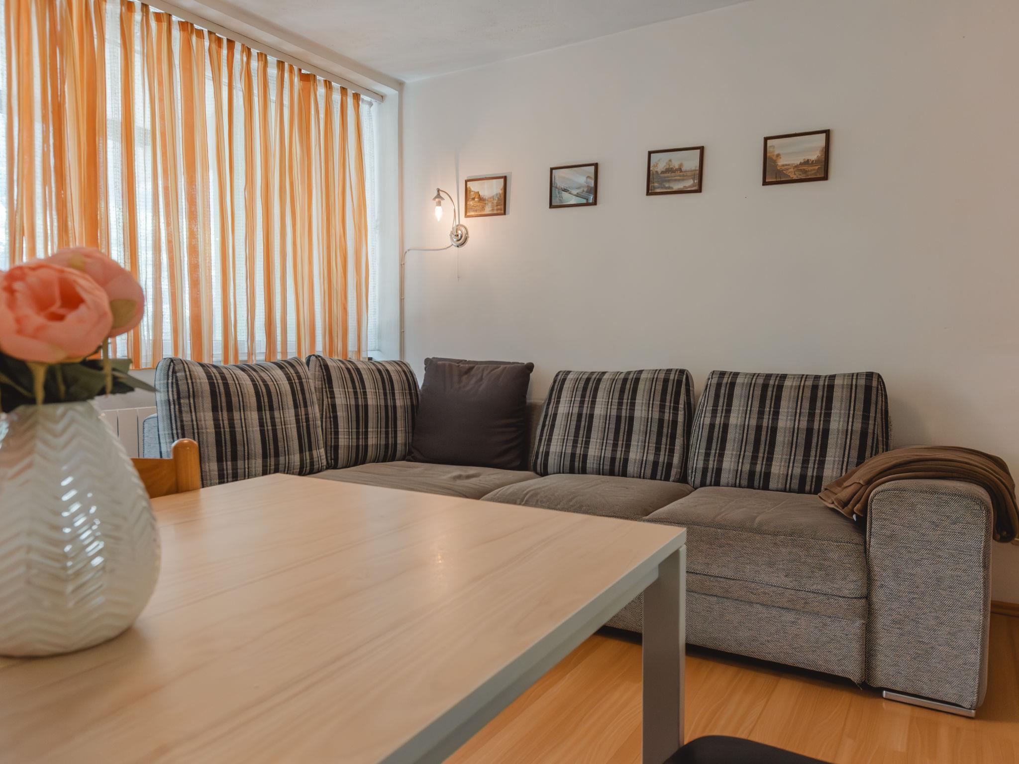 "Winnie", 2-room apartment 45 m2 on 3rd floor. Stylish and cosy furnishings: entrance hall. Living/dining room with 1 double sofabed and satellite TV. Exit to the balcony. 1 room, without window with 2 beds. Open kitchen (oven, dishwasher, 2 ceramic glass hob hotplates, toaster, kettle, electric coffee machine). Bathroom, sep. WC. Balcony. Balcony furniture. Beautiful view of the countryside. Facilities: Internet (WiFi, free). 50402-000758-2021